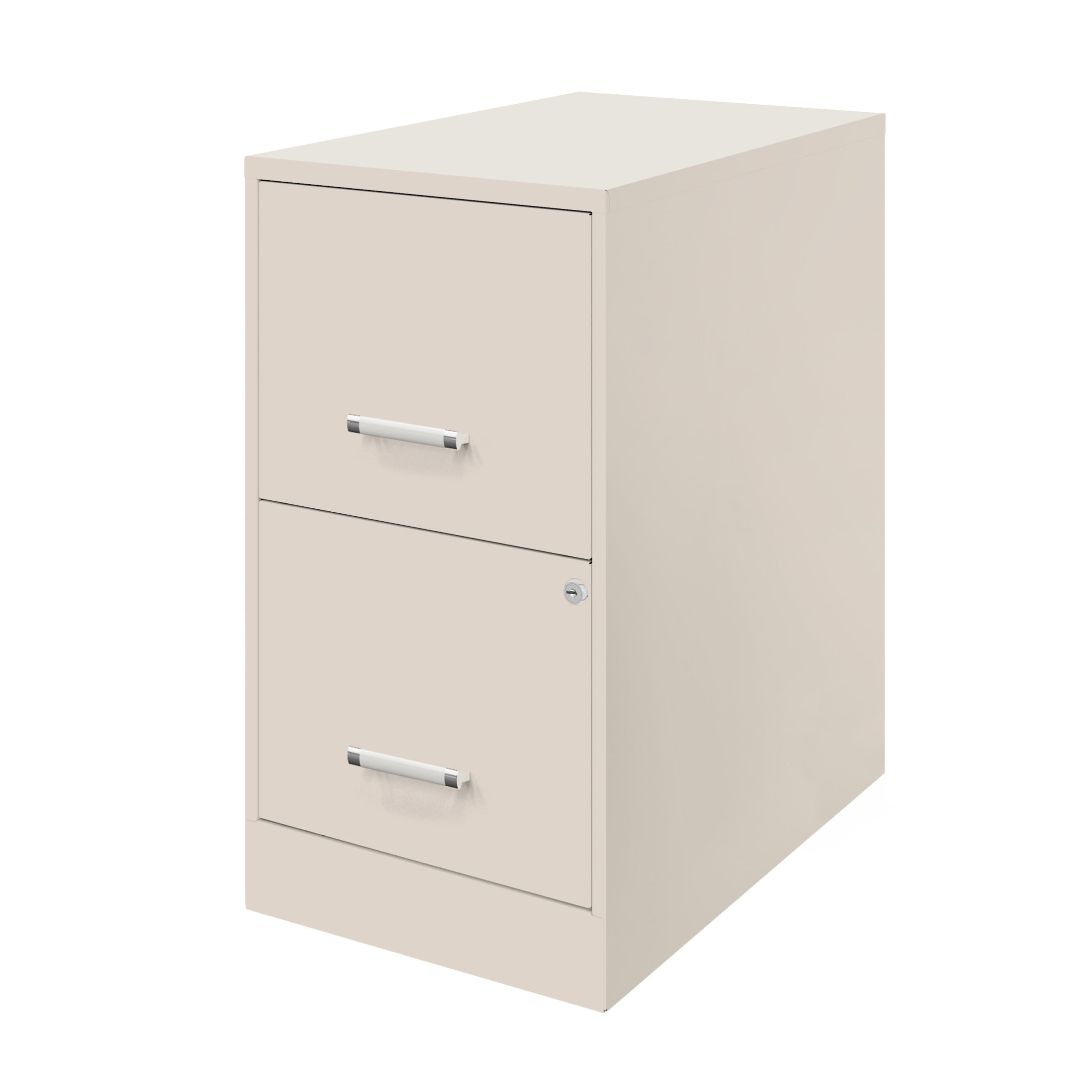 Vertical file drawers accommodate letter-size hanging file folders Full high-side drawers provide storage solutions for other office essentials Smooth patented glide suspension drawer slides Cam lock secures both drawers Three-quarter drawer extension Tucks under most work surfaces and office desks. Painted steel surface is non-porous and easy to clean Fully assembled welded cabinet. Assembly of the handles required Space Solutions 22″ Deep 2 Drawer Mobile Smart Letter Width Vertical File Cabinet, Stone
