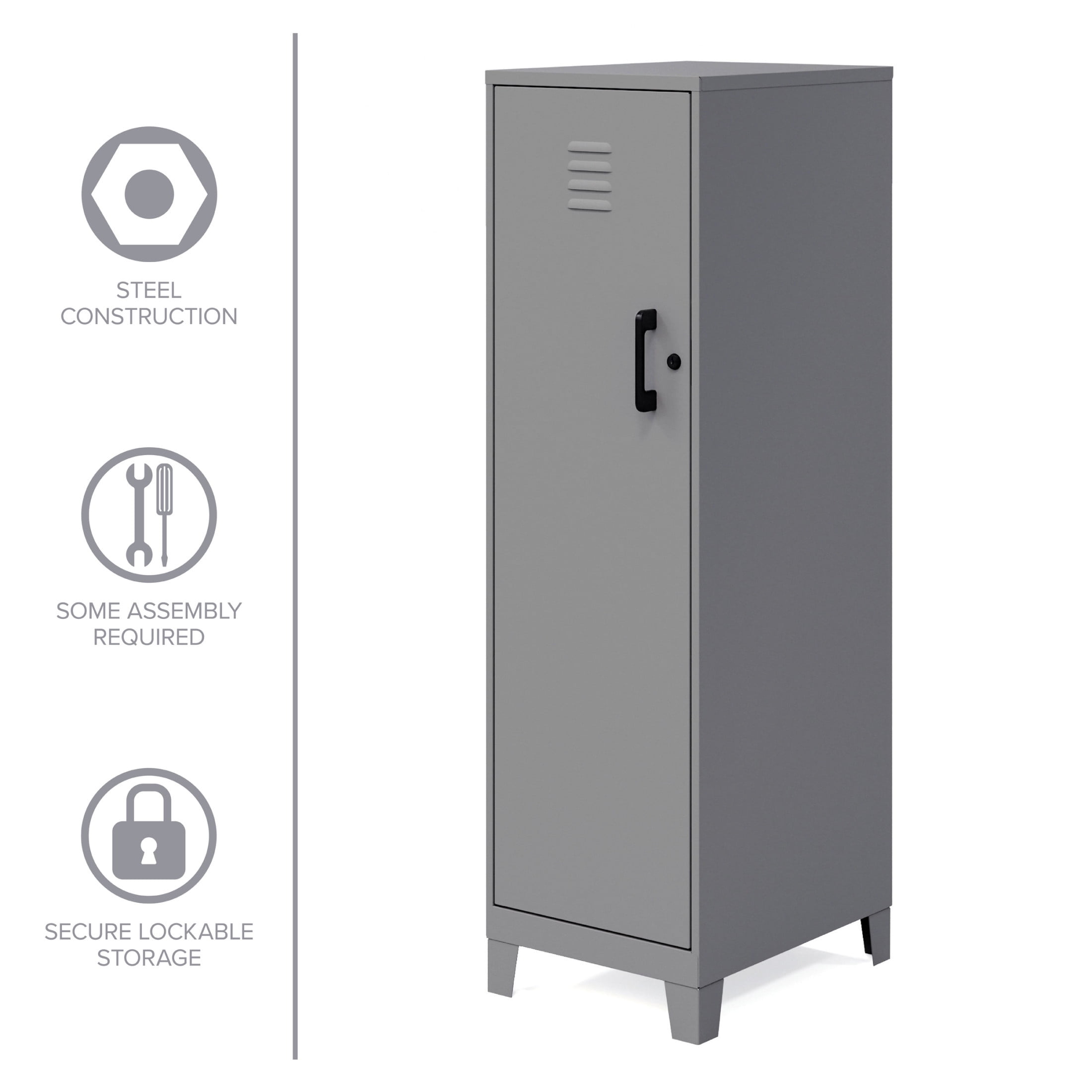 The versatile design of our personal locker metal cabinet makes it suitable for home office and professional office use. The stylish and modern look will fit right in with your offices, classrooms, playrooms, basements, and garages. It adds a unique, industrial touch to your workspace or living space. This storage and organizational locker is made of sturdy and durable welded steel construction that provides long-lasting strength. It’s made with 30% recycled steel that makes it an eco-friendly storage solution. The non-porous surface of our storage locker is easy to clean. All you need is a damp cloth! The locker will be shipped to you fully assembled so you can get organized right away! Color: Arctic Silver