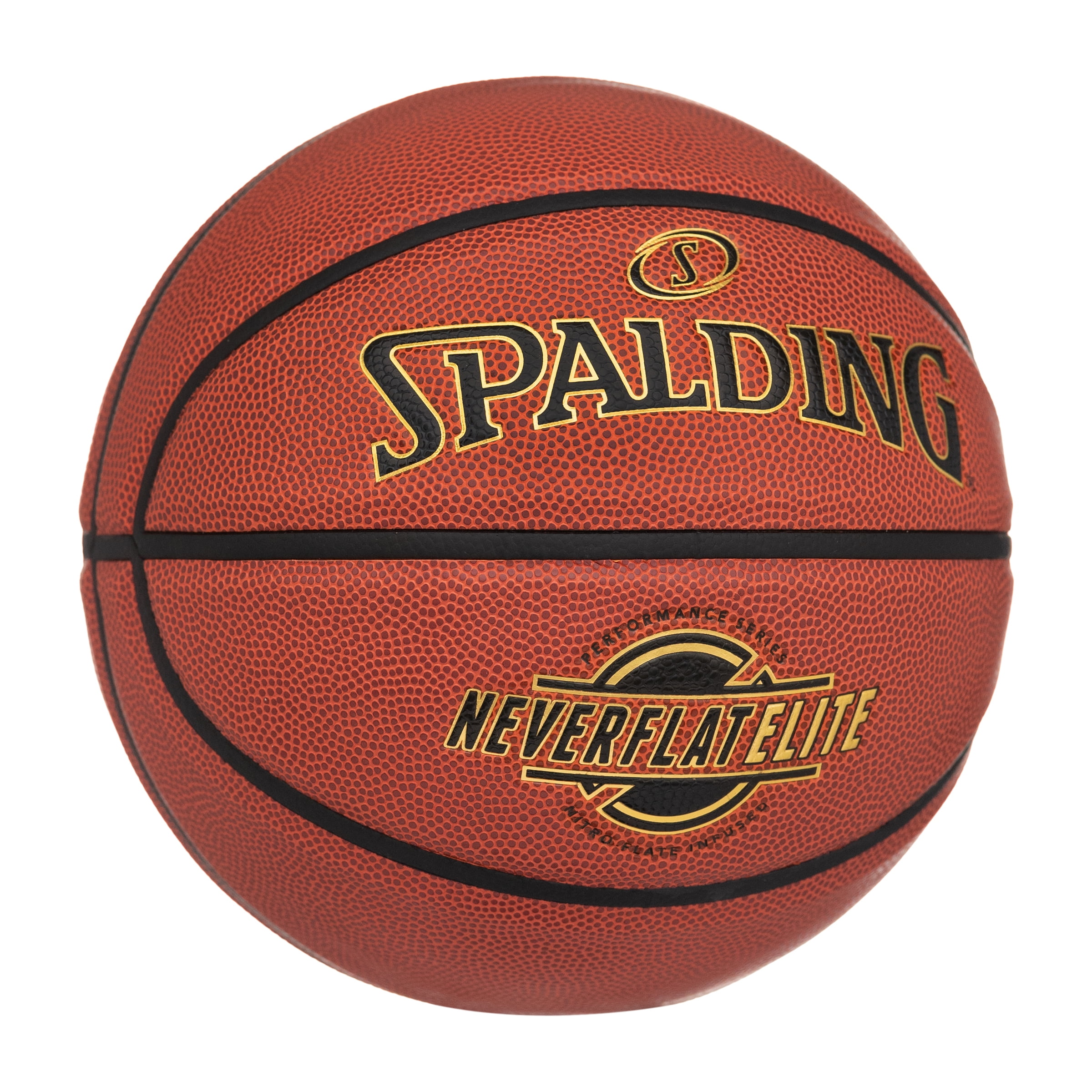 Spalding NeverFlat Elite Indoor-Outdoor Basketball 29.5″: Official size and weight: Size 7, 29.5″ Premium composite cover with sponge carcass NeverFlat® air retention technology stays inflated for one year, guaranteed Shipped inflated and game-ready Designed for indoor and outdoor play