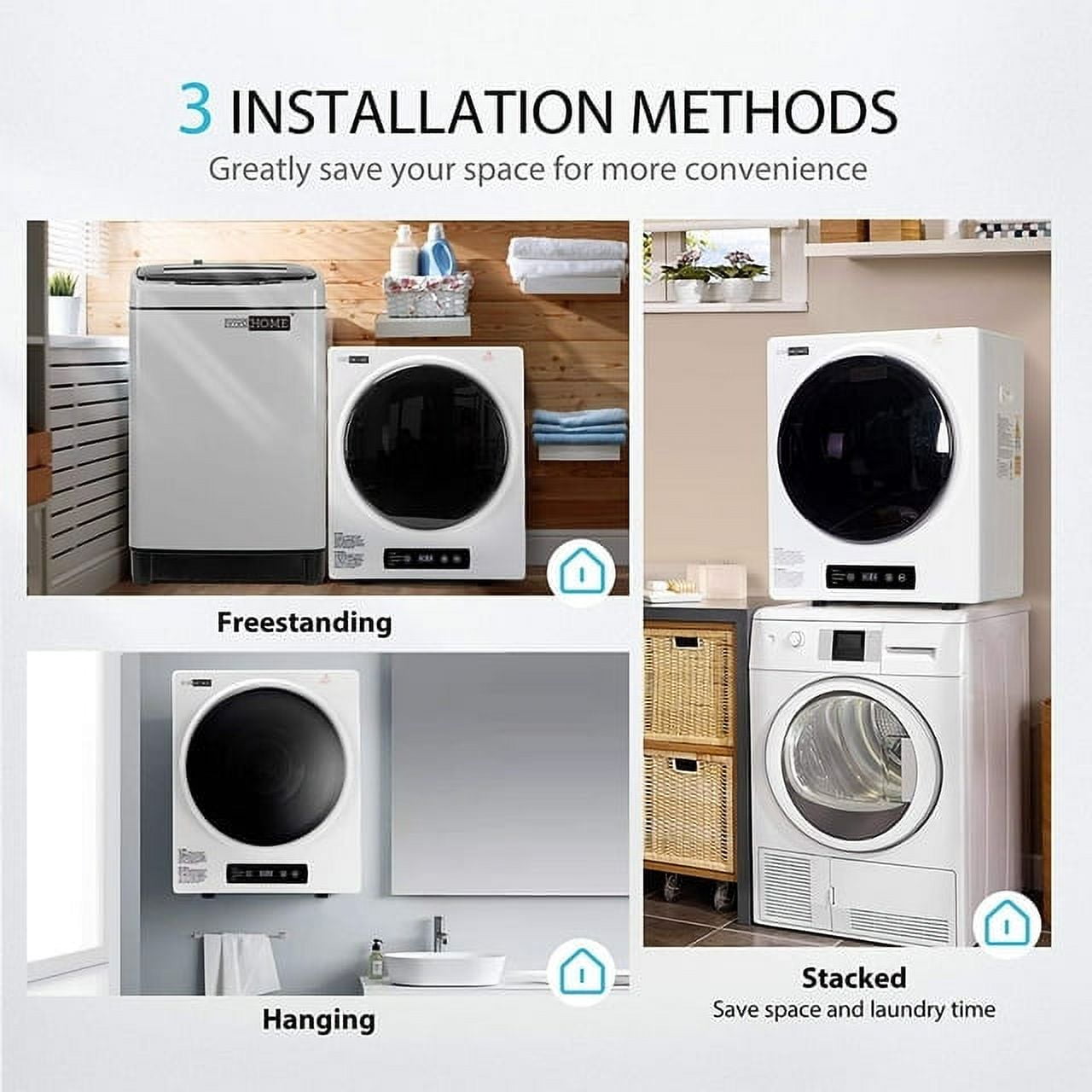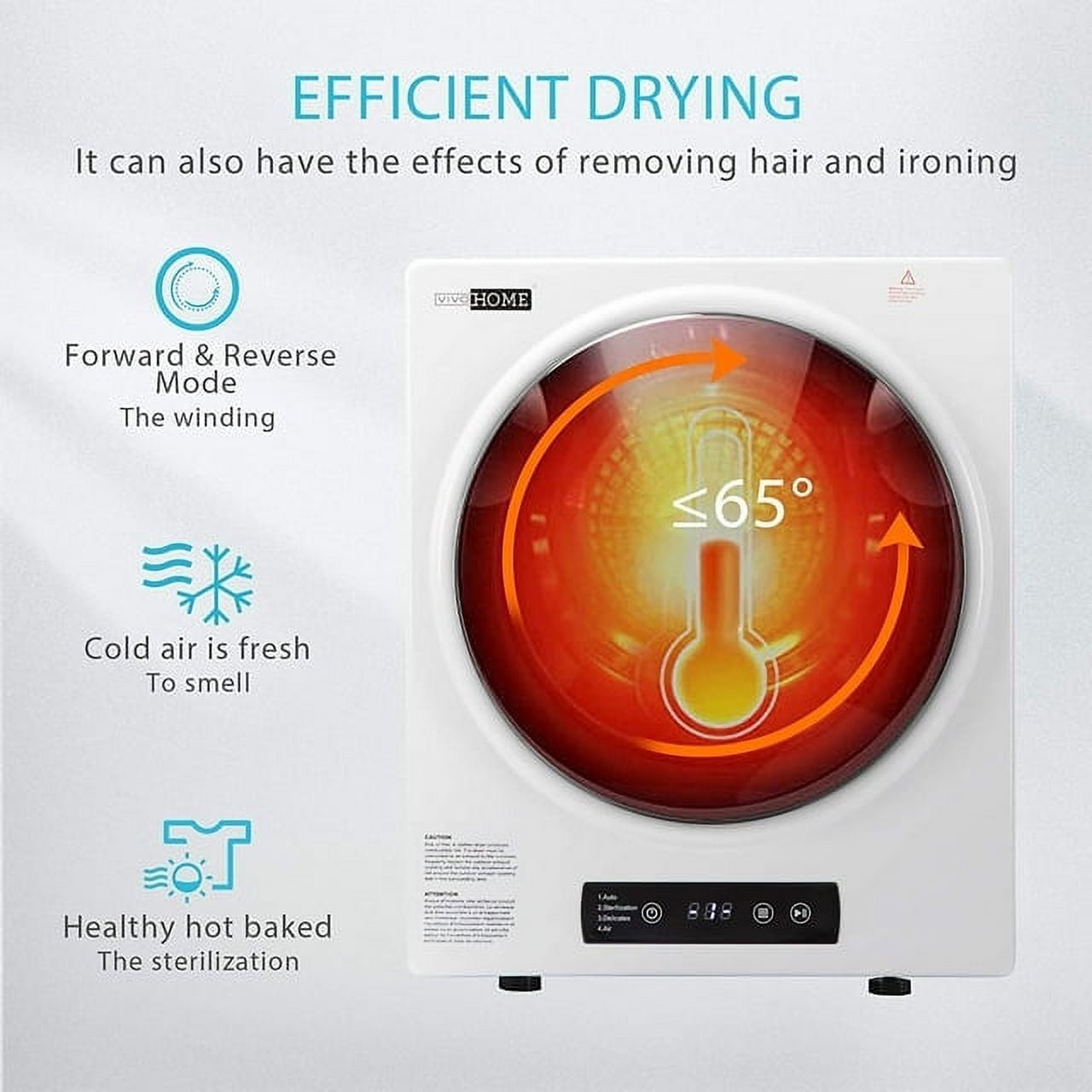 ????USER-FRIENDLY INTELLIGENT OPERATION – SPECSTAR compact laundry clothes dryer is equipped with a knob control panel and LED display which is easier to be used by anyone; There are 4 different modes of clothing care to choose from, including drying, degerming & deodorization, half-heating, and air-cooling ????POWERFUL PERFORMANCE – The casing and drum of this laundry dryer are made of high quality materials, which are wear-resistant and durable to use; Efficient PTC heating method lets you get out of the limitation of the weather, and enjoy clean and soft clothes at any time; Smart sensors sense clothing temperature and humidity in real-time, and automatically shut off when the clothes are dry ????SAFETY PROTECTION – Automatic power off after opening the cover prevents accidental electric shock; Overheating protection avoids scalding injury, taking good care of user’s personal safety; Translucent anti-scalding window is convenient for you to observe drying process; A light will flash and a buzzer will sound if the door is opened while this tumble dryer is operating ????CONSIDERATE DETAILED DESIGN – Stainless steel interior tub greatly reduces wear and tear of clothes; Necessary 20min air-cooling process in the end ensures an appropriate temperature of clothes when you take out; Enjoy a leisure drying time with quiet tumbling (≤52db); Designed with a light touch on the control panel, it is easier to operate for you ????SPACE-SAVING SIMPLE DESIGN – Compact size with a space-saving design, this portable dryer can be installed anywhere you want; You can put it on the flat ground alone, and it can be stacked on a washing machine or a rack; The package also includes wall brackets to make it wall mount; It is suitable for apartment, dorm, office, factory, washing room and so on; Simple appearance in white highlights your life taste