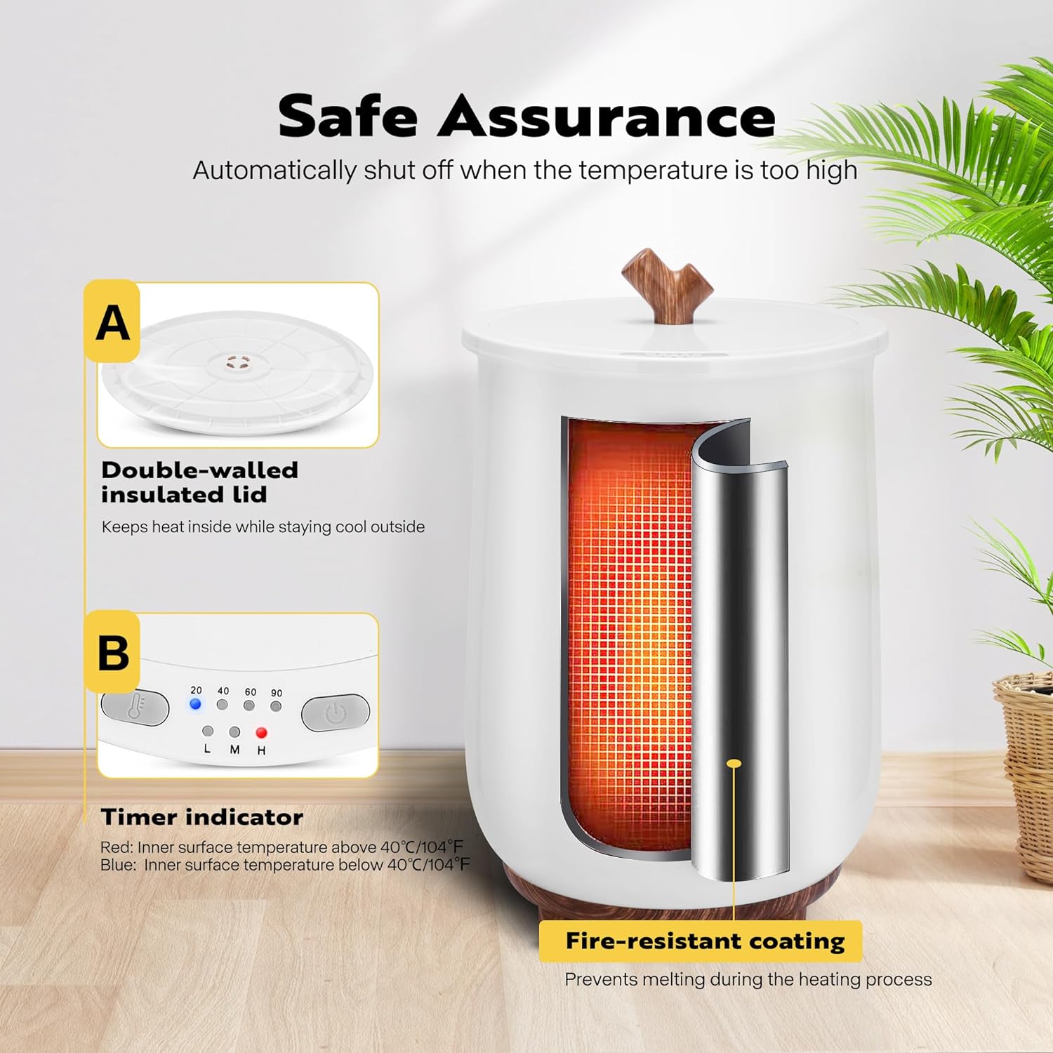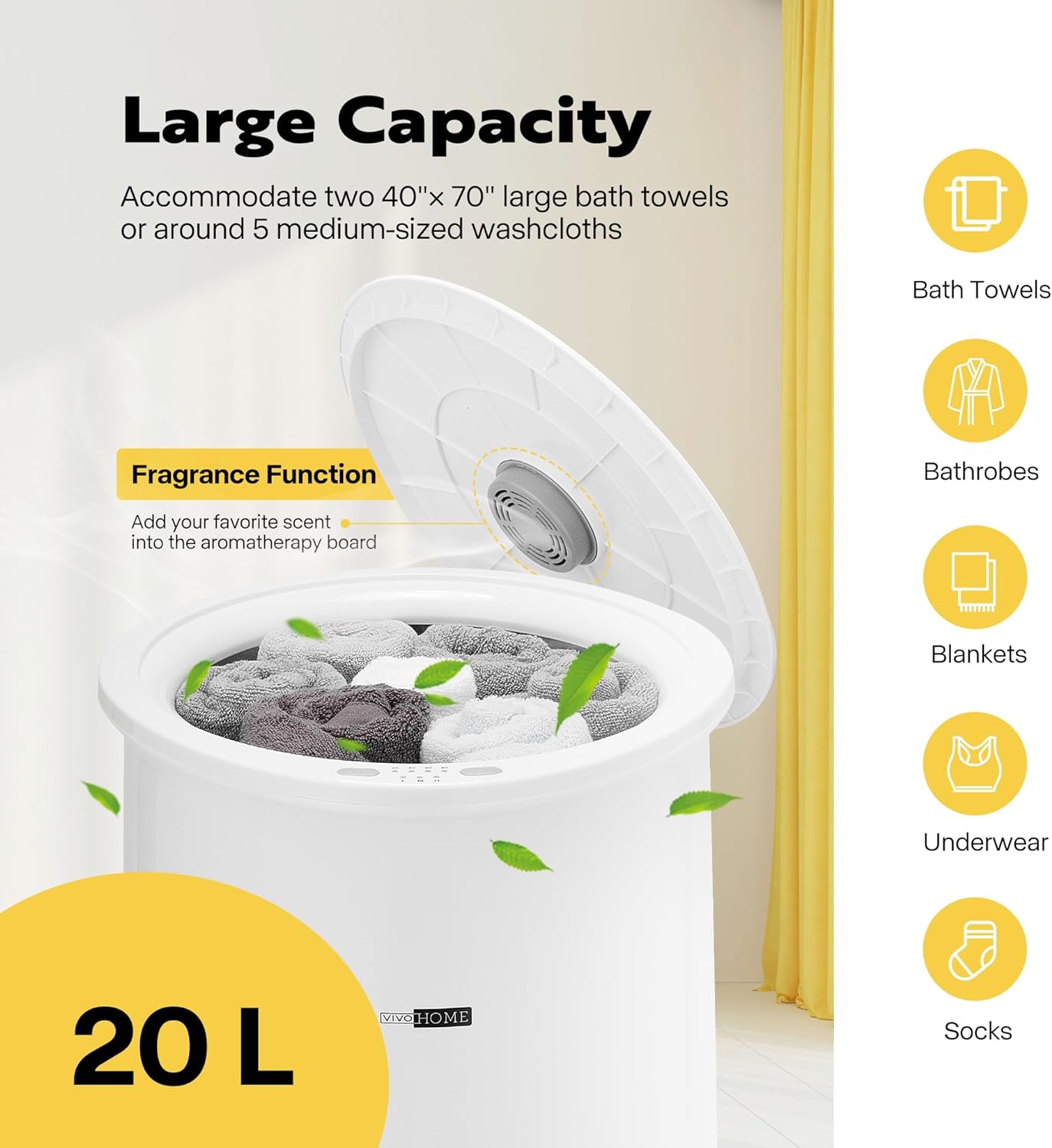 EASY OPERATION – Place a towel into the SPECSTAR towel warmer, close the lid, and hold down the ON/OFF button to start the warming process; To set the warming preservation, briefly press the ON/OFF button and select a time of up to 20, 40, 60, or 90 minutes; For different temperature settings, press the TEMPERATURE button and choose from low, medium, or high(60℃, 70℃, 80℃) settings, ensuring you can enjoy warm towels whenever you wish LARGE CAPACITY – The SPECSTAR towel warmer can accommodate two 40″ x 70″ large bath towels or around 5 medium-sized washcloths; It is suitable for robes, blankets, pajamas, and other items; Its dimensions of 13″ x 13″ x 21.3″ provide a total capacity of 20 liters, making it ideal for family use; The 9.8-inch inner diameter accommodates several towels at once HEAT EVENLY AND QUICKLY – The SPECSTAR towel warmer bucket features a 400W heating element, which quickly heats up in just one minute and reaches its highest temperature in about 6 minutes; Within 25 minutes, your towel will be warm and cozy; The towel warmer ensures even heating both inside and outside, preventing any cold spots SAFE ASSURANCE – The SPECSTAR towel warmer has a temperature control system that automatically shuts off in case of excessive temperature; The outer case has a fire-resistant coating that prevents melting during the heating process, while the double-walled insulated lid retains heat inside while remaining cool on the exterior; The timer indicator turns red when the internal temperature surpasses 40℃/104℉ and blue when it falls below 40℃/104℉ EXCELLENT EXPERIENCE – This towel warmer includes a fragrance sachet and has a built-in fragrance holder in the lid to leave a pleasant scent on your towels; The three non-slip feet keep the whole towel warmer bucket stand stable; Its cozy design is suitable for various household styles; This towel warmer is ideal for chilly nights after a dip in the hot tub or swimming; It’s an excellent gift for your loved ones for various occasions such as birthdays, Christmas, Thanksgiving, weddings, anniversaries, housewarming, and more