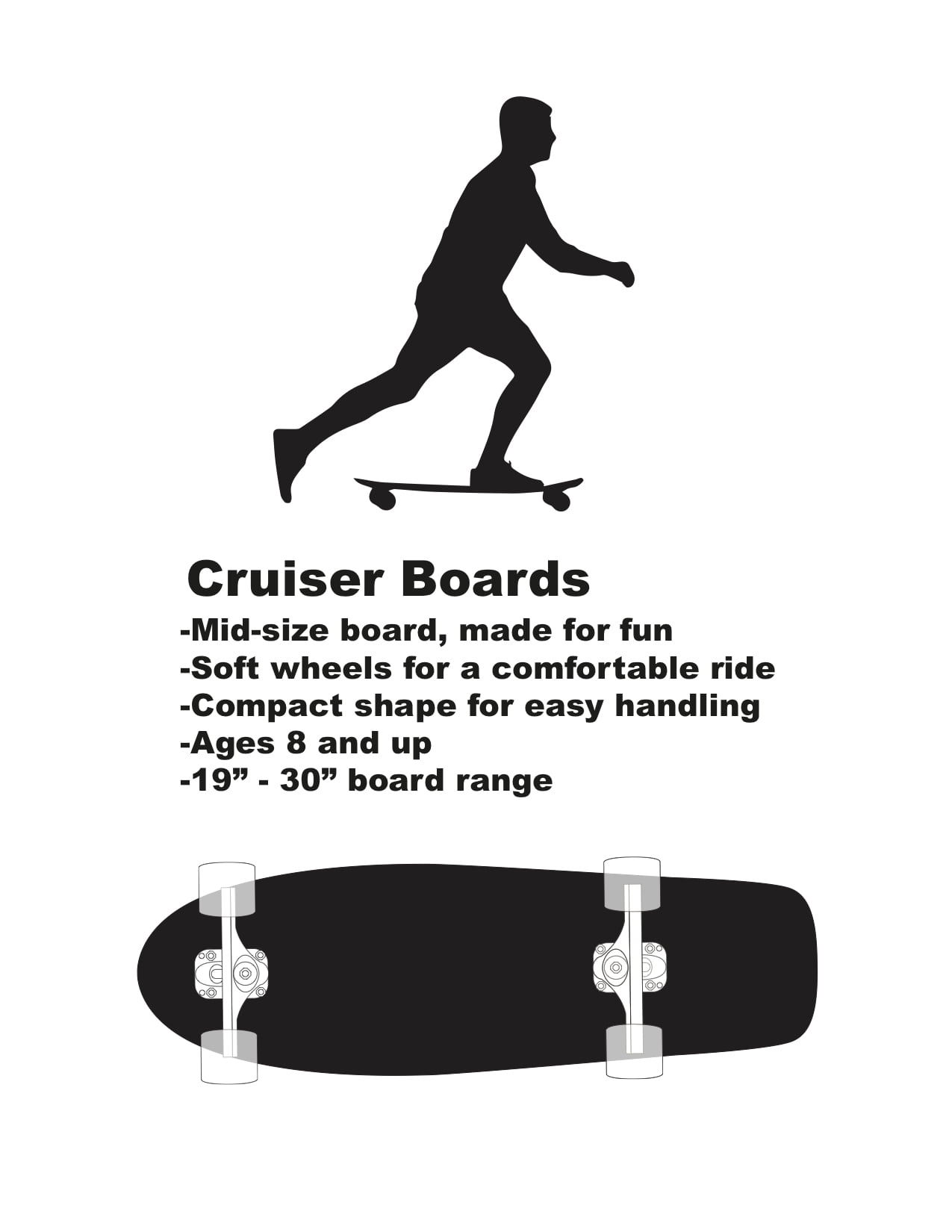 Speed Demons 29″ Cruiser Board Complete Skateboard, 29″ x 9″: 29″ x 8.5″ cruiser, 9ply maple, trick cruiser shape, double kicktail 2pc Split colored griptape, with Laser Cut logo 6″ pp Slant BLOCK hanger, 4mm risers KRYPTONICS 65x40mm poured (casted) polyurethane Carbon steel ABEC 3 with colored/printed bearing shields