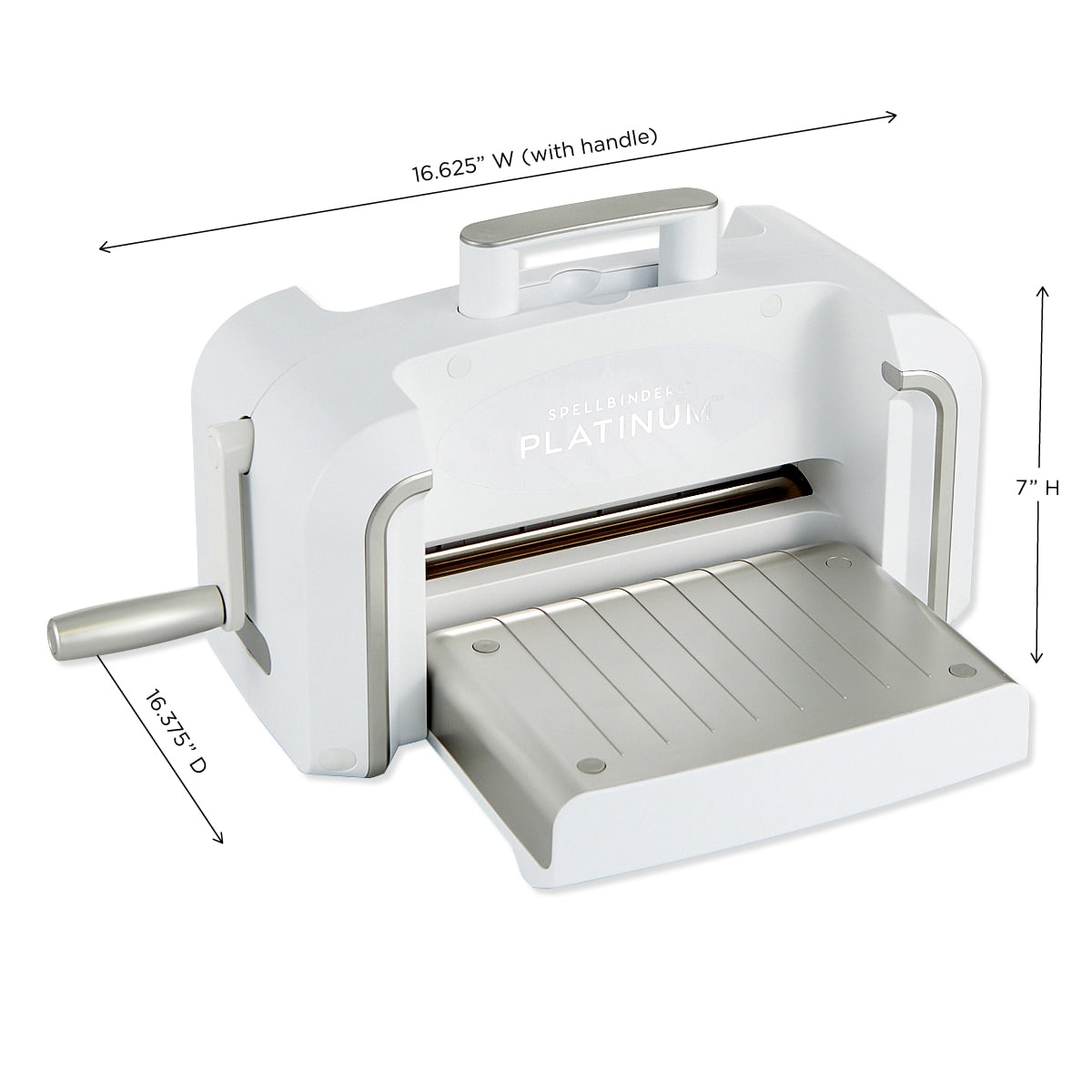 The New & Improved Platinum Die Cutting & Embossing machine has a redesigned sleek look and also includes a FREE Universal Plate System. The Universal Plate system increases the versatility and ease of die cutting by offering plates that work with virtually all complementary products on the market, including etched dies, steel rule dies, 2D embossing folders, and 3D embossing folders. The Platinum machine features a 9 inch wide platform and opening to accommodate most products on the market, including the Glimmer Hot Foil system. Includes: Recolored Platinum Machine, New Universal Plate Set (platform base, platform top, 2 cutting plates, adapter plate, embossing mat, shim), Instruction Manual, Exclusive 8.5×5.5 inch 3D Folder, Exclusive Die Set. Imported.