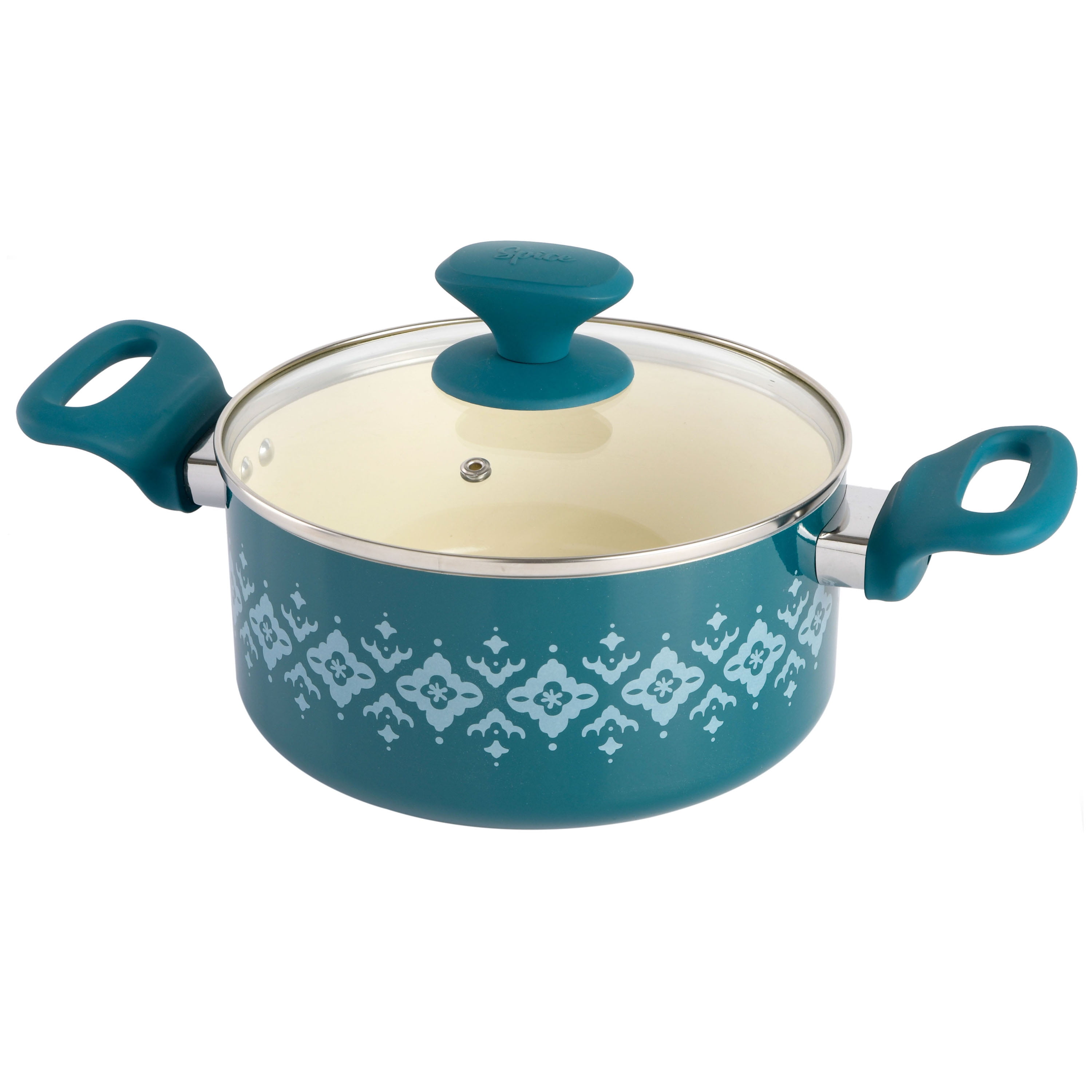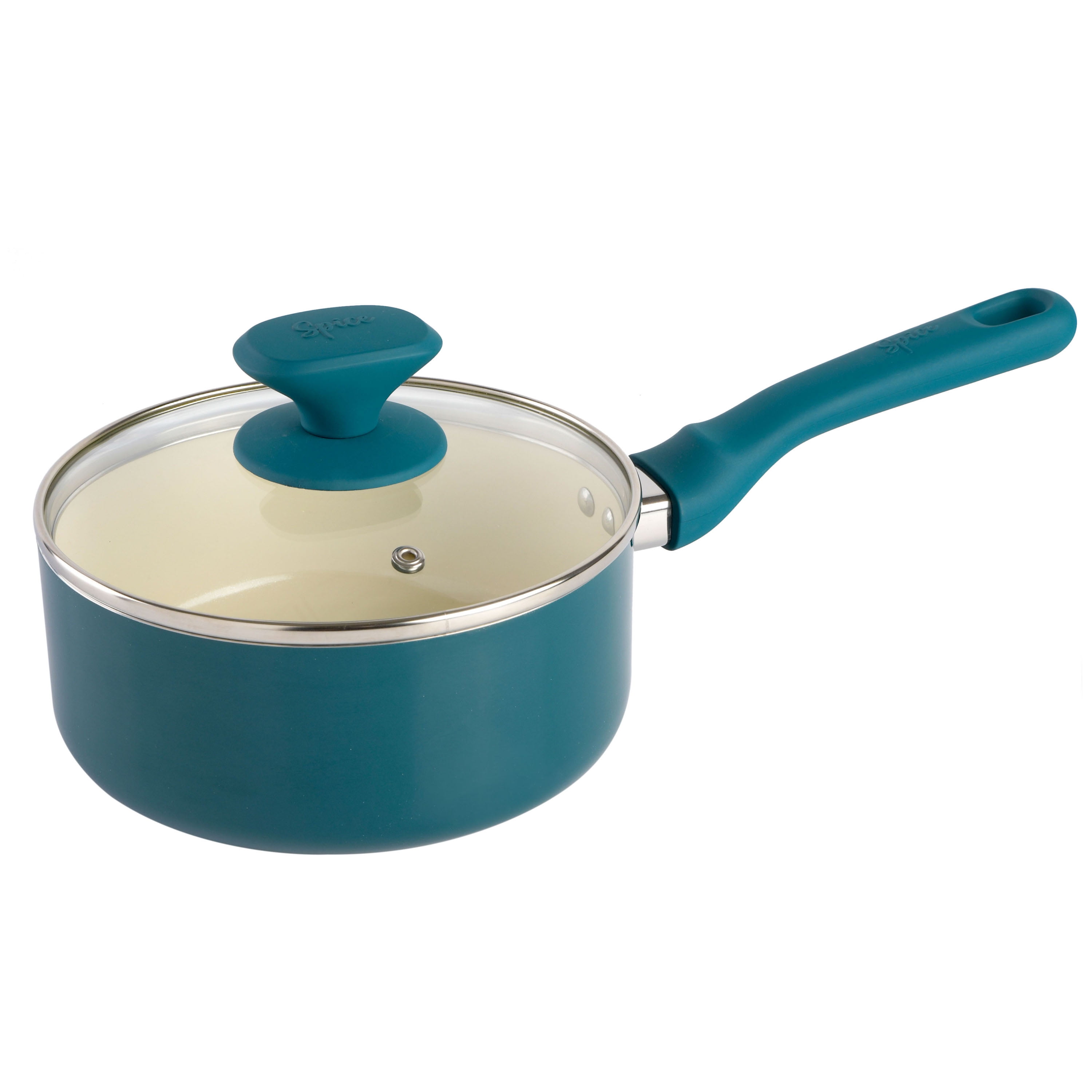 Spice by Tia Mowry – Tia’s Healthy Nonstick Ceramic 10-Piece Teal Aluminum Cookware Set 2-quart saucepan with lid 5-quart dutch oven with lid 9.6″ frying pan 3.5-quart everyday saute pan Baking Pan Spatula Serving Spoon PFOA-free and BPA-free Healthy ceramic nonstick releases food quickly and cleans up easily Heavy-gauge aluminum construction heats quickly evenly Stay-cool, soft-touch handles for a comfortable grip Available in a range of stylish colors Hand wash recommended