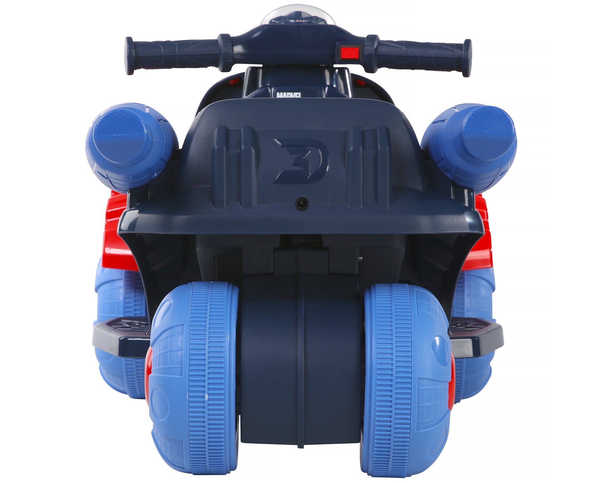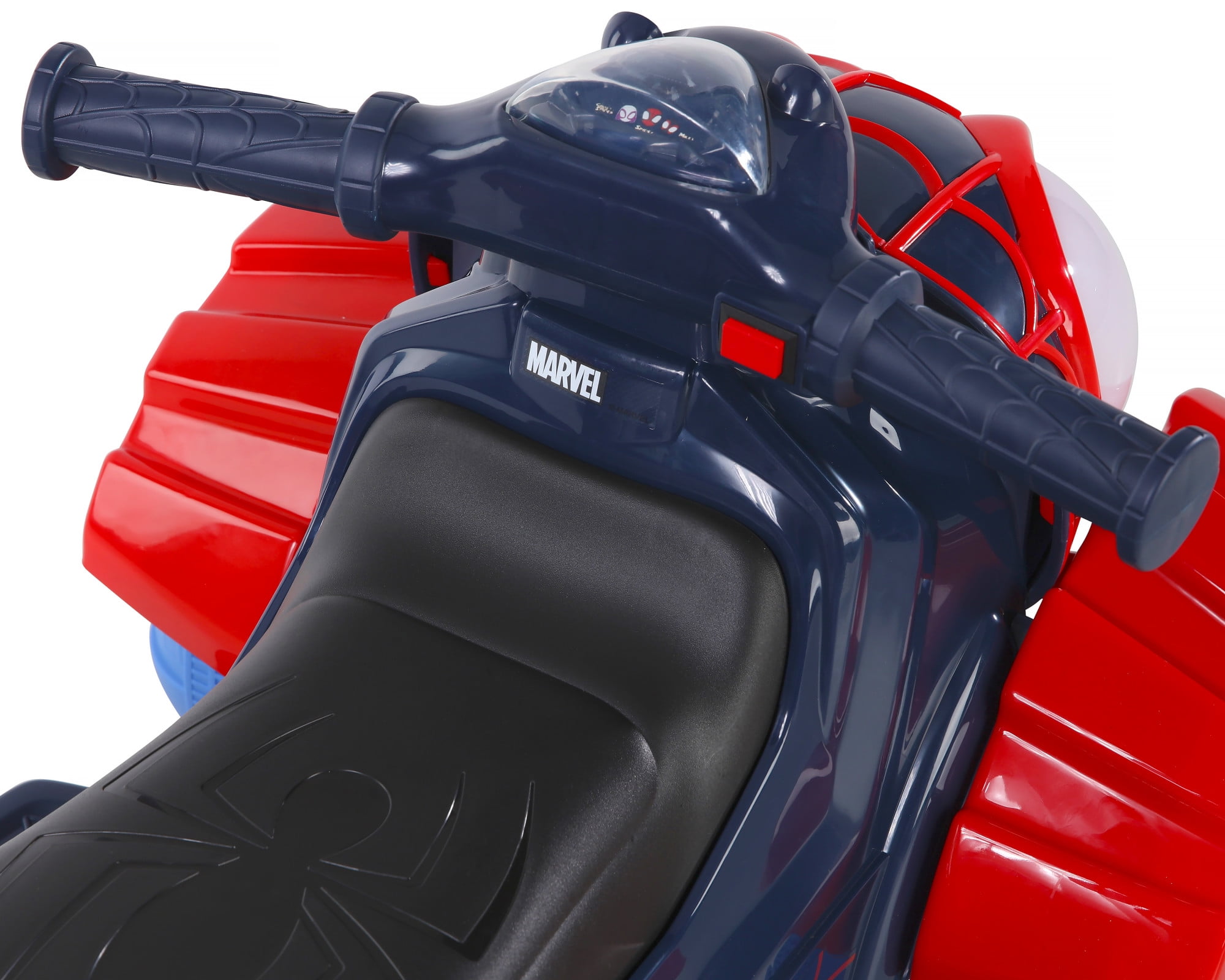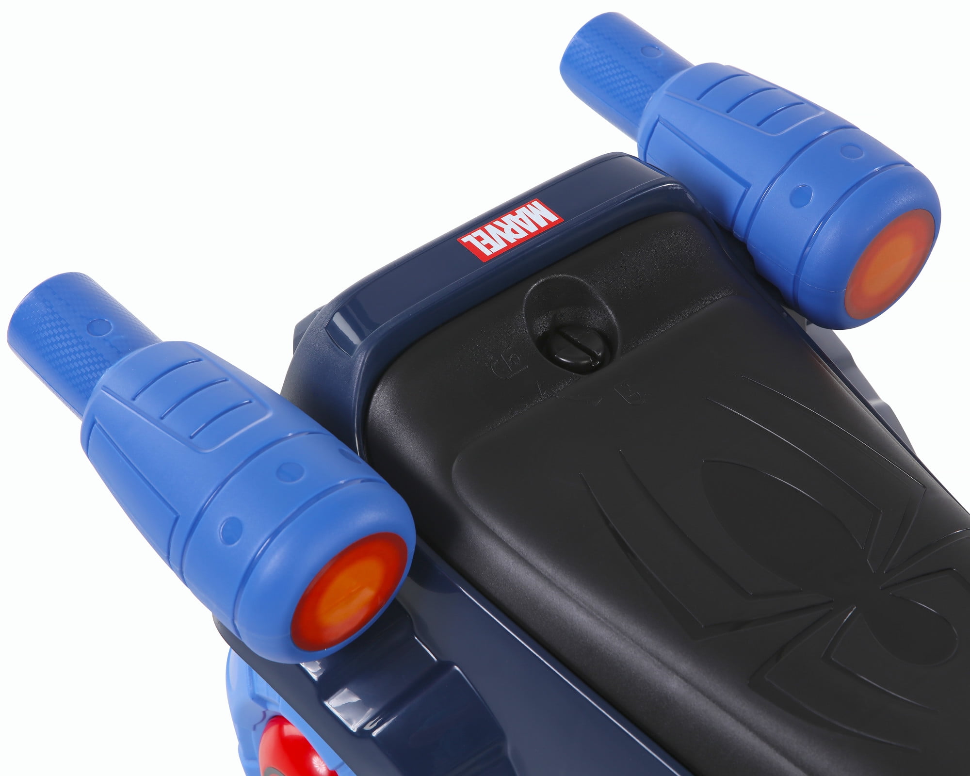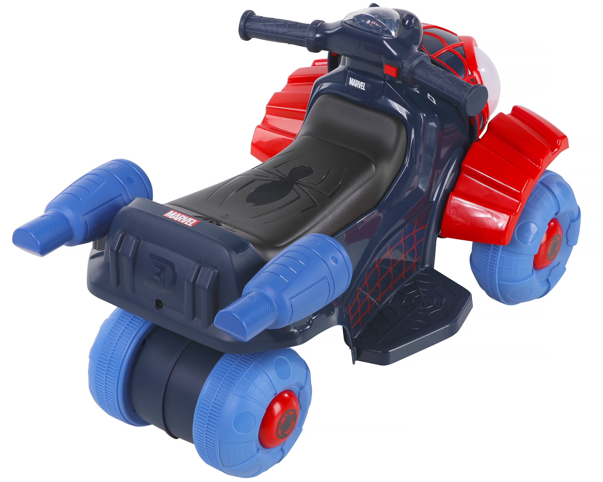 Authentic Spider-Man graphics both boys and girls will love Easy push button acceleration with 2 MPH max speed One-year limited warranty LED light-up feature 6-volt Quad Ride-on for children 1.5-3 years and under 40 Lb