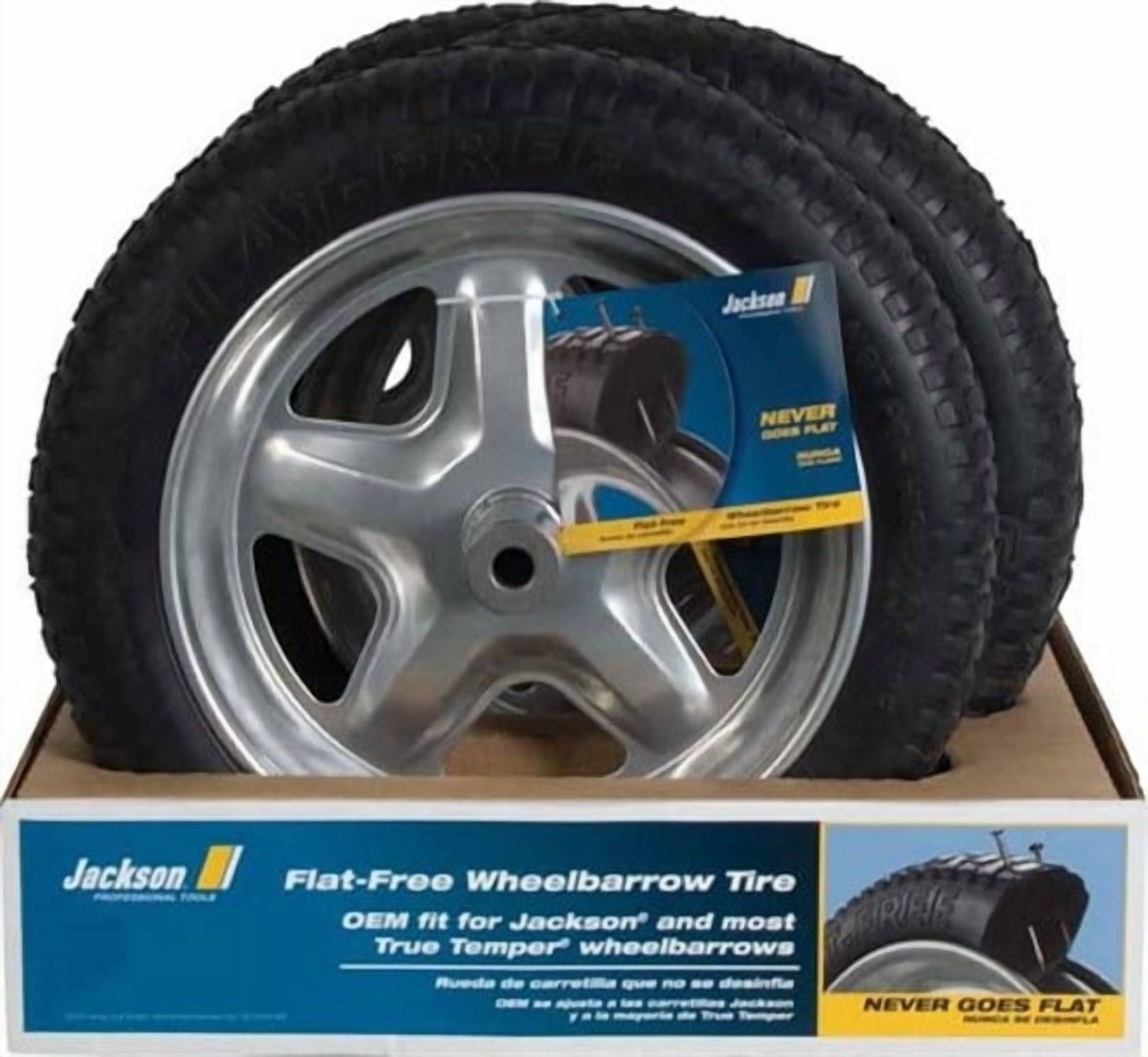 Brand Name: Jackson Sub Brand: Spoked Wheel Diameter: 15-1/2 in. Product Type: Wheelbarrow Tire Material: Rubber Compatibility: Fits All C And M Series Wheelbarrows Wheel Type: Tubeless Inflatable: No Tread Type: Knobby Teeth per Inch: Knobby Department – LAWN & GARDEN/FARM mdseClass – WHEELBARROWS/YARD CARTS prodGroup – WHEELBARROW TIRES/WHEELS