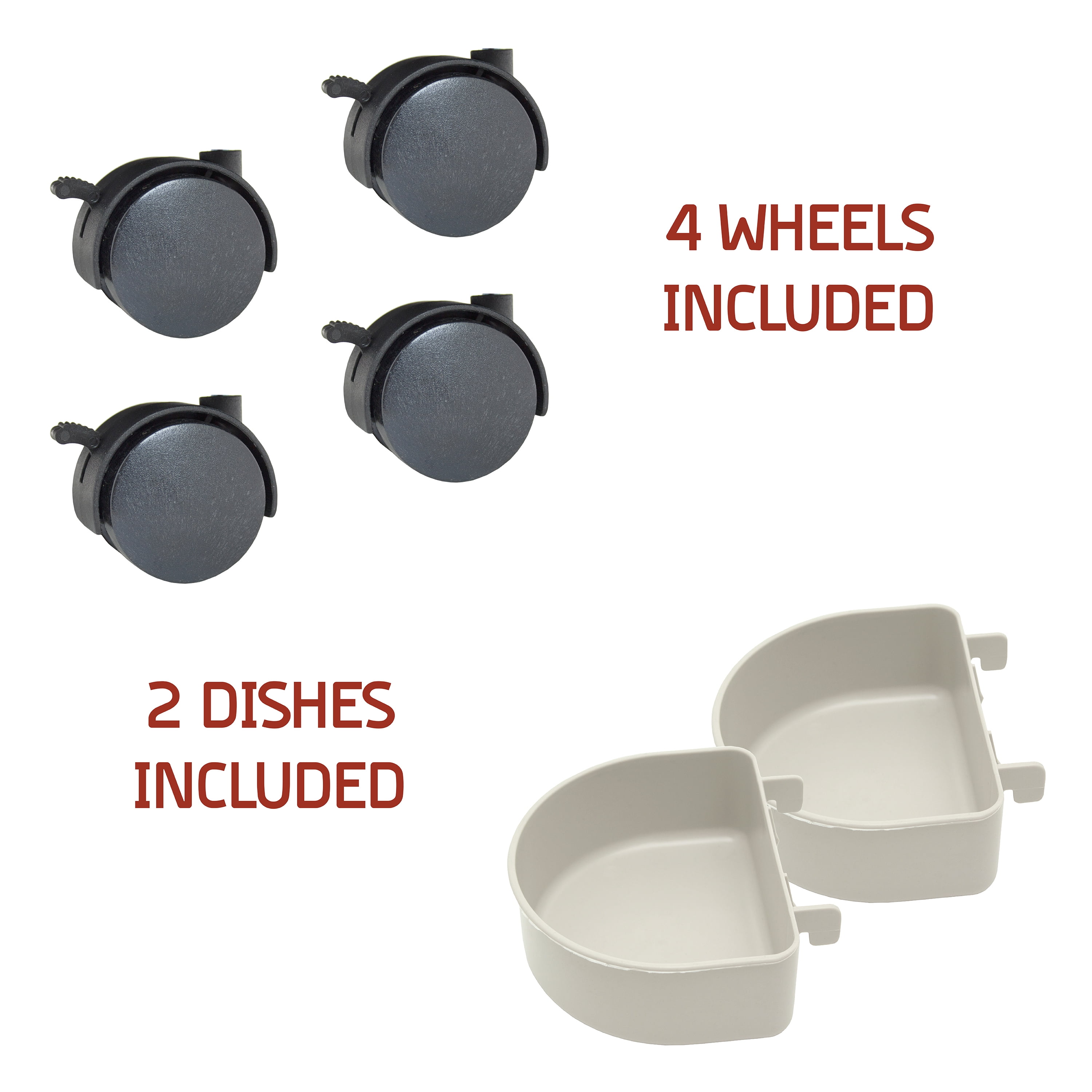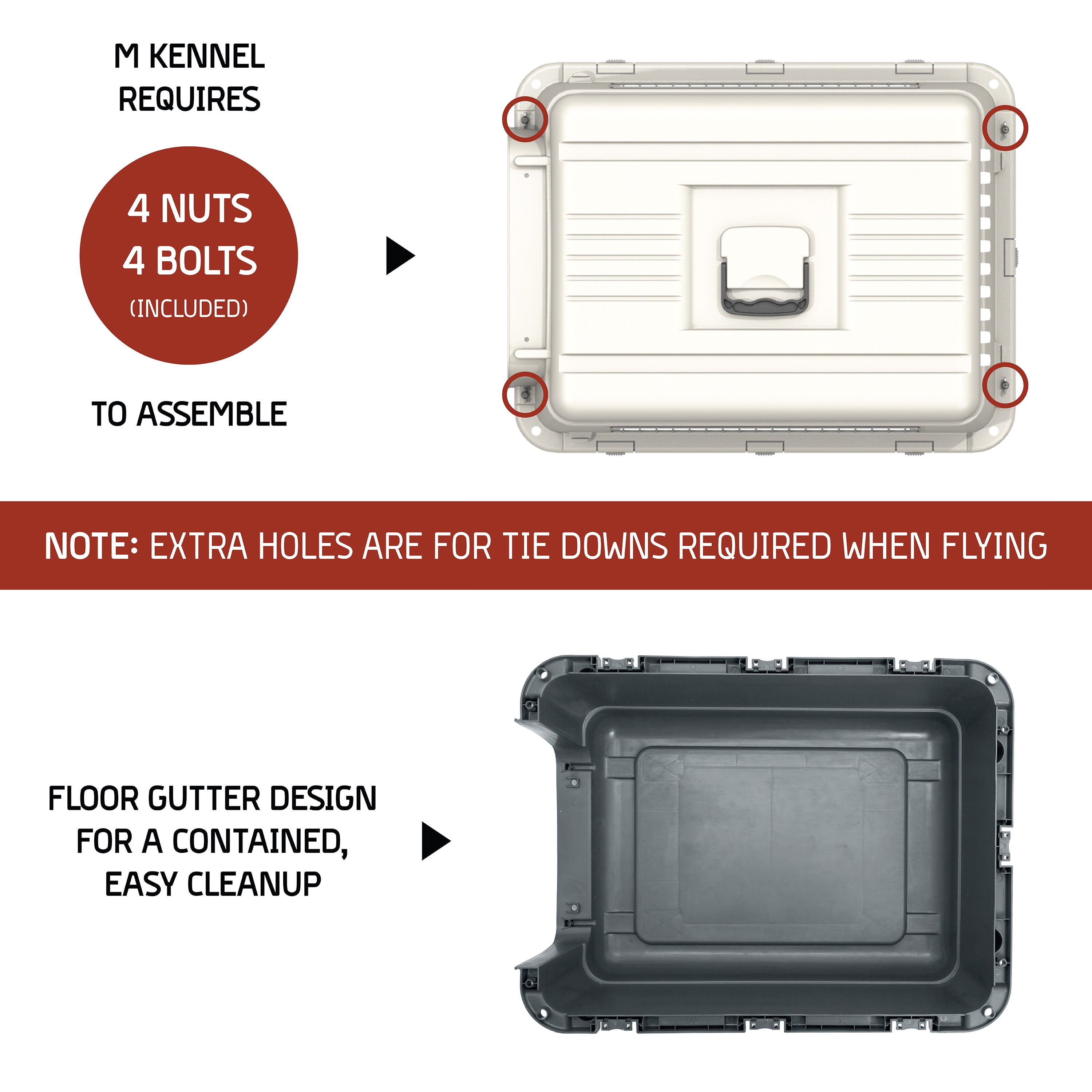 See size chart photo and video to help determine correct size and features Age range description: All Life Stages For kennel trained pets only. Tie down holes for bungees as required by airlines. Wheels snap on and off as needed. Durable construction makes for easy assembly IATA airline approved. 2 dishes, 4 live animal stickers, metal bolts and nuts included For dogs up to 30 lbs. Set-up size: Without Wheels – 26.5” L x 20” W x 18.5” H & With Wheels – 26.5” L x 20” W x 20.75” H inches; 11 lbs. Your dog’s measurements should be under 24″ L x 17″ H for the Medium kennel