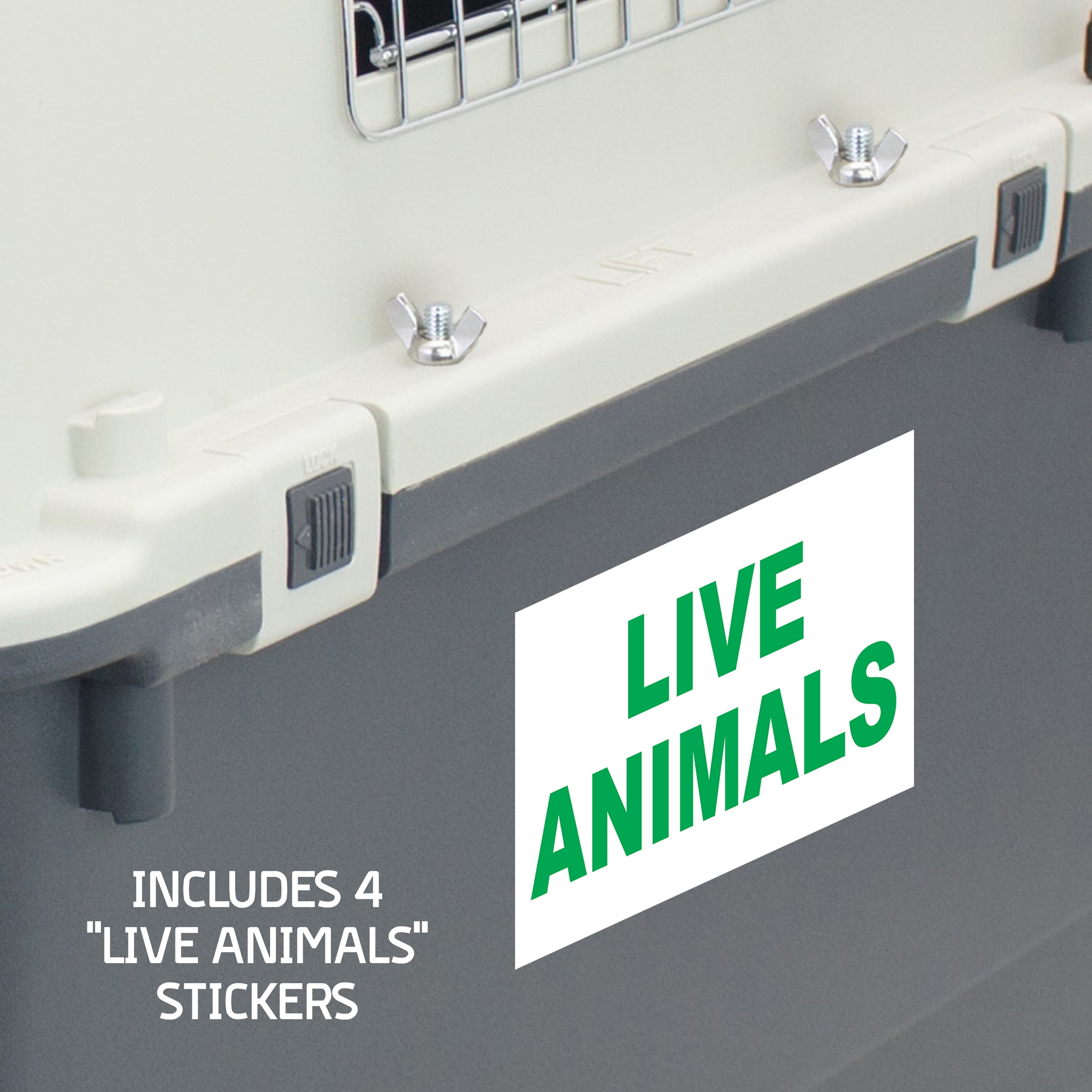 This is a plastic kennel designed for a lifetime of use. Our plastic crate will be your “go to” everyday home crate and Travel kennel. Sizing for help sizing your dog and to ensure you buy the correct size kennel. We also had airline travel in mind when designing this kennel. We include everything you need should you chose to ever fly with your dog. Check out our video for a quick tour of kennel features. Crate/ kennel assembly is fast and easy. Locking snaps hold the kennel halves together; additional included metal hardware locks the kennel together giving you peace of mind that your crate will make it’safe and secure. Some dogs chew their escape through plastic ventilation holes. We use metal slats to mitigate the chewing problem and keep your pet safe. Accident moat pulls spills away from your pet’s body, out to the edges of the kennel and a strong metal kennel door with a smooth, easy-to-grasp latch thick impact resistant poly shell can take a wallop and keep on going. Pet parents should check with their airline before a trip. Airline and cargo carrier rules vary between countries and airlines. Pet crating and kennel shipment rules do change regularly, so be sure to check with proper authority about pet shipments, Reds, and pet certifications and immunizations before your pet’s travel date. Limit kennel time, don’t park under the sun, keep pet in ventilated areas with temperature control and air movement. For pets and intended use only.