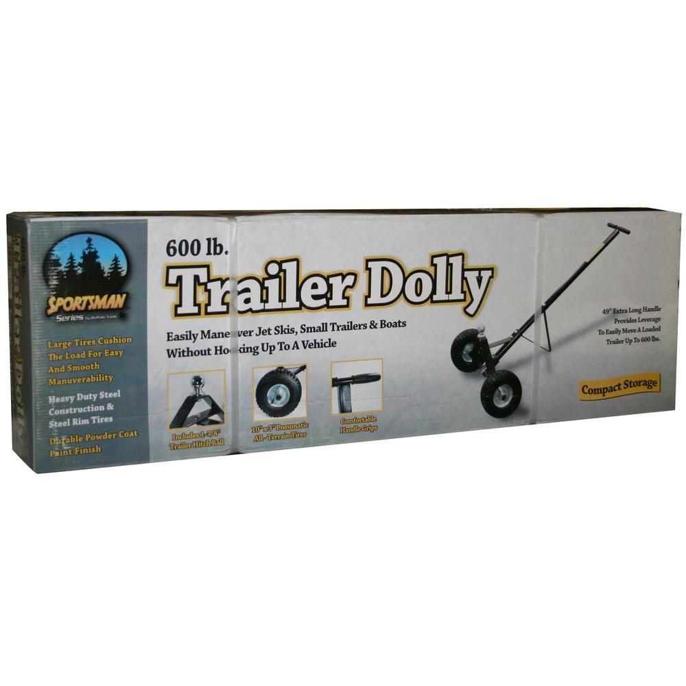 Easily move jet skis, small trailers and boats without hooking the trailer up to a vehicle. Use the Sportsman Series Trailer Dolly to move your ATV around the storage space, or for getting the boat to the water where vehicle access is limited. This 600 pound capacity Trailer Dolly is built to make moving heavy loads across most terrains easy. The 49 inch long handle, with comfortable handle grips, gives you lots of leverage on heavy loads. The 10 x 3 inch pneumatic tires give plenty of cushion and grip for easy and smooth maneuverability. A 1-7/8 inch trailer hitch ball is included, so the Trailer Dolly is ready to use once assembled. The heavy duty steel frame is covered with a powder coat finish that resists rust, corrosion and scratches.