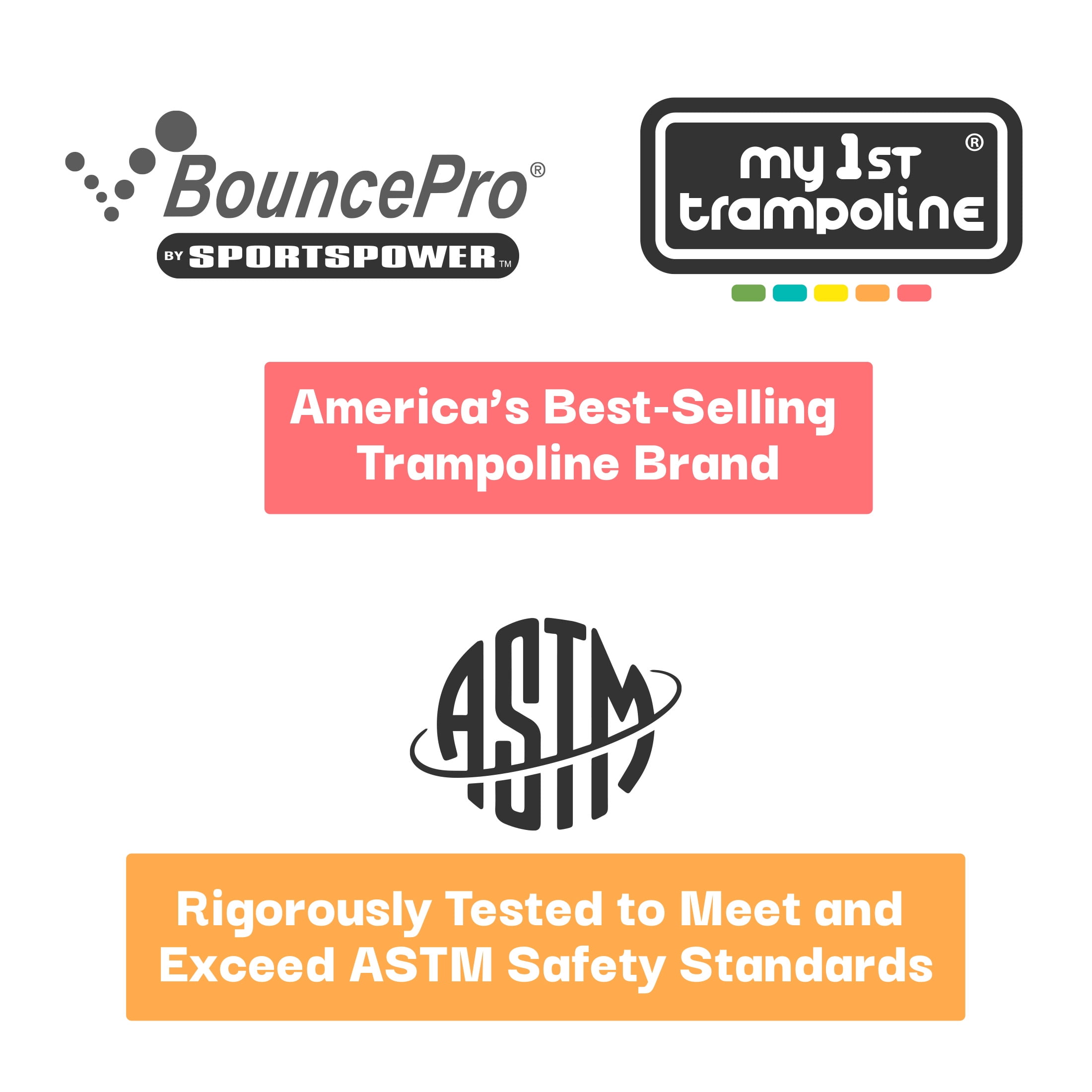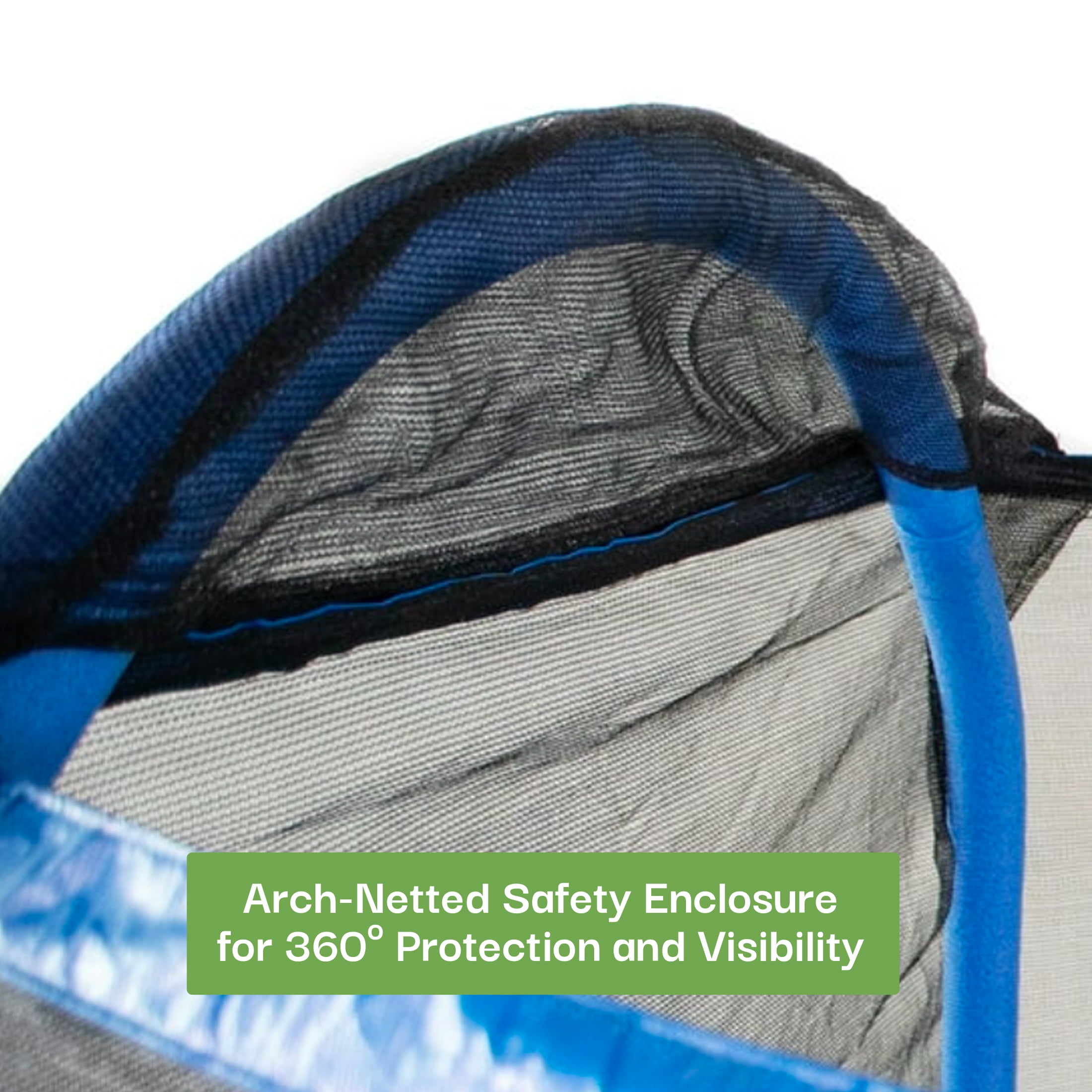 Keep little ones entertained and active in the backyard with the 7’ My 1st Trampoline for Kids 3-10 with Safety-Enclosure in Blue and Green. Ready, set, bounce. Designed with patented features for safety and fun, it includes a 360º net enclosure for clear views and protection, plus foam-padded poles and a sewn-in spring cover for added security. The colorful, blow-molded plastic legs ensure extra stability and a playful look. BouncePro™ trampolines are built for safety, durability, and all-day fun. Exceeding ASTM standards by over double, our trampolines feature a galvanized steel frame, UV-resistant materials, and patented double-welded plates on frame and leg connections. The 360° safety enclosure and padded protection keep kids secure season after season. Backed by 20+ years of expertise, Sportspower™ delivers quality play at unbeatable value with a US-based customer service team always ready to assist.