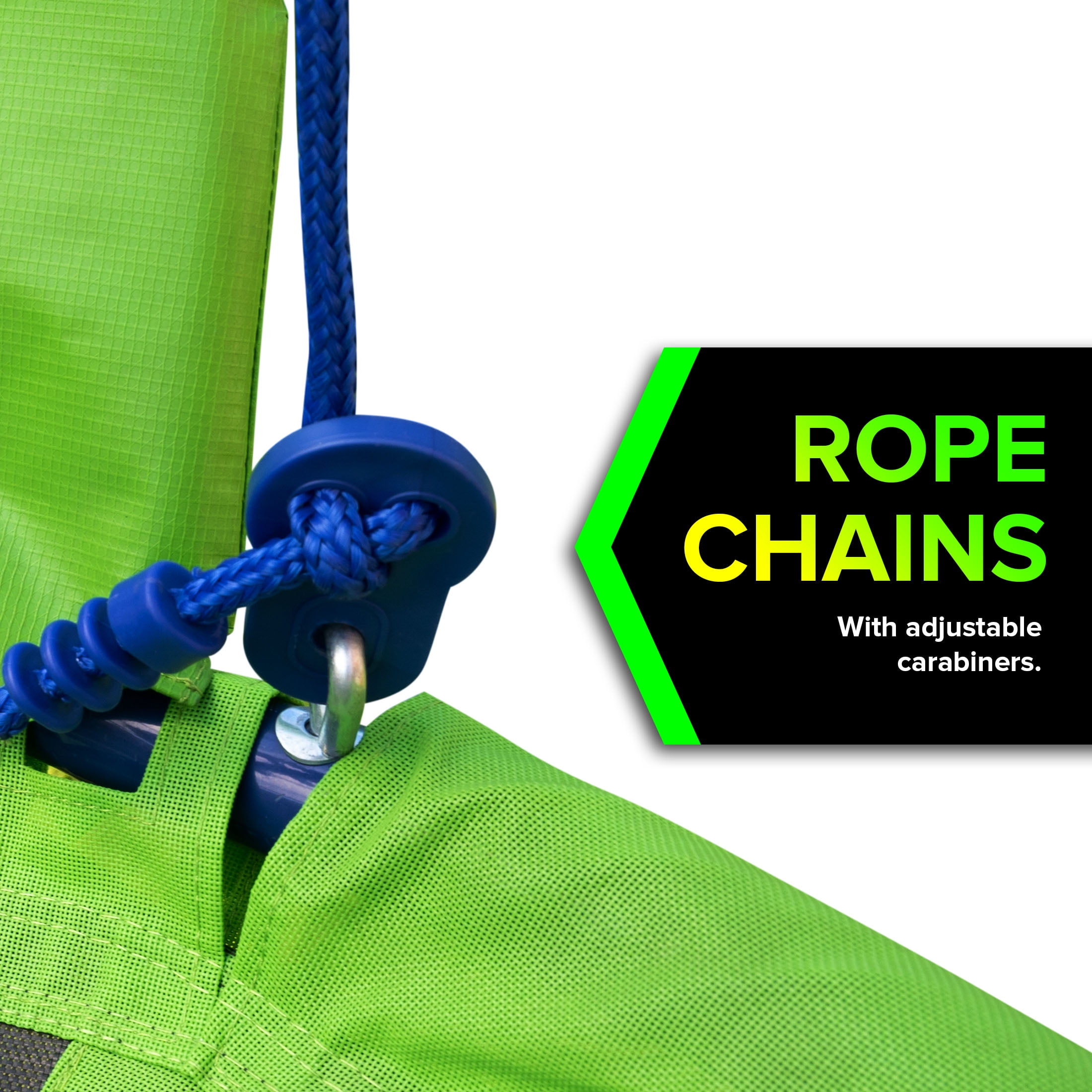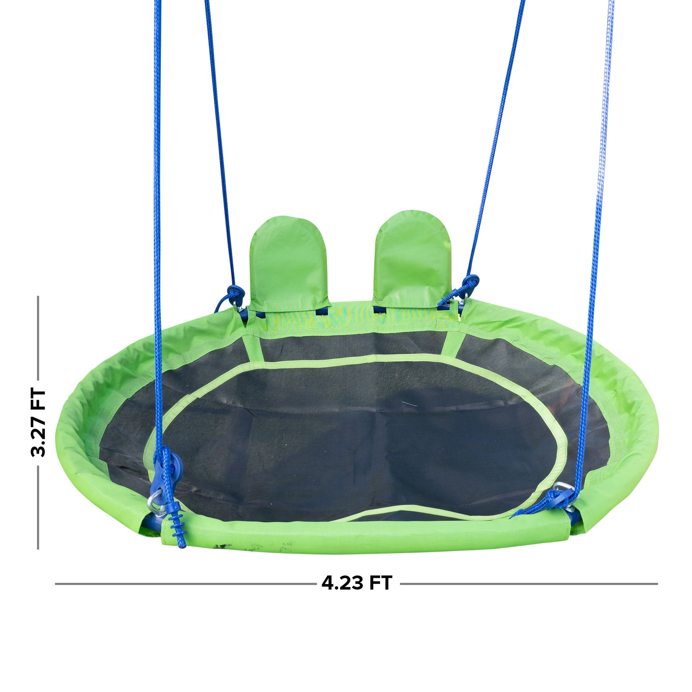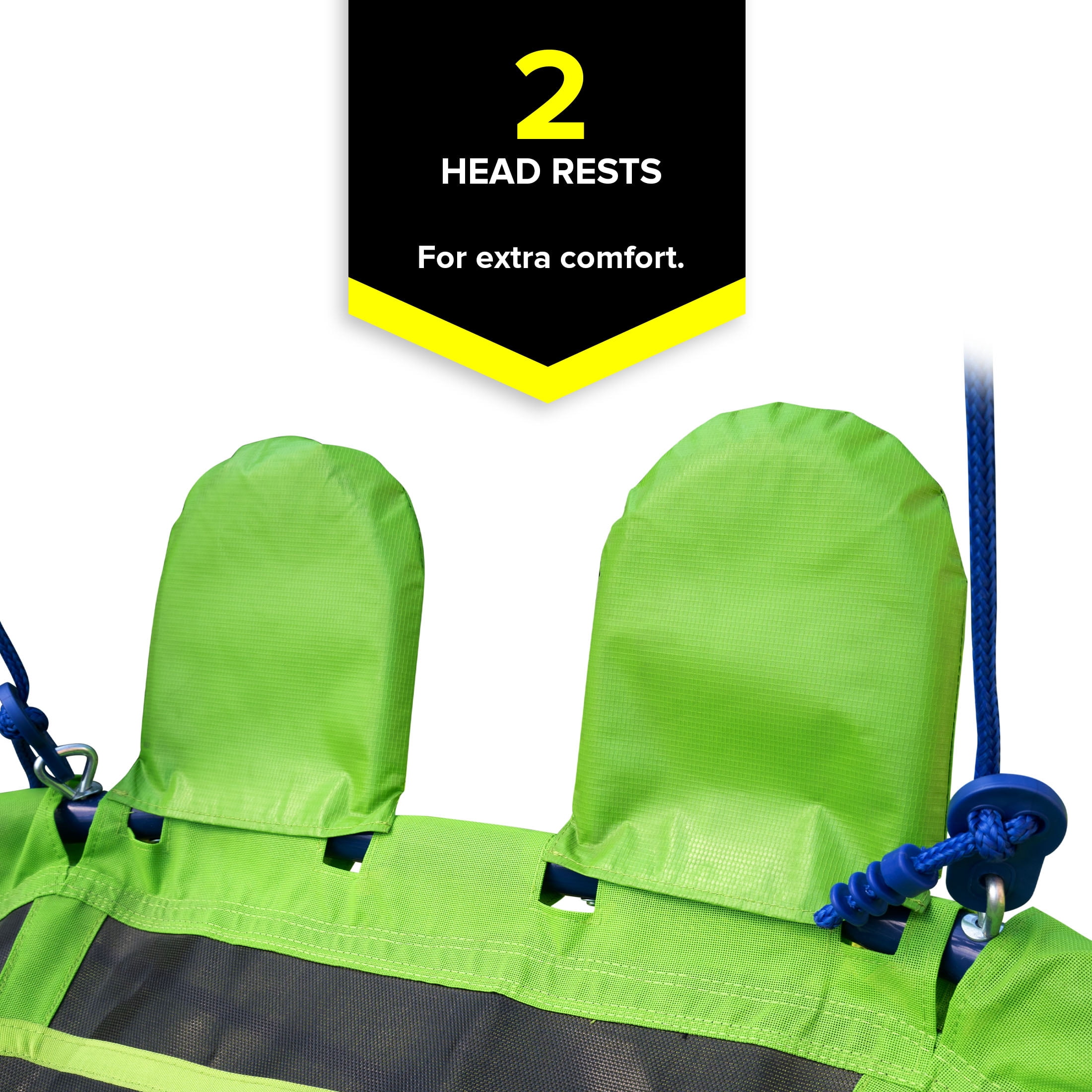 Sportspower Adjustable Rope & Carabiners Sportspower Portable Metal 54″ 2-Person Saucer Swing Features 2 foampadded headrests for added comfort Constructed with reinforced inner webbing for durability Includes rope chains with adjustable carabiners for easy setup Meets or exceeds ASTM safety standards for peace of mind