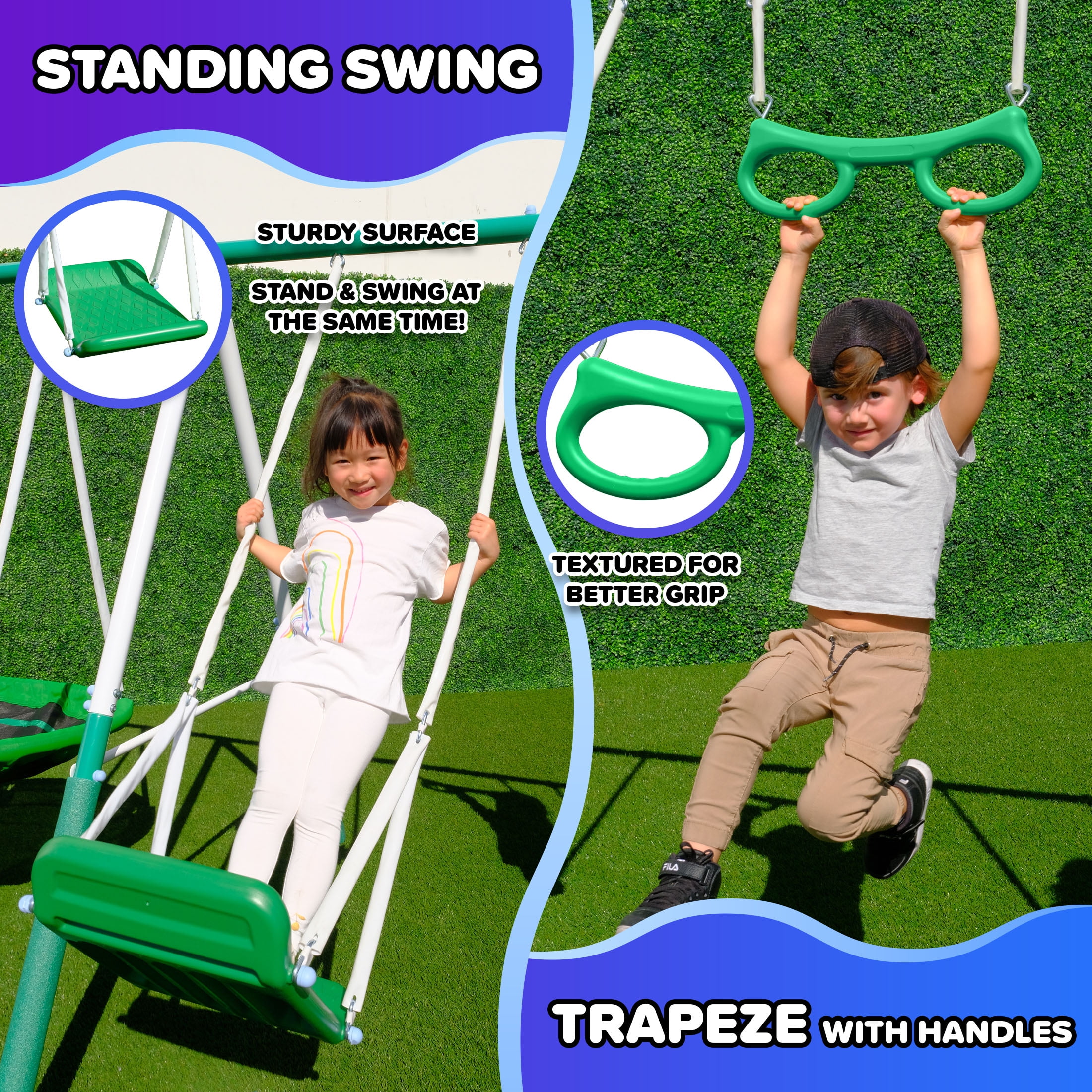 Sportspower Bayside 7-in-1 Metal Swing Set, 1000 lb Total Capacity, Teeter-Totter, Swing, Saucer, Standing Swing, Trapeze, Glider, 5 ft Slide, 17.4 ft L x 7.6 ft W x 6 ft H
