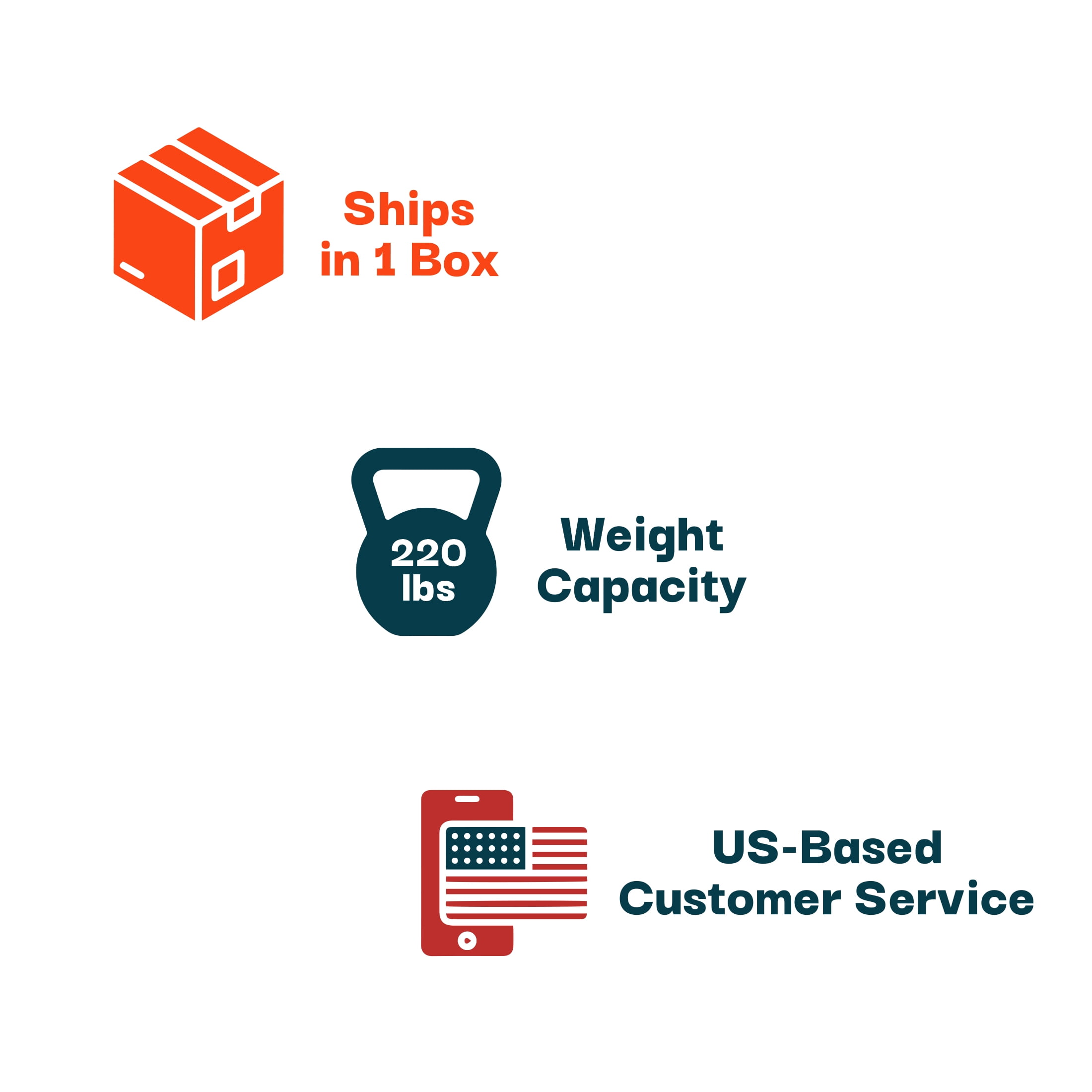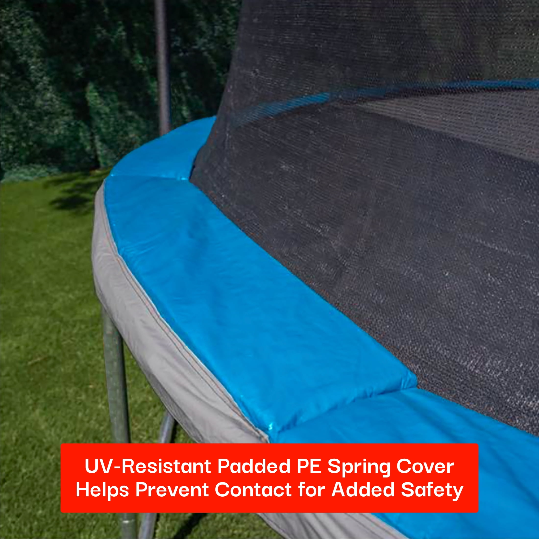 Rust-resistant galvanized steel frame UV-resistant jump mat, pad protector and safety-enclosure net 360º soft and durable netting Park-quality jump mat withstands over 5000 hours of UV testing Foam-padded spring cover for added safety Patented double-welded plates on joints and leg connections Steel “U-leg” design for stability SteelFlex Enclosure System for added safety Product Diameter: 10 ft Maximum Weight Capacity: 220 lbs Ships in 1 Box US-based customer service