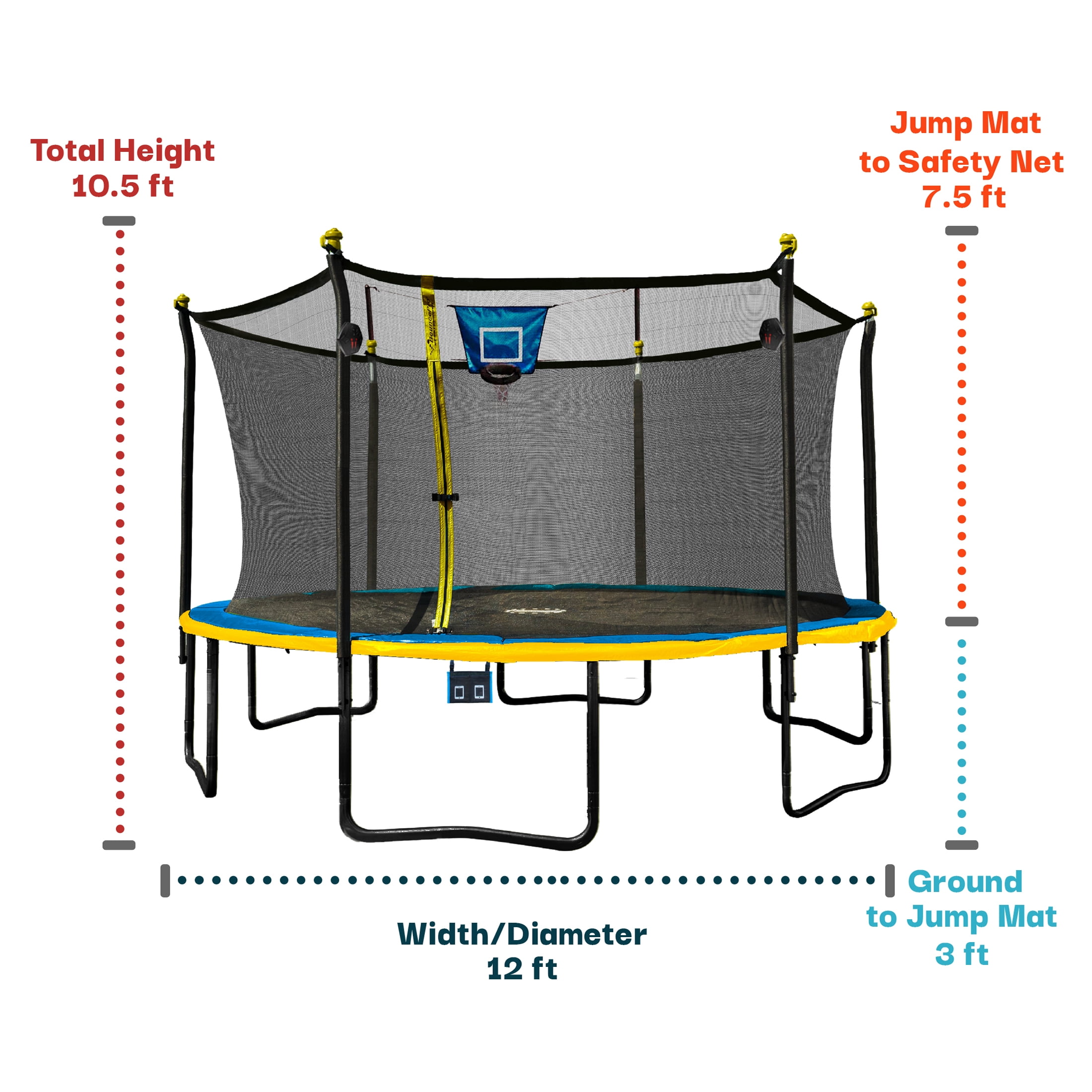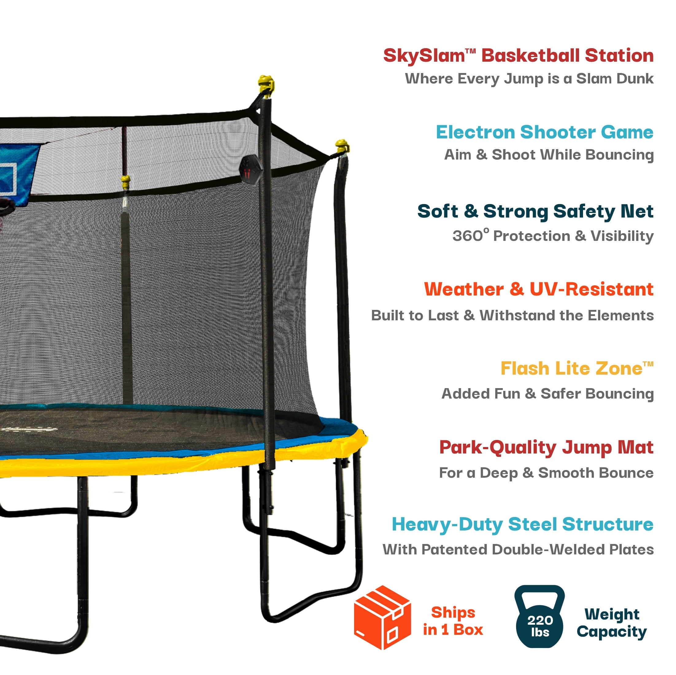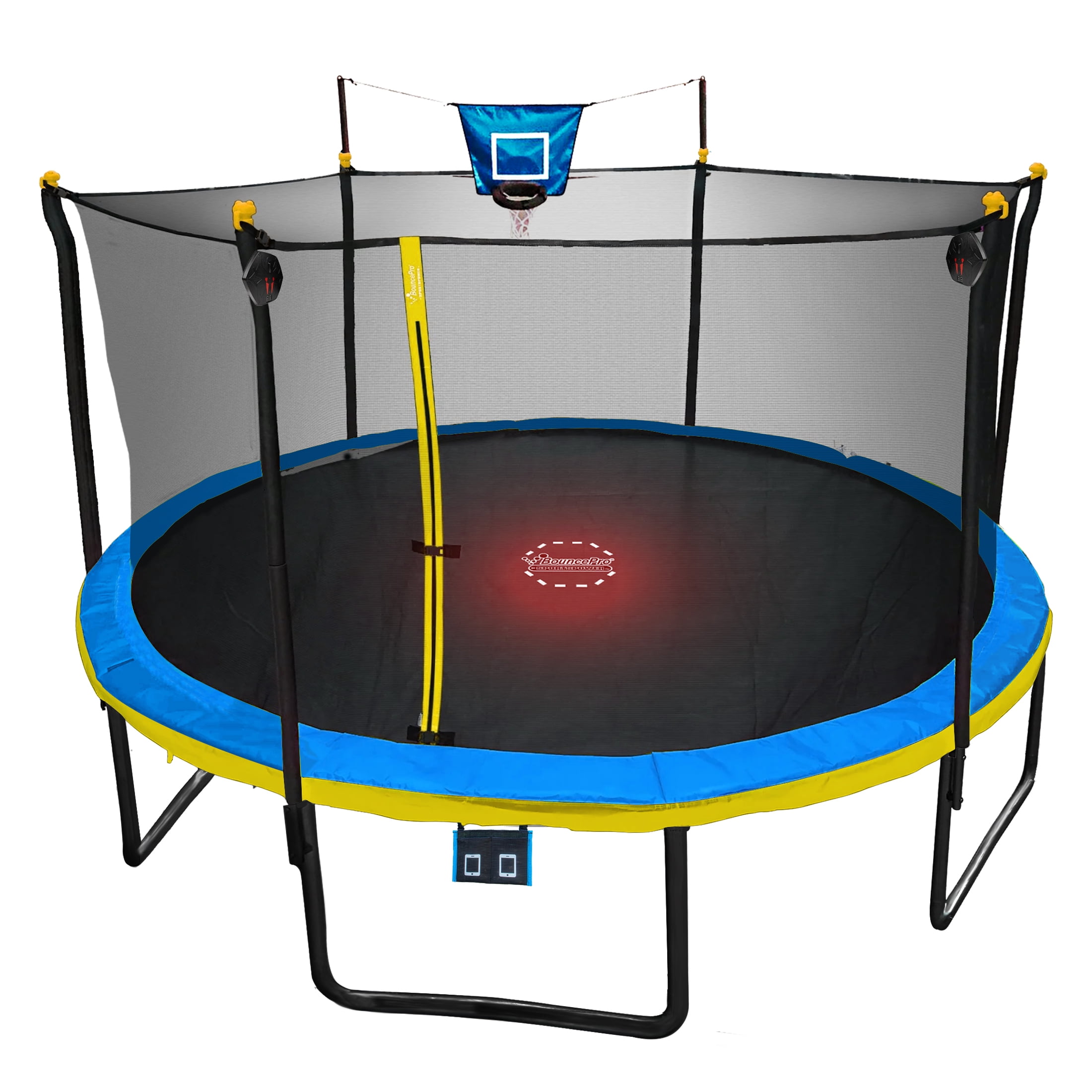 Sportspower Bounce Pro 12ft Multiplay Trampoline & Enclosure with Basketball, Electron Shooter Game, Flash Light Zone Features, Painted Legs & Phone Pouch