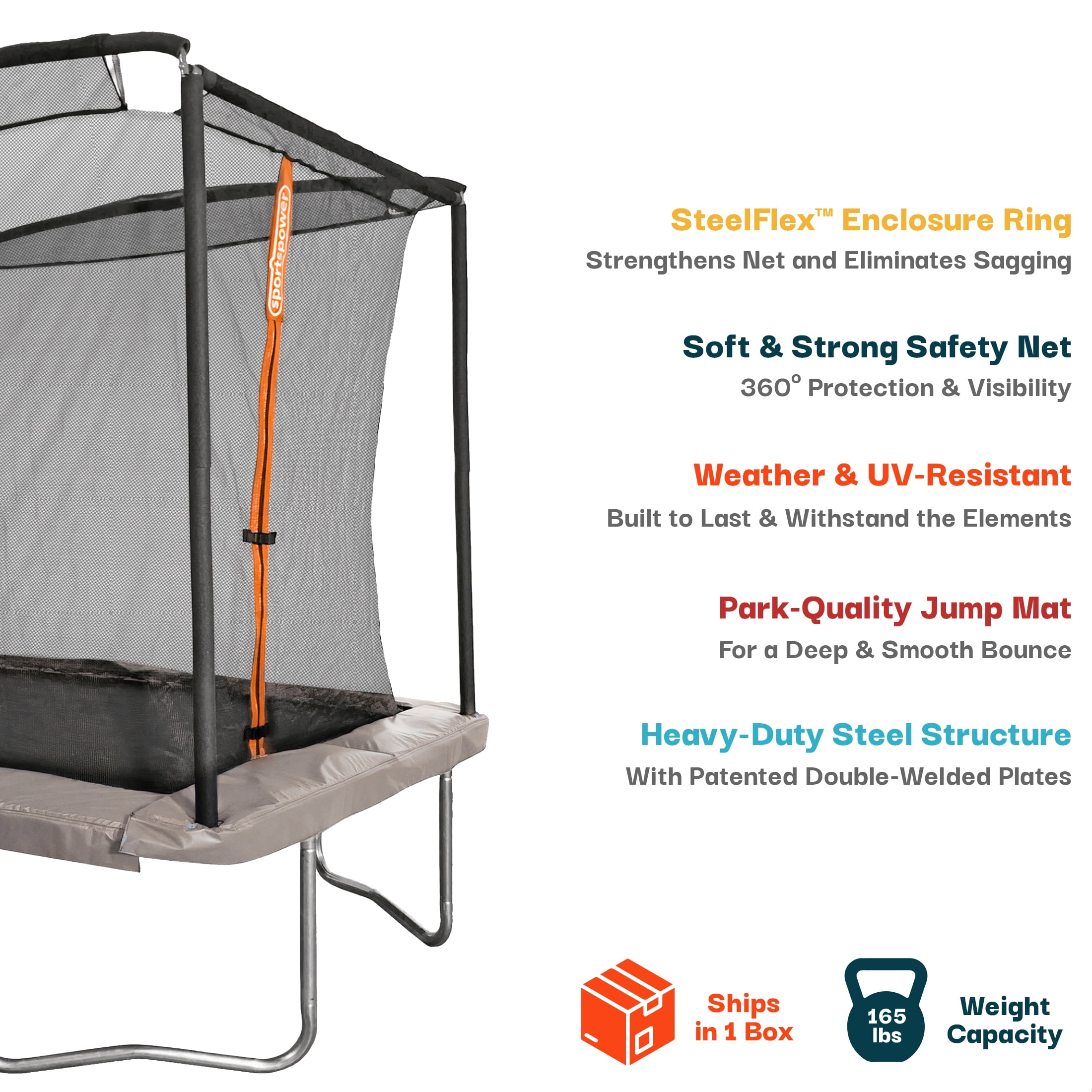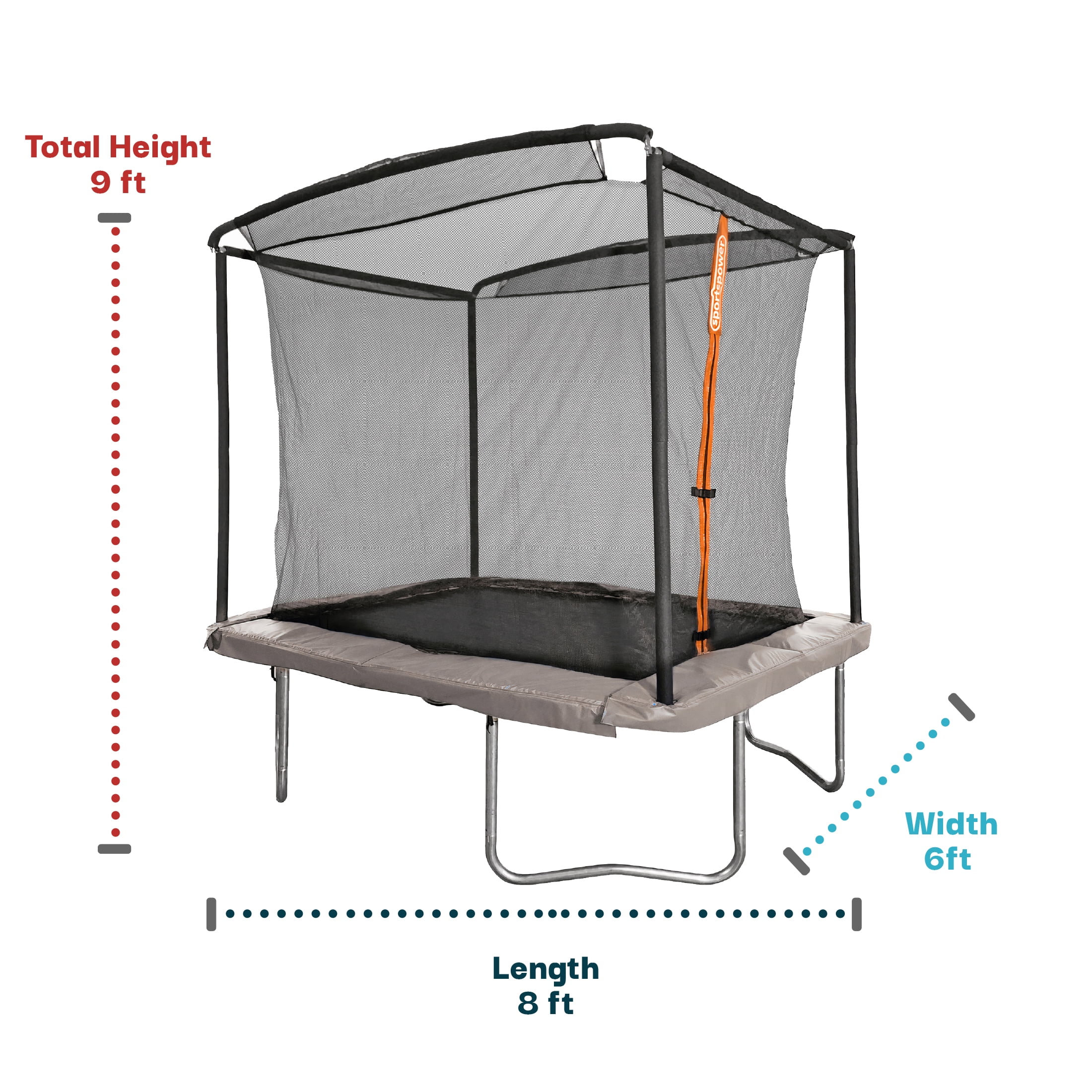 Sportspower Bounce Pro 6×8’ Rectangular Trampoline for Kids 6+ with Safety-Enclosure in Gray and Orange