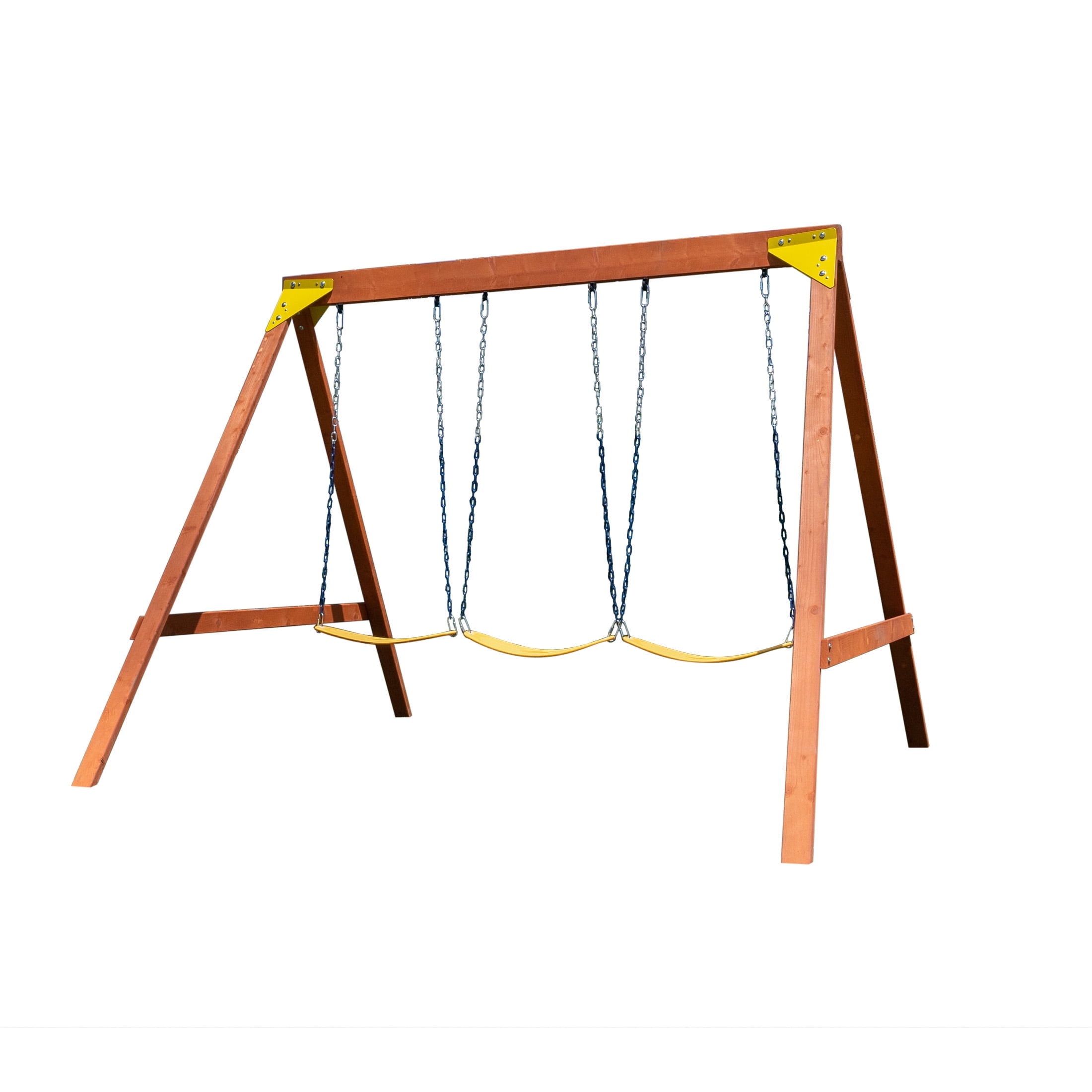 The Brooklyn Wooden Swing Set by Sportspower brings smiles and hours of fun for your children in the comfort of your own backyard! Constructed of sturdy and safe Northern Europe Scandinavian wood, this swing set is built to last season after season. With 3 sling seat swings, this swing set allows 3 children to play and socialize at the same time. With adjustable swing chains, these swings can be adjusted as your children grow bigger. Our sling seats are designed to fit your children’s sitting conditions to bring maximum comfort during playtime. The classic wooden and yellow structure will never go out of style. Bring the Brooklyn Wooden Swing Set home and watch your kids’ fun grow! Start swinging!