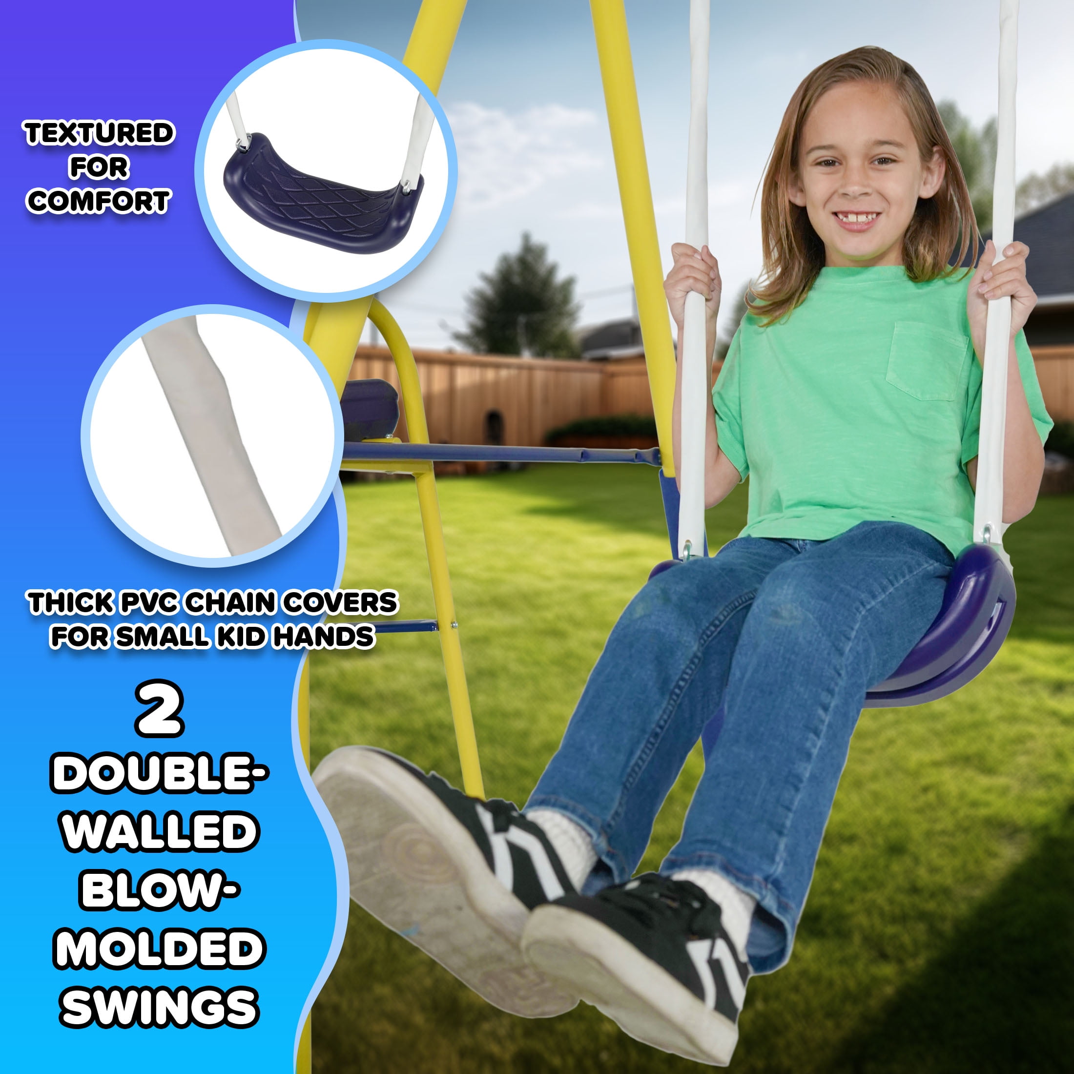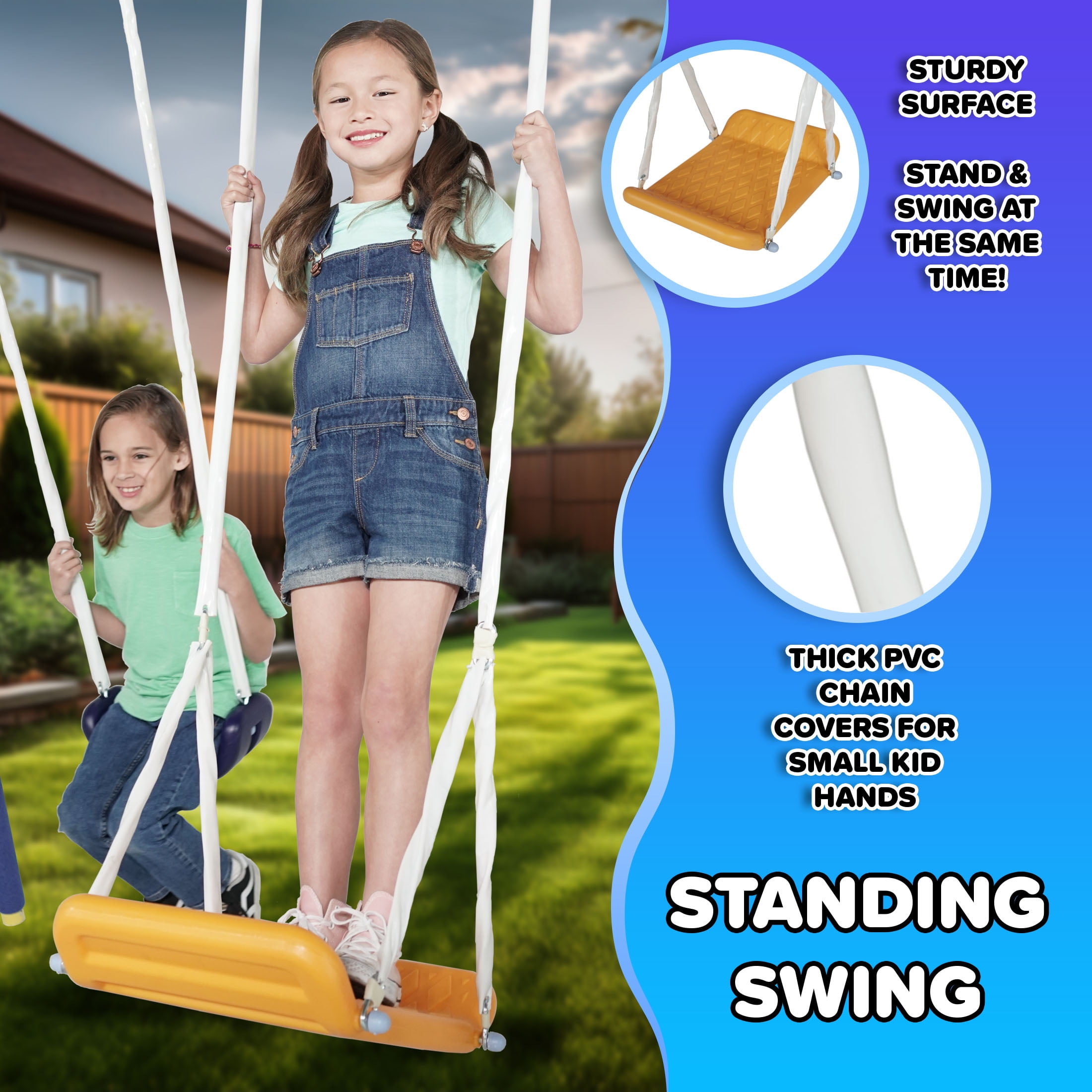 Sportspower Palmview Outdoor Swing Set for Kids Ages 3–8 with 2 Swings, Standing Swing, Teeter-Totter, 5ft Slide, 6.1ft Steel Frame, Anchor Kit Included