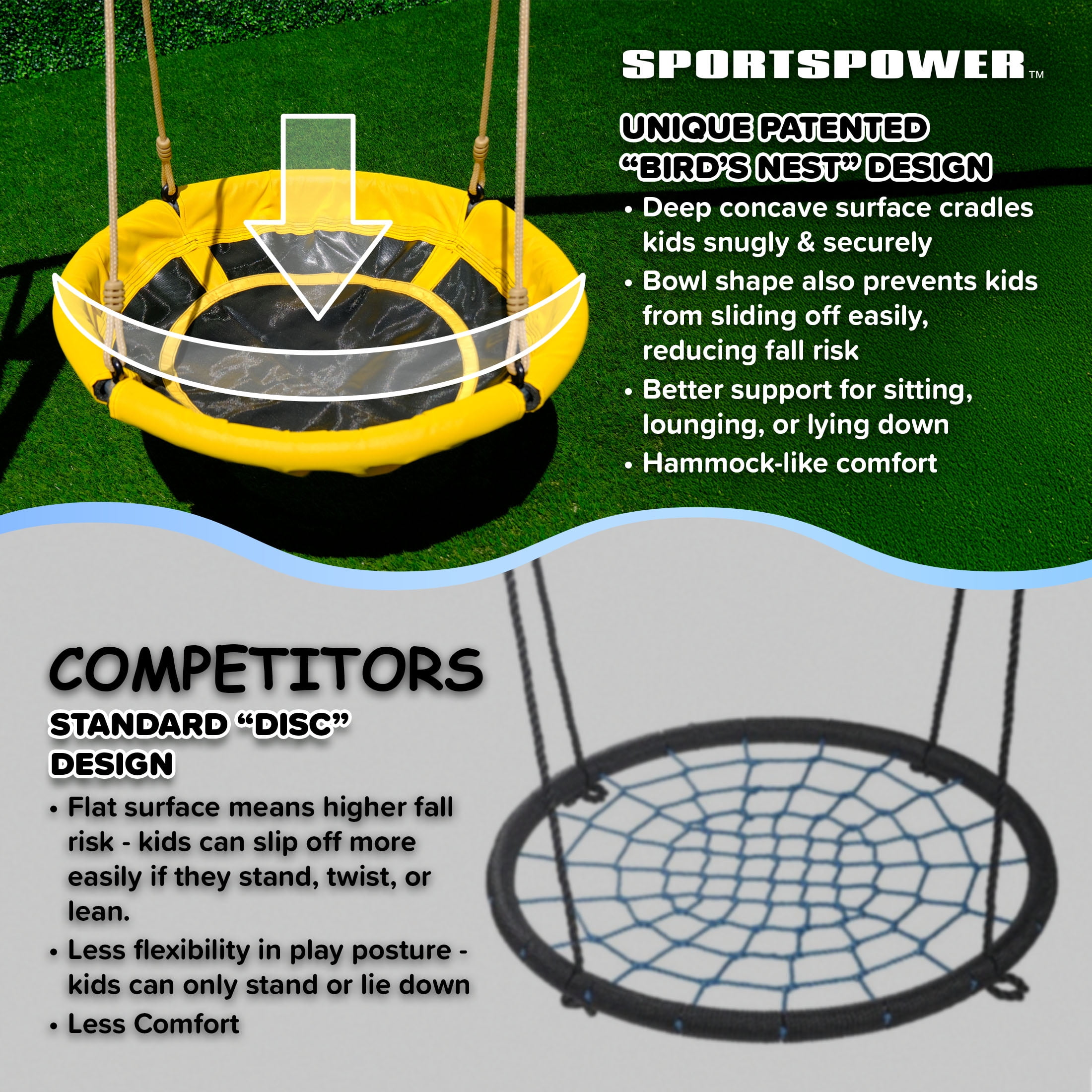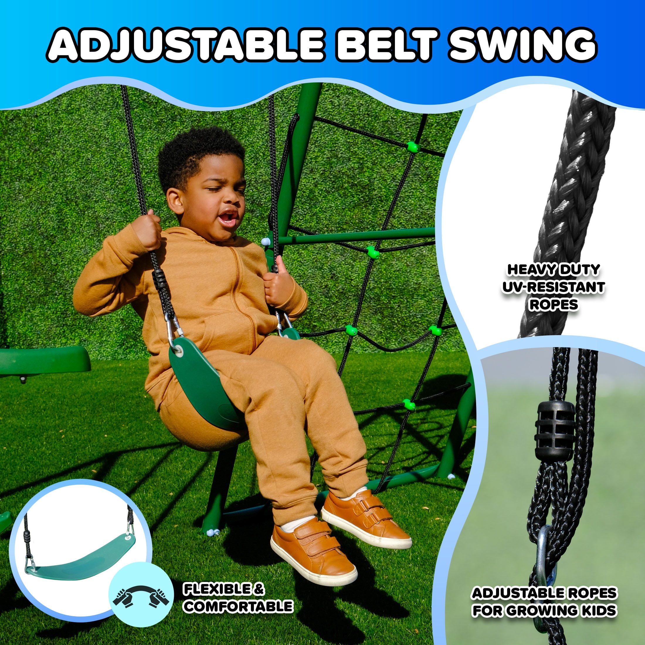 Sportspower Swing Climb & Glide Metal Swing Set 6 in 1 with Heavy-Duty A-Frame, Belt Swing, Glider, Saucer, Climbing & Net Ladders, for Ages 3-8