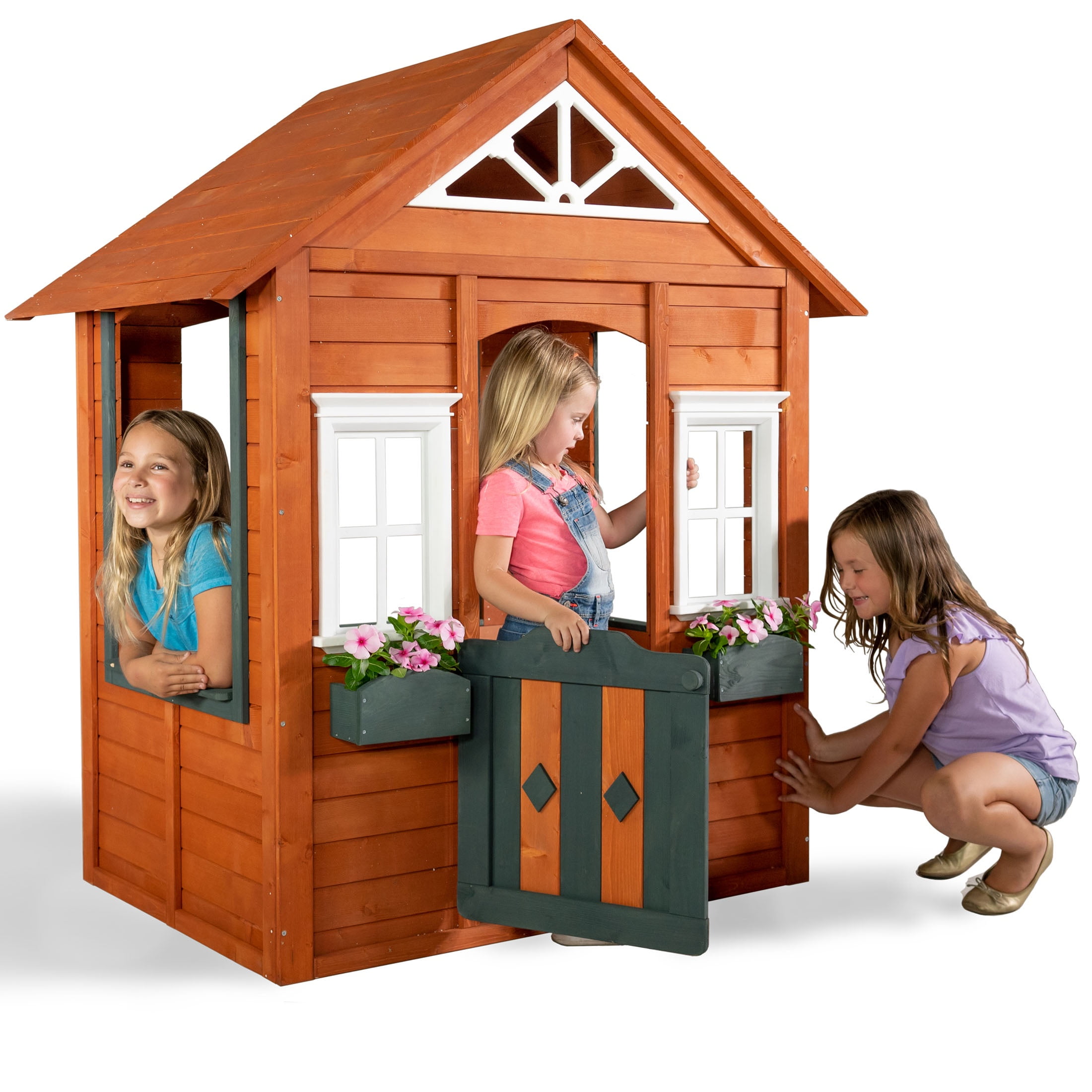 The Sportspower Woodbridge Wooden Playhouse is the perfect playhouse to spark your kid’s imaginative play. The Woodbridge’s stylish design features white trim windows, decorative working door, flowerpot shelves (flowers not included) and wide open side windows. The Sportspower Woodbridge Wooden Playhouse calls for the ultimate imaginative play as it includes wide side windows for imagination station which allows your little ones to create their own lemonade stand, takeout restaurant, or puppet theater. The wooden red-colored and white trim never goes out of style! You can also add a little bit of beauty in the provided flowerpot to grow plants. Constructed from the finest imported Finland wood known for their straight grained tough timber. The entire family will enjoy hours of fun with the Sportspower Woodbridge Wooden Playhouse. The fun never ends with Woodbridge Wooden Playhouse by Sportspower! All Sportspower products meet or exceed all ASTM safety standards, so kids and parents can both enjoy Woodbridge Wooden Playhouse with peace of mind.