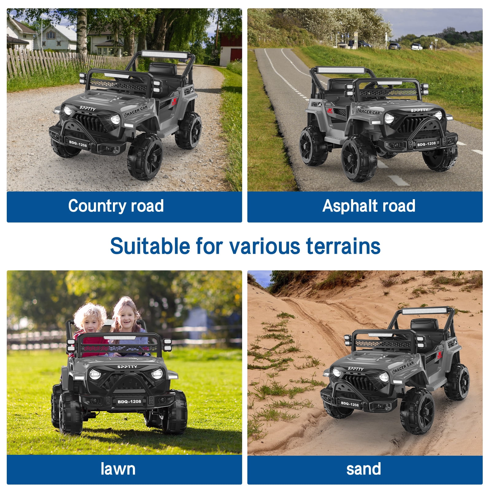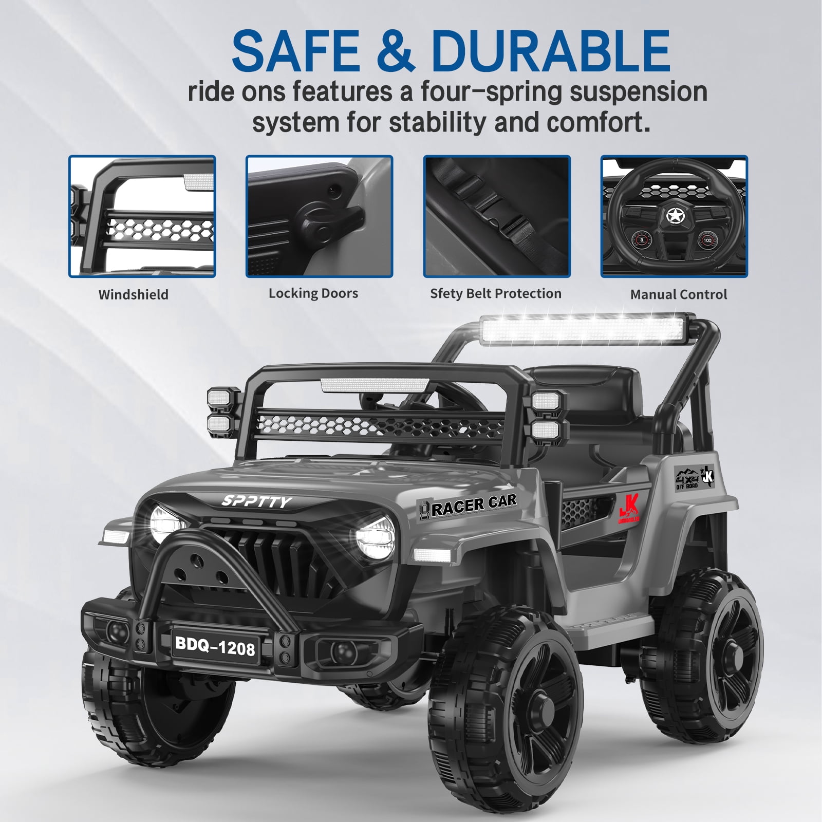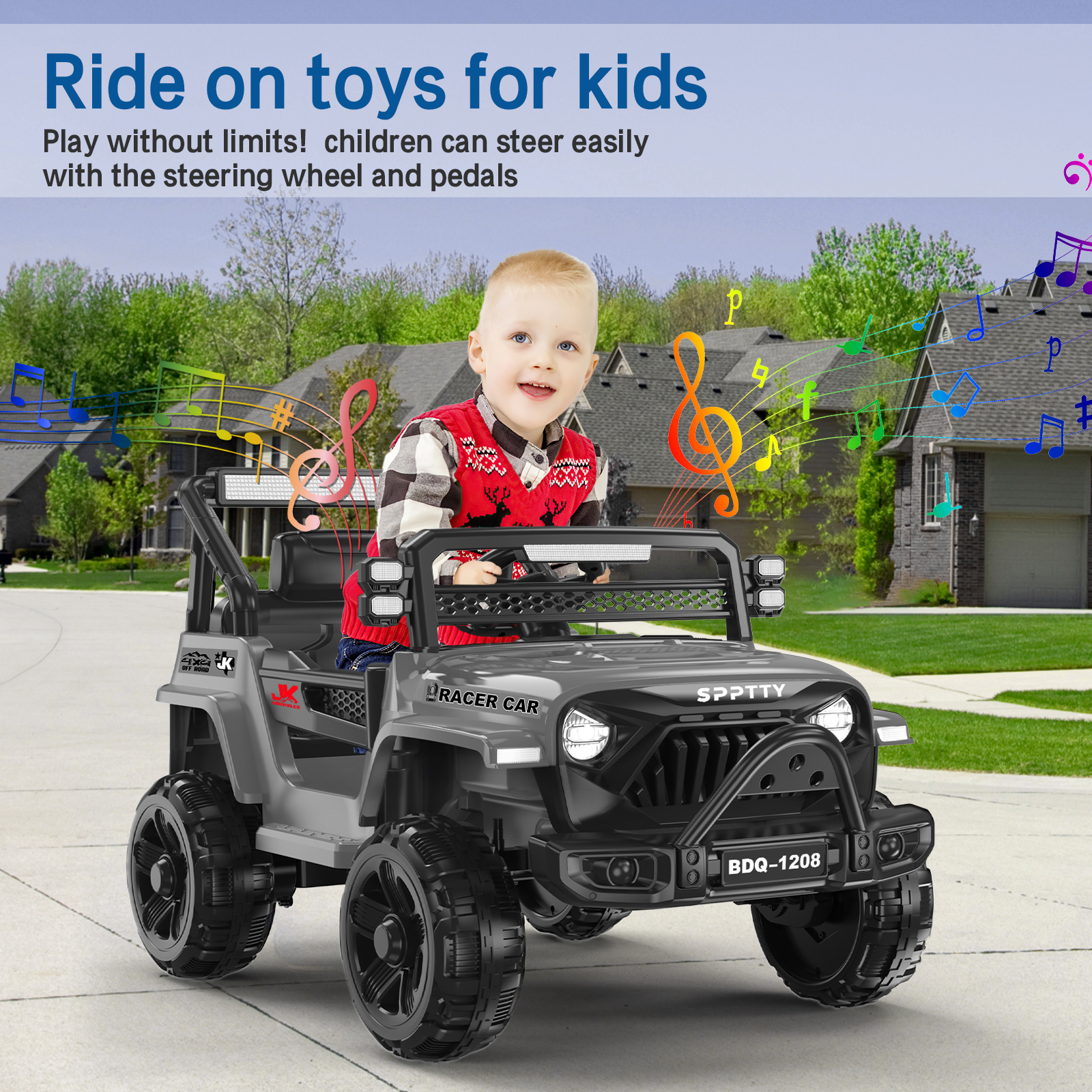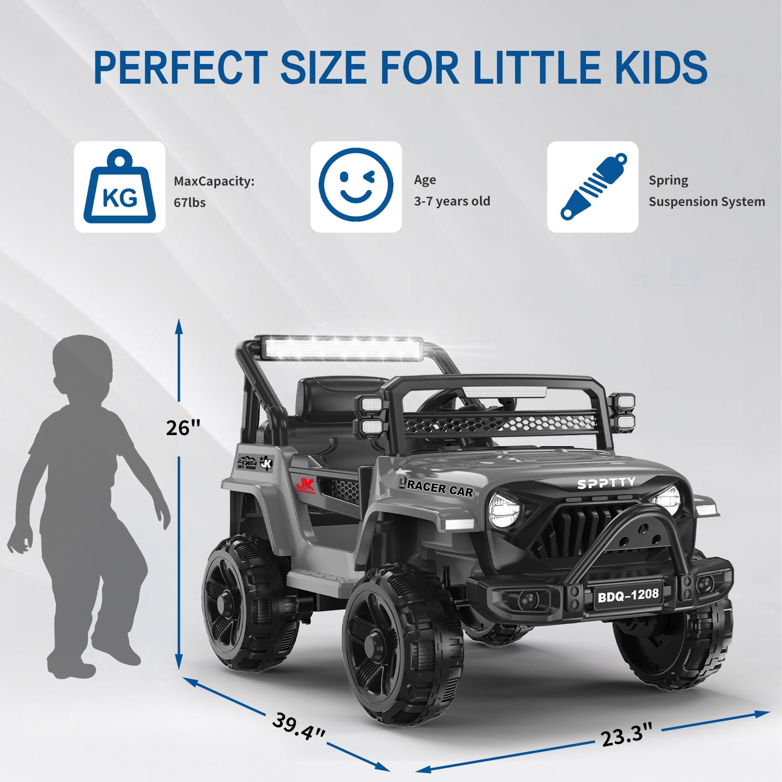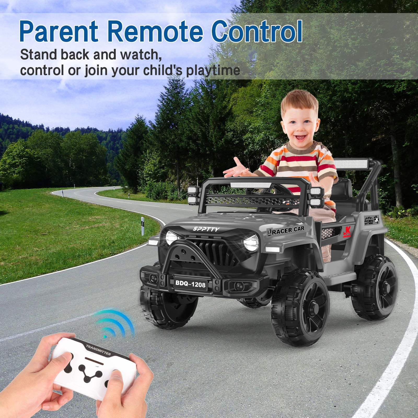 ????RIDE ON CAR FOR KIDS 3-7 YEARS : Play without limits! ride on toys is perfect for your little racers who want to start driving like the grownups do! ????12V POWER WHEELS DESIGN: Fueled by the dynamic 12V battery, our ride on cars redefines fun. Adjustable seatbelt, bright LED headlights, wear resistant wheels,lockable doors, and grid windshield for off-road style, with traction tires to ride on different terrains ????MANUAL AND PARENT CONTROL: Let your child drive manually or use the remote control to safely guide them yourself; remote has forward/reverse controls. enjoy 1-2 hours of play , ensuring unbeatable endurance for limitless adventures ????SAFE & DURABLE: Our ride ons features a four-spring suspension system for stability and comfort. Includes plastic wheels that will never deflate, 3mph max speed for smooth rides on outdoor adventures ????CONNECT YOUR MUSIC: A built-in AUX & USB outlet allows kids to plug in media devices to drive while jamming to their own selection of music,Enjoy diverse tunes through Bluetooth pairing with your smart devices – favorites, educational melodies, or catchy nursery rhymes. Question 1:Does it need to be assembled? And how to assemble it? Answer : Yes, but it’s easy. about 30 minutes .Here are the installation video instructions . Question 2:Doses it come with the battery and charger ? Answer :Yes the battery is installed in the car and you only need to connect two connectors for it to be operational (have to charge 12hrs). The controller uses 2 AAA batteries and it doesn’t come with those. Question 3:How old is this a gift for ? Answer :Our ride on toys car are suitable for children from 3 to 7 years old and can hold up to 67 pounds Question 4:Do you have to use the remote? Can it be driven by the child with out connecting the remote? Answer :Yes,You can use the remote but the child can drive it without it.If you choose to use the remote it will override whatever the child is doing. Question 1:Does it need to be assembled? And how to assemble it? Answer : Yes, but it’s easy. about 30 minutes .Here are the installation video instructions . Question 2:Doses it come with the battery and charger ? Answer :Yes the battery is installed in the car and you only need to connect two connectors for it to be operational (have to charge 12hrs). The controller uses 2 AAA batteries and it doesn’t come with those. Question 3:How old is this a gift for ? Answer :Our ride on toys car are suitable for children from 3 to 7 years old and can hold up to 67 pounds Question 4:Do you have to use the remote? Can it be driven by the child with out connecting the remote? Answer :Yes,You can use the remote but the child can drive it without it.If you choose to use the remote it will override whatever the child is doing.