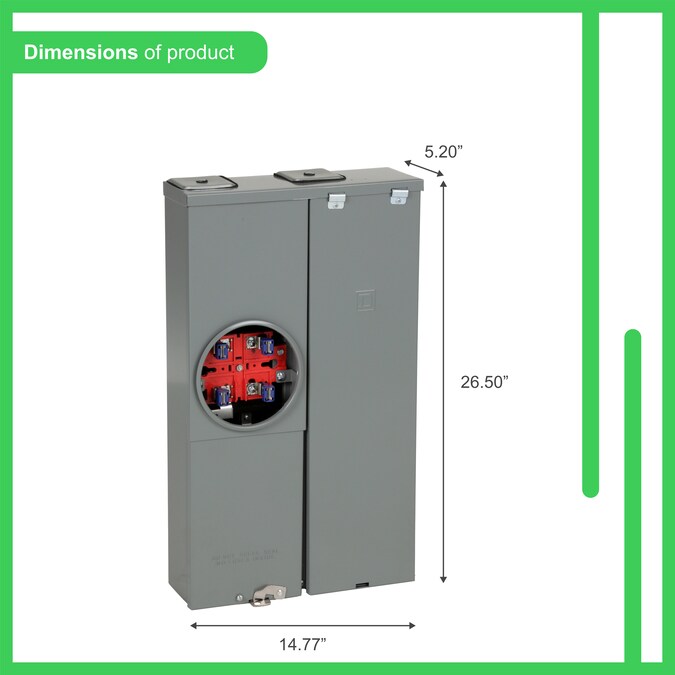 The Square D by Schneider Electric 125 Amp 8-Space 8-Circuit Outdoor Combination Meter Socket and Main Lug Load Center is suitable for use as a combination service entrance device (CSED). This unit is ANSI certified and UL listed with a maximum 10,000 AIR. The combination service entrance device features a Ring-type meter cover with a single-phase, 4-jaw meter socket. It is suitable for overhead or underground service applications. Meets EUSERC specifications surface mount. This CSED is built with a plated, aluminum bus bar that is tested and listed only for homeline circuit breakers. Homeline CSEDs are designed for the value-minded contractors, remodelers, builders and homeowners. Homeline CSEDs are engineered for fast installation and wire savings.