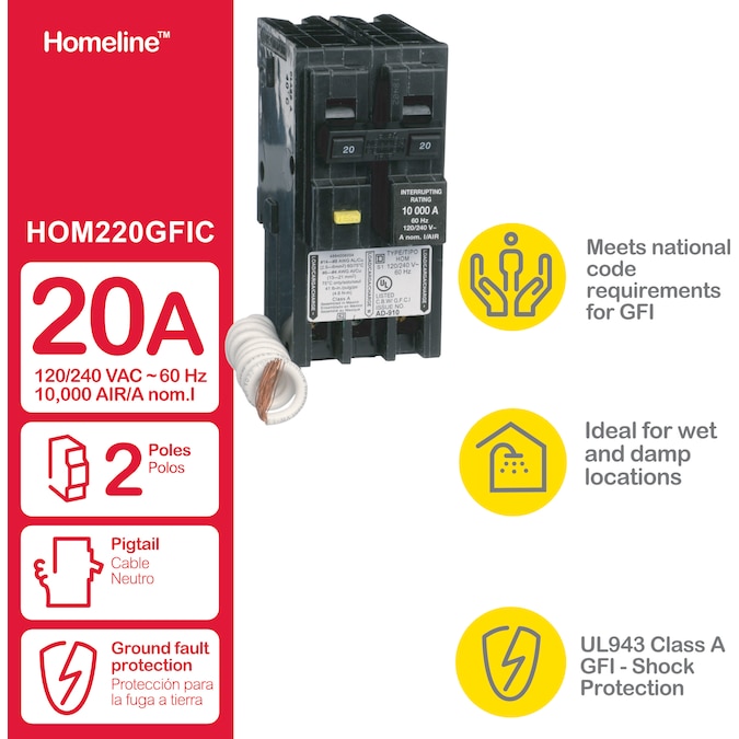 Square D Homeline 20-amp 2-Pole GFCI Circuit Breaker