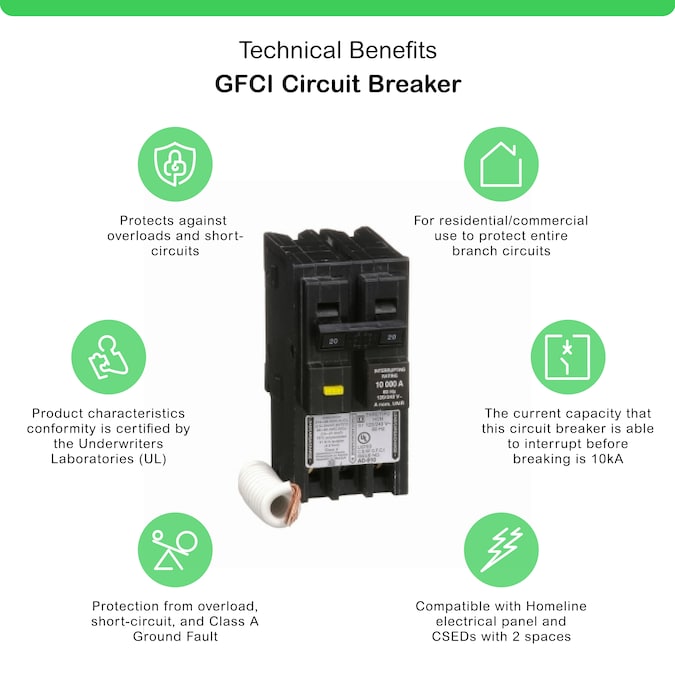 - When a Homeline circuit breaker trips, the handle snaps to a midpoint position between “OFF” and “ON” to easily identify the tripped breaker