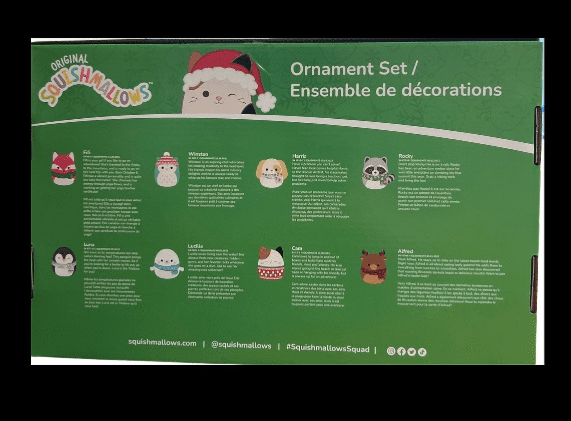 Transform your holiday season into a huggable wonderland with this Squishmallows 8-Pack Ornaments! These delightful 4-inch plush ornaments are not just decorations; they’re the perfect blend of charm and festive cheer. Each ornament features a unique Squishmallows character, adding a touch of whimsy to your Christmas tree or holiday displays. Squishmallows are cute, cuddly, and ready to join your squad. Made with super soft, marshmallow-like material, Squishmallows offer comfort, support and warmth as friends, couch companions, pillow pals, bedtime buddies and travel teammates. With more than 475 Squishmallows characters to collect, theres a Squishmallows for everyone. Each Squishmallows has its own unique name and storyline to add to the fun. Who will join your squad next?