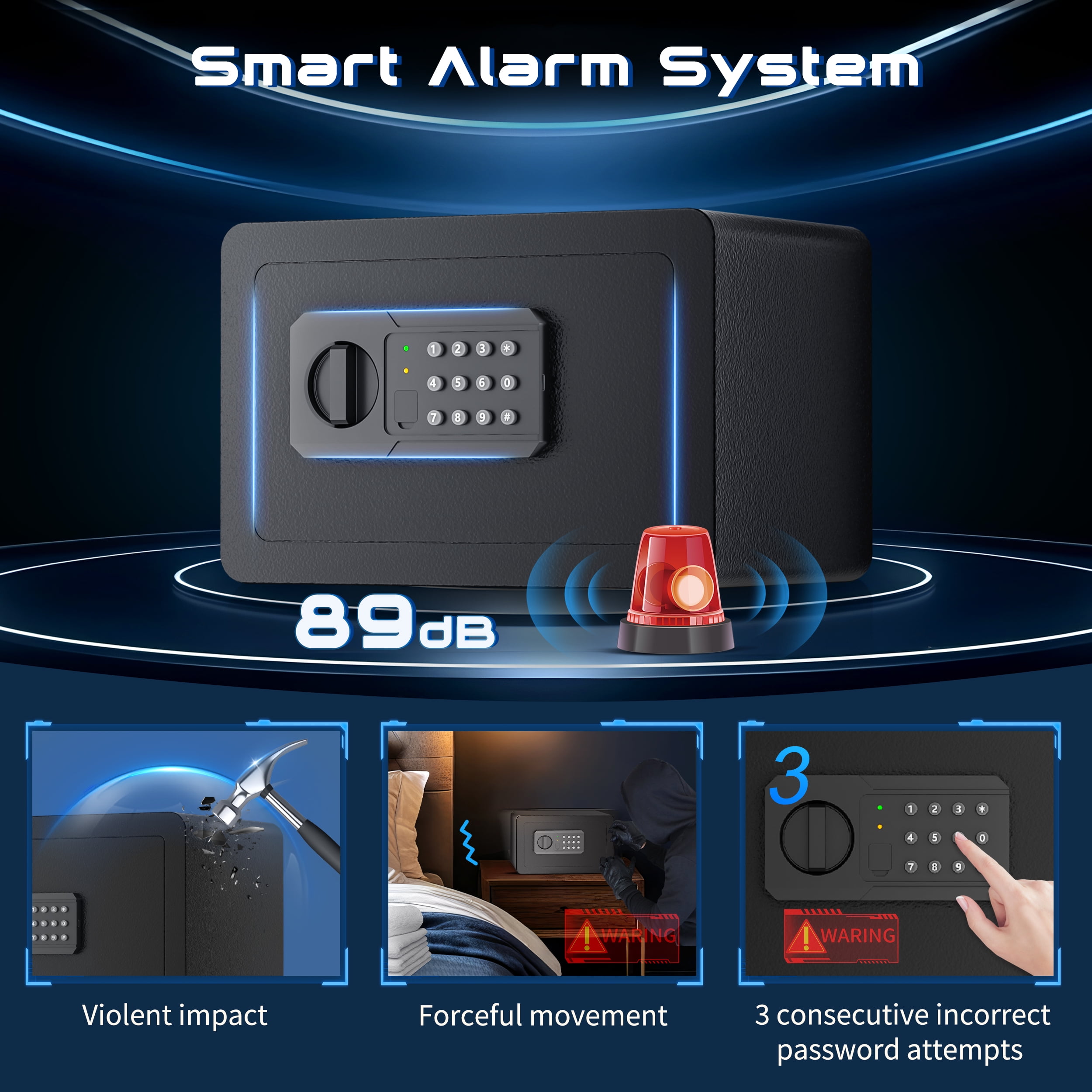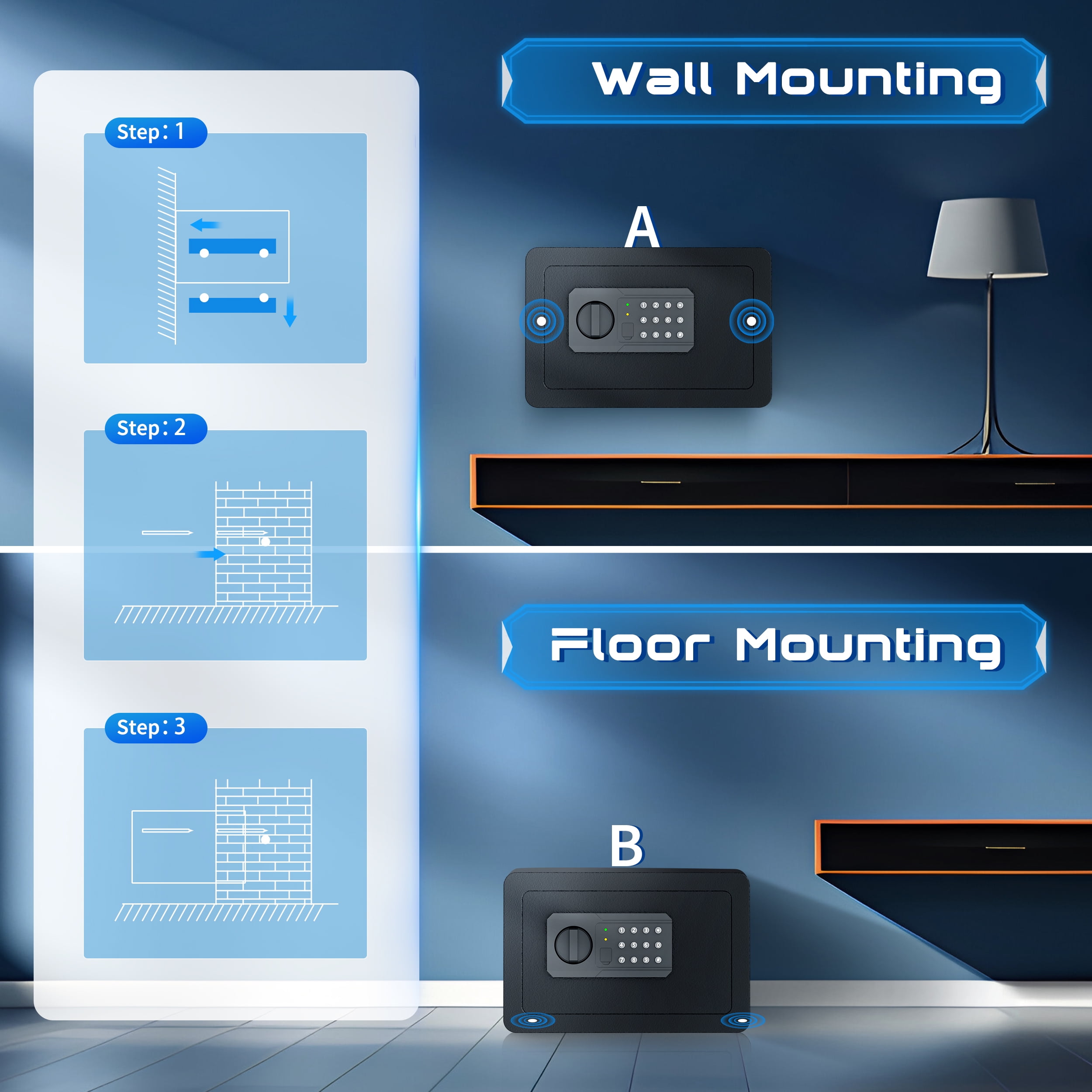 ▶ KEY FEATURES: ????【High-density alloy locking bolts】: Carefully selected materials. Enhanced drill and pry resistance. ????【Dual Locking Options】: Enjoy the convenience of two unlocking methods: customizable keypad entry with 3-8 digit password options, or traditional key access. Plus, receive a complimentary external emergency battery box for continued access even if the main batteries fail. ????【Advanced Security Alerts】: Stay protected with our comprehensive security features 1.Automatic lockout for 5 minutes after three consecutive incorrect password attempts, accompanied by a 5-minute alarm. 2.Activate vibration alerts by long-pressing “#” or “*” for immediate notification of any unauthorized movement or impact on the safe. ????【Durable Construction and Anti-Theft Design】: Built from solid steel with a 25mm locking bolt and a 50mm thick door, our safe is engineered to resist theft, tampering, and drilling. ????【Smart internal design】: Removable partition allows efficient storage of various items. ????【Additional Accessories】: Customize your security setup with our optional accessories, including a $20 fireproof and waterproof document bag, perfectly sized for A4 documents. ????【Secure Installation】: Our comprehensive installation kit includes all necessary hardware for secure mounting in concealed spaces such as walls or closets using expansion screws. ????【EASY TO INSTALLATION】: This personal safe box has pre-drilled mounting holes in the back and expansion screws are included in the accessory box. You can fix it with the wall or cabinet. ??【365 Day Free Key Replacement】: If you lose your key, we can send you a new one. We have a 24-hour online customer service. If you have any questions or have any questions, please contact me at the first time. ▶ SPECIFICATIONS: Brand: SRWTRCHRY Color: Black Material: Alloy Steel Battery Type: 4 x AAA Batteries (Batteries Not Included) ▶ Package Include:: 1*Electronic Digital Safe Box 4*Expansion screw 2*Emergency key 1*Fireproof waterproof bag 1*Manual