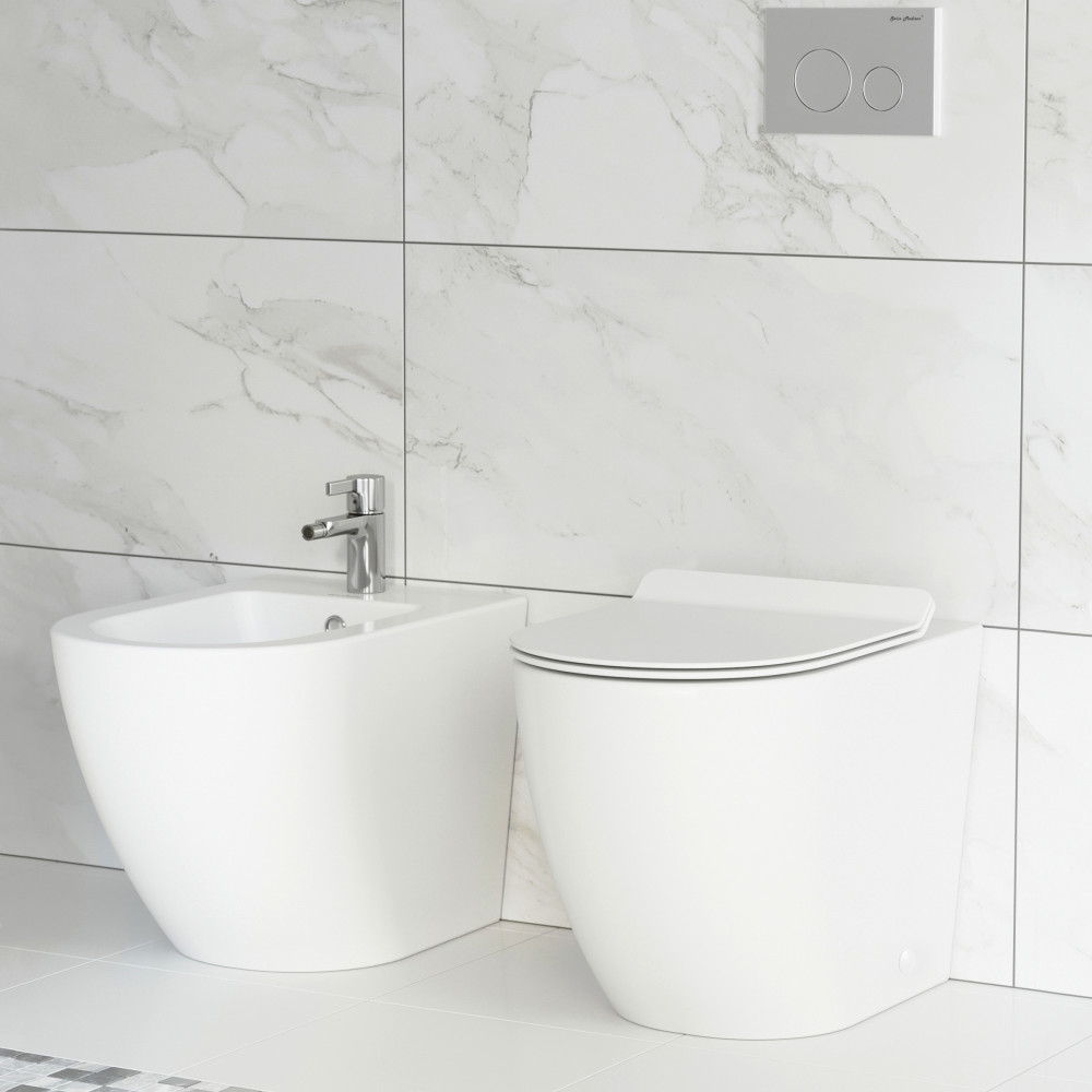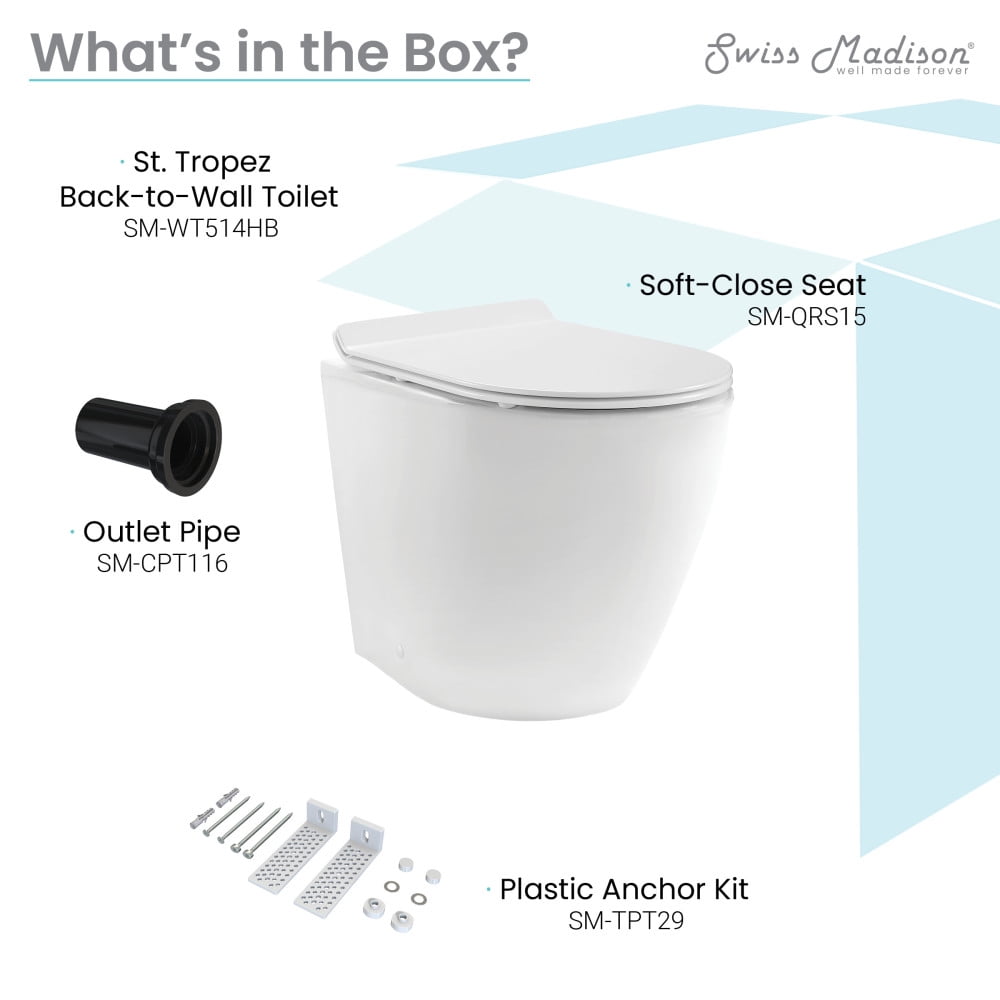Space Saving: With the water tank in the wall, the Back-to-Wall toilet saves space in your bathroom and is aesthetically pleasing in design. Standard Elongated Bowl: Elongated bowl provides extra room and comfort. Durable Non-Porous Scratch Resistant Ceramic: Developed from ceramic, that is scratch-resistant and non-porous, providing a durable and reliable option that can withstand routine use. Soft Close and Quick Release Seat: Provides a silent and gentle closing mechanism for added convenience and safety. With just the push of a button, the seat detaches completely for a thorough cleaning. Standard Height: Between 15-17 inches, the standard height toilet is designed with ergonomic considerations, offering optimal comfort to users of all ages and body types. Required Components: Combined with the In-Wall Carrier tank system and the Actuator flush button; Sold separately. Collection: Part of the St. Tropez Collection, explore additional products in this collection to complete the room.