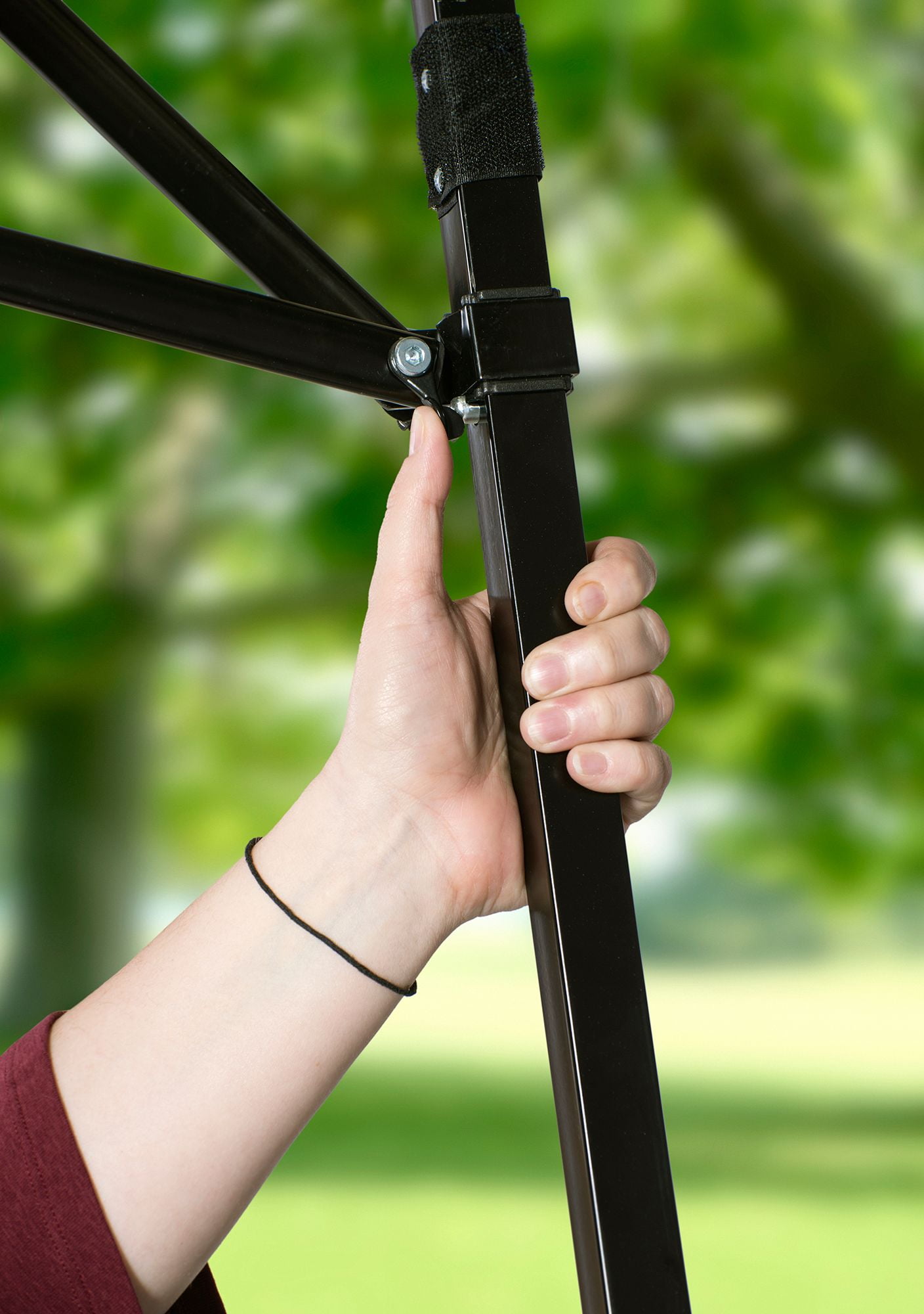 Shade Tech affordable, quality canopy offers reliable shade where you need it with this reliable slant leg pop-up canopy. Features 3 height positions for variations, a rigid eave construction and shade up to 64 sq. ft. Our Aluminex fabric offer 99% UV protection and the push button sliders with padded levers make this canopy easy to assemble.
