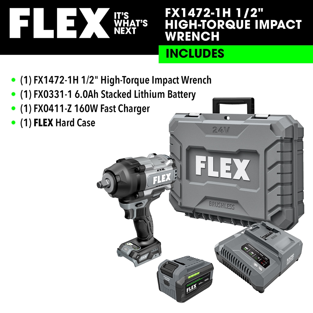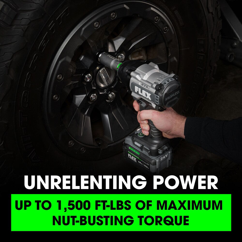 Rusty bolts and over-tightened lug nuts don’t stand a chance against the unrelenting power of the FLEX 24V ½” High-Torque Impact Wrench, which delivers up to 1,500 foot-pounds of maximum torque. Dampeners deliver vibration suppression that isolates you and the tool from vibration for reduced fatigue and maximum control. The cordless impact wrench features two auto control modes: Bolt Auto Stop mode prevents over-tightening, breaking, or stripping, while Bolt Removal Mode stops the tool when the bolt is loosened. A multi-light LED delivers bright illumination in dark areas. This high-torque impact wrench dominates with the FLEX Stacked Lithium Advantage: unmatched battery power, runtime, and charging capability. The kit includes the ½-inch impact wrench, 6.0Ah Stacked Lithium battery, and a 280W Rapid Charger. It’s all protected by the FLEX Limited Lifetime Warranty when registered within 30 days of purchase at registermyFLEX.com through December 31, 2025.