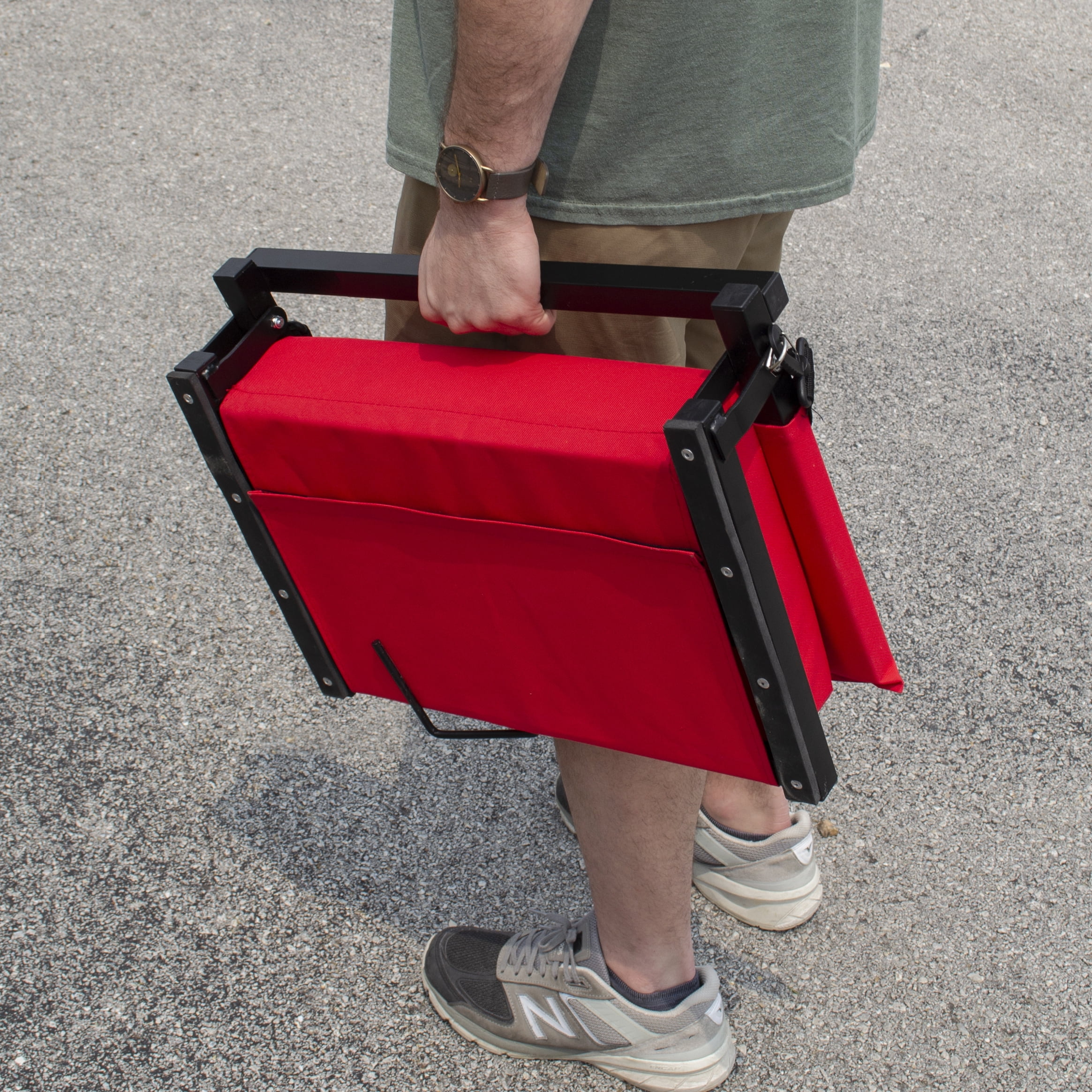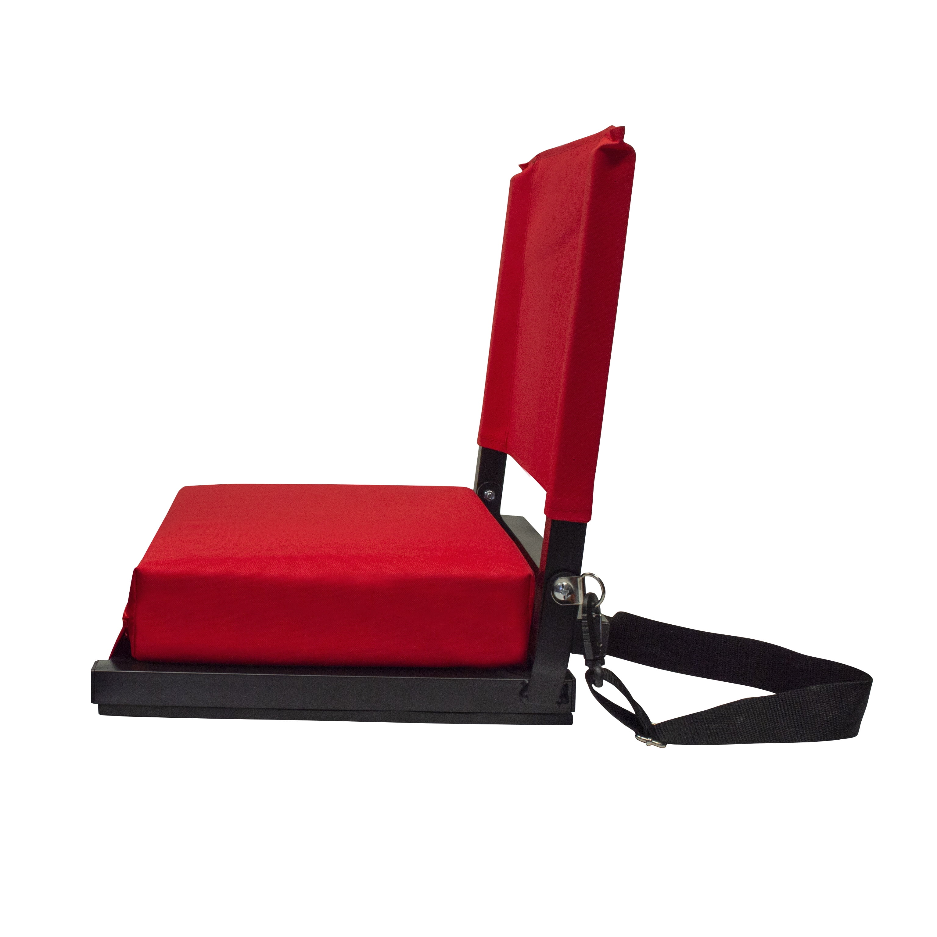 LARGE ULTRA-COMFORTABLE SEAT & BACK SUPPORT: 3” thick Ultra-Padded seat provides all day comfort on any surface for dedicated fans while watching your favorite sporting events PORTABLE & EASY TO CARRY: Folds in half with a built in handle and adjustable shoulder strap makes it easy to transport to and from each event QUALITY & DURABILITY: These stadium chairs are constructed with a quality steel frame with a powder coated finish made for years of comfort