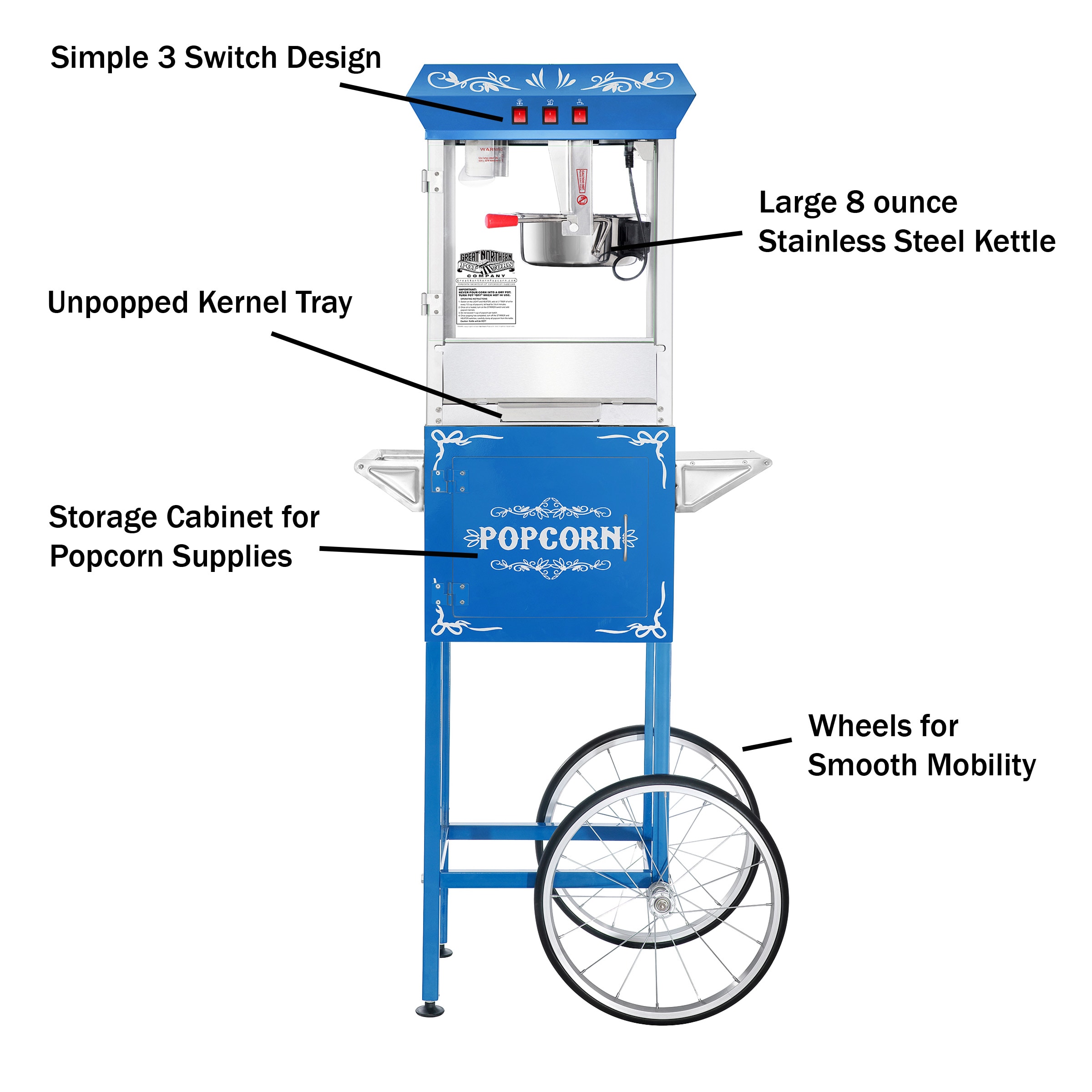 Package Contents: 6098 Great Northern Popcorn Blue Foundation Popcorn Popper Machine Cart, 8 Ounce