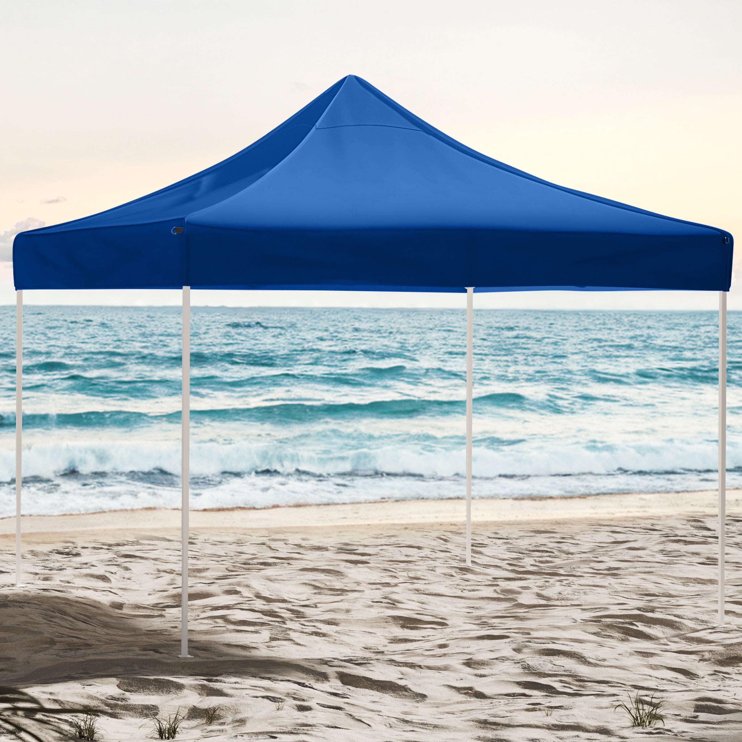Stalwart 10×10 ft Pop Up Canopy Tent – UPF30 Beach Tent Sun Shelter, Blue