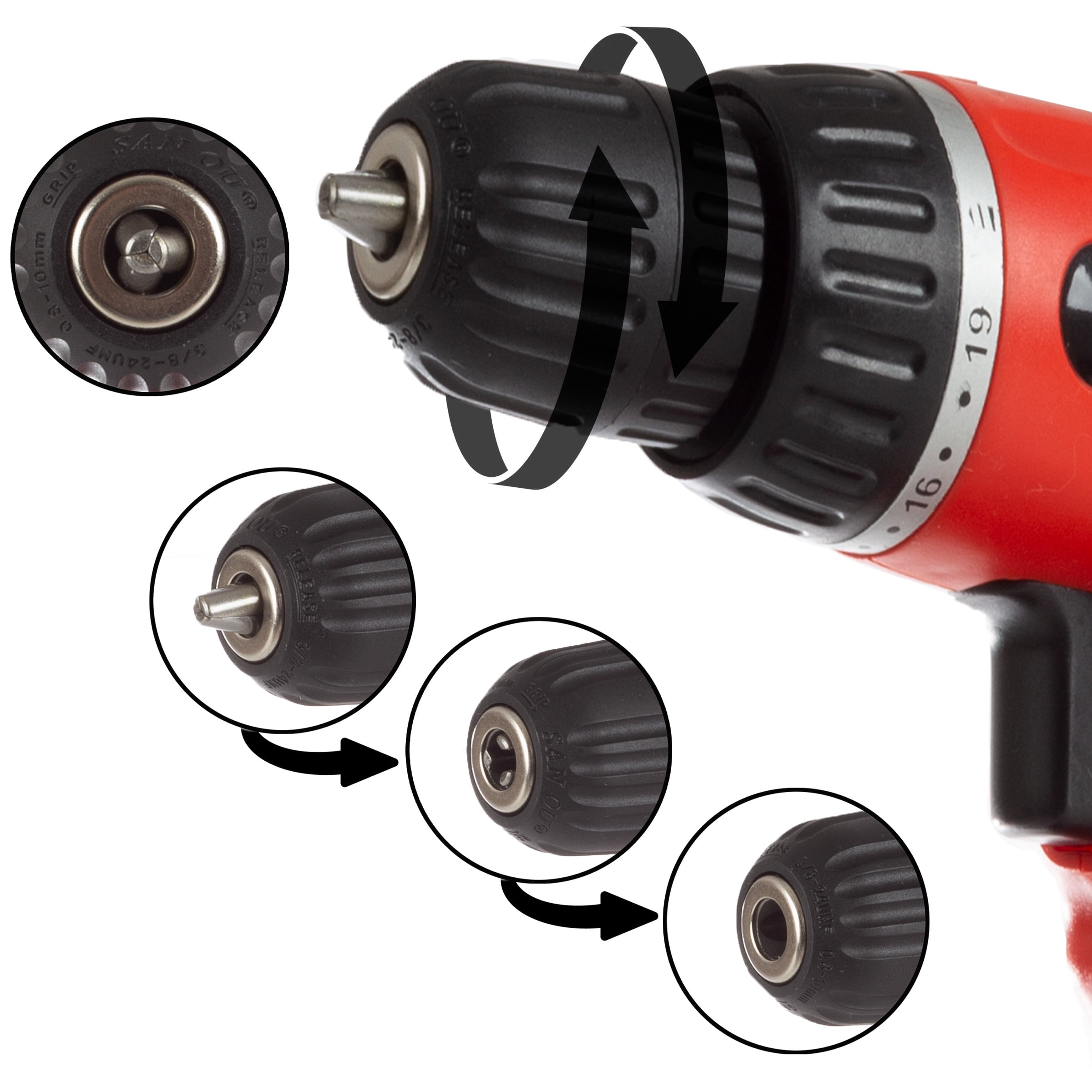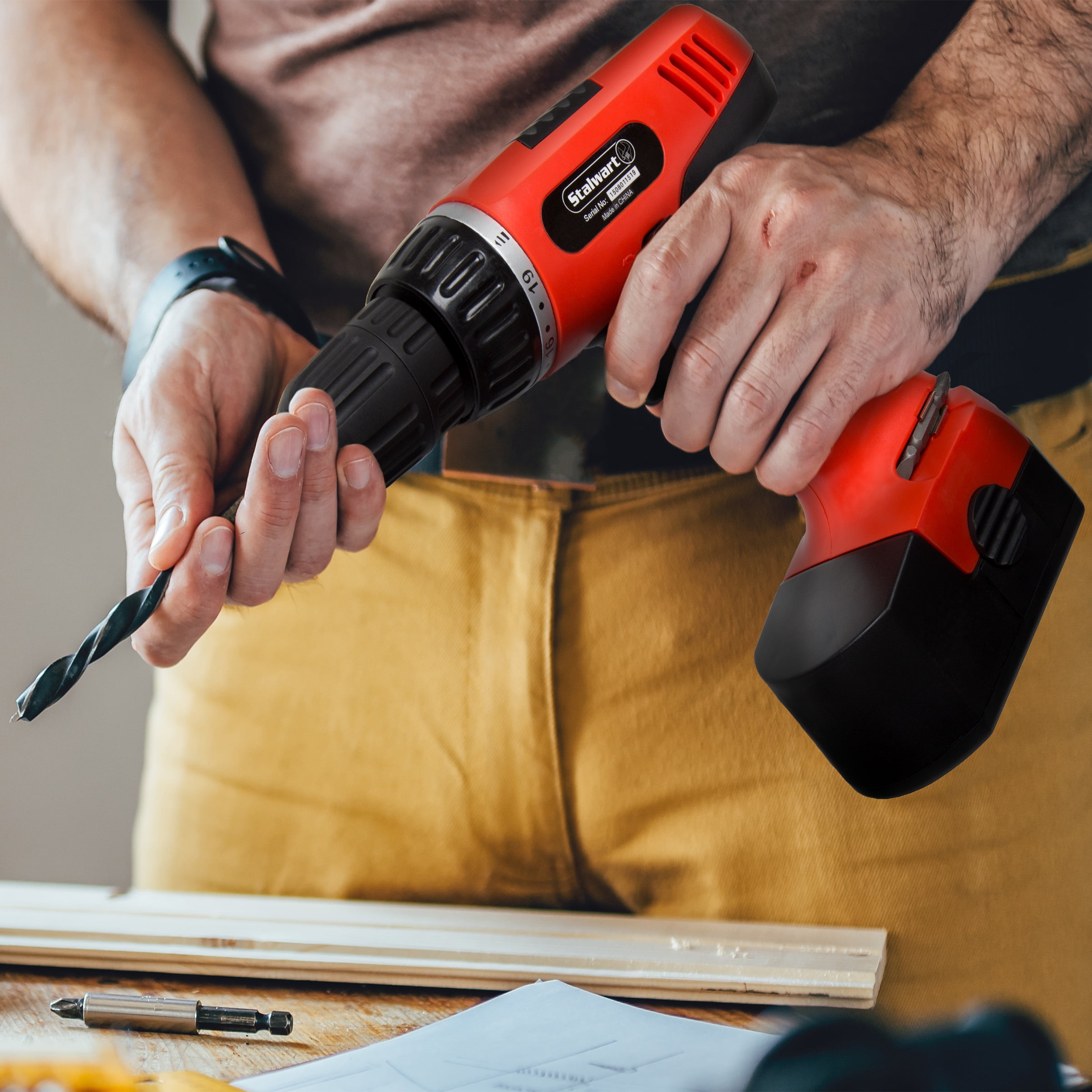 Expand your collection of hand tools and tackle almost any home improvement or repair job with the versatile Stalwart 18V Cordless Drill Set With Carrying Case. This 78-piece power drill kit includes bits, drivers, sockets, a flashlight, and a 19-torque-setting hand drill that can be operated in forward or reverse mode, giving you exact control over the amount of drill power to suit each task. The drill set’s included carrying case features dedicated slots for each piece, ensuring that everything you need is always within reach and nothing goes missing.