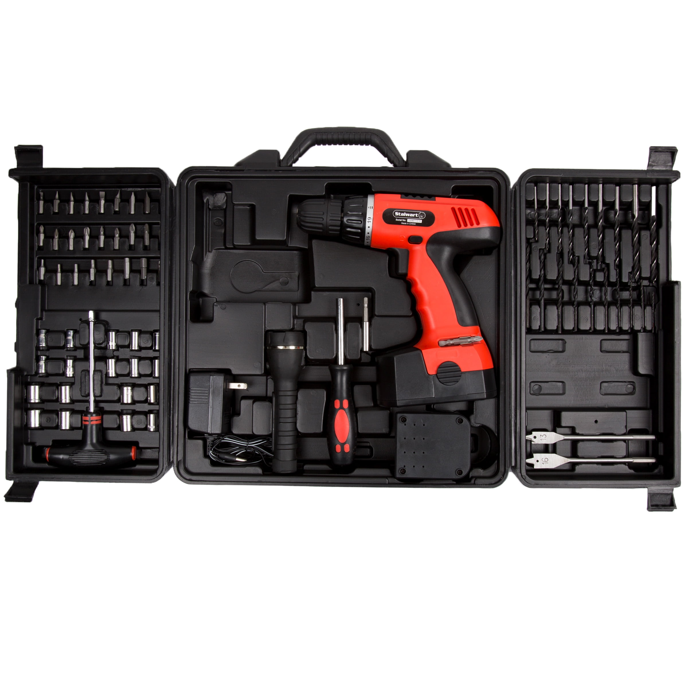 Stalwart 78PC 18V Cordless Drill Set with Bits, Sockets, and Drivers (Red)