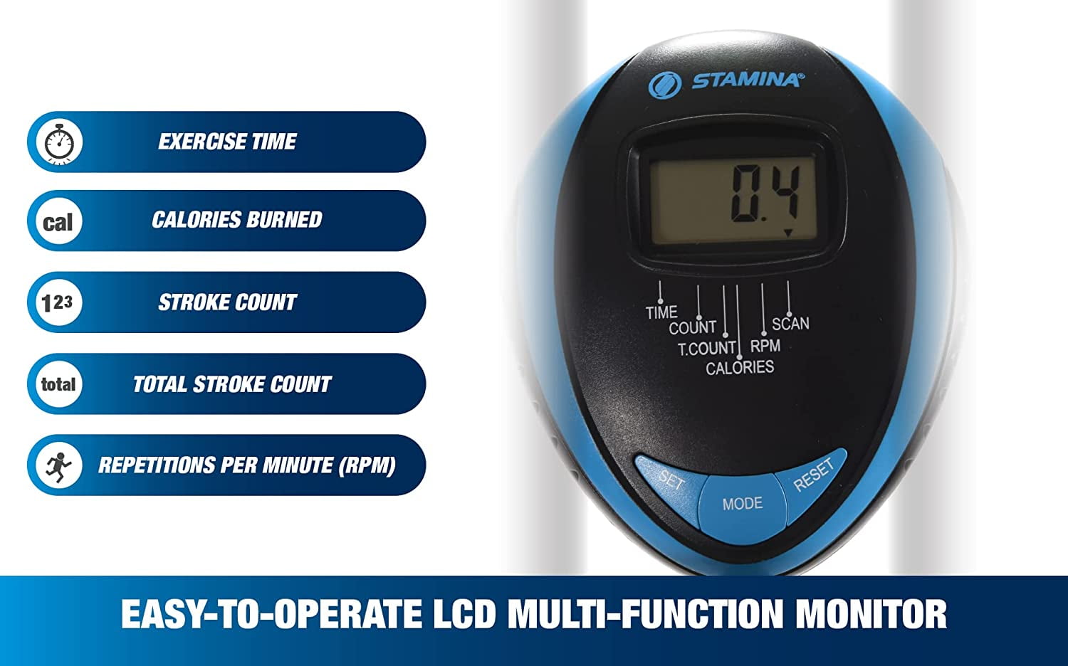 Improve your cardio and strengthen muscle in a new, accessible way with the Stamina EasyRow, the rowing machine ideal for users of all mobility levels. The EasyRow is easy to get on and off of due to the unique step-thru design and comes outfitted with several elements to guarantee a comfortable workout for people of all ages. EasyRow provides a free online instructional video for proper form, adjustable resistance levels, and real-time monitoring via the LCD with SCAN mode. Internet access is required for the instructional video. It comes with its padded backrest, which, along with a comfortable cushioned seat, encourages proper form and ensures a relaxing experience with every stroke. The elongated and heavily angled rail also facilitates a smoother return, while textured footplates and adjustable straps keep your feet stable. Finally, generously padded handles provide a comfortable and practical rowing motion. After rowing, use the built-in wheels to move the EasyRow to storage. Offers complimentary access to the muuv app, an innovative audio coaching app encouraging you to achieve 500-plus minutes of balanced exercise each month. The app provides personalized, progressive, enjoyable coaching, a follow-along assembly video, equipment-specific workouts, and ad-free music from iHeartRadio. You can download the muuv app from the Apple App Store or Google Play Store. Realize the cardiovascular benefits of rowing in a design ideal for all mobility levels with the Stamina EasyRow.
