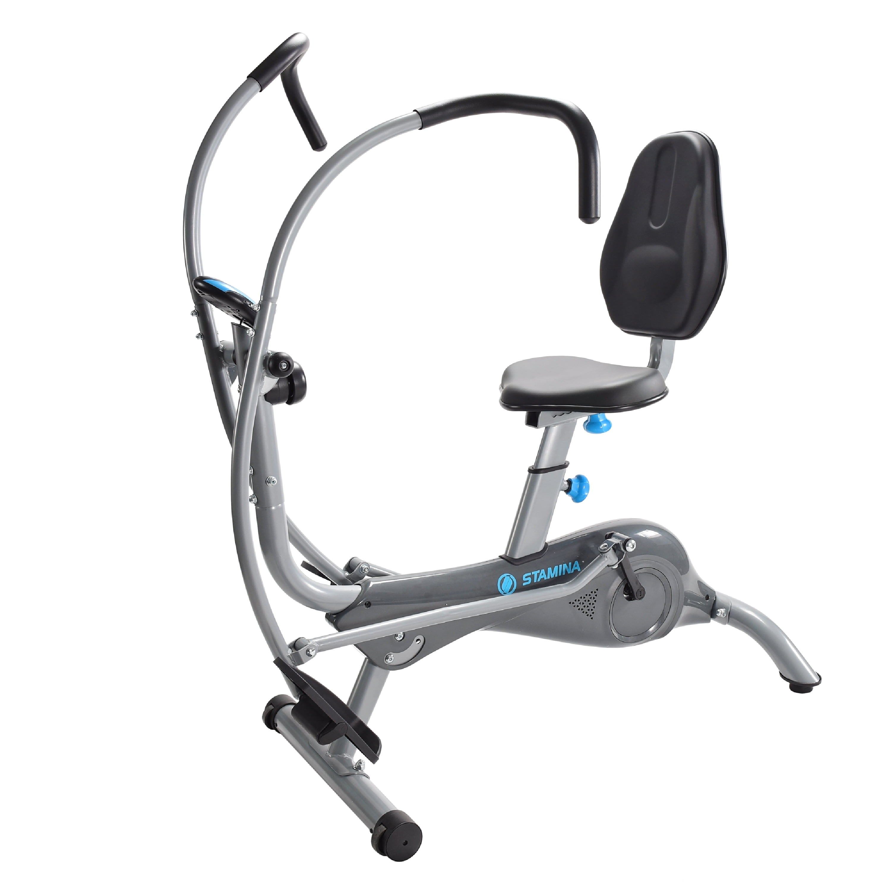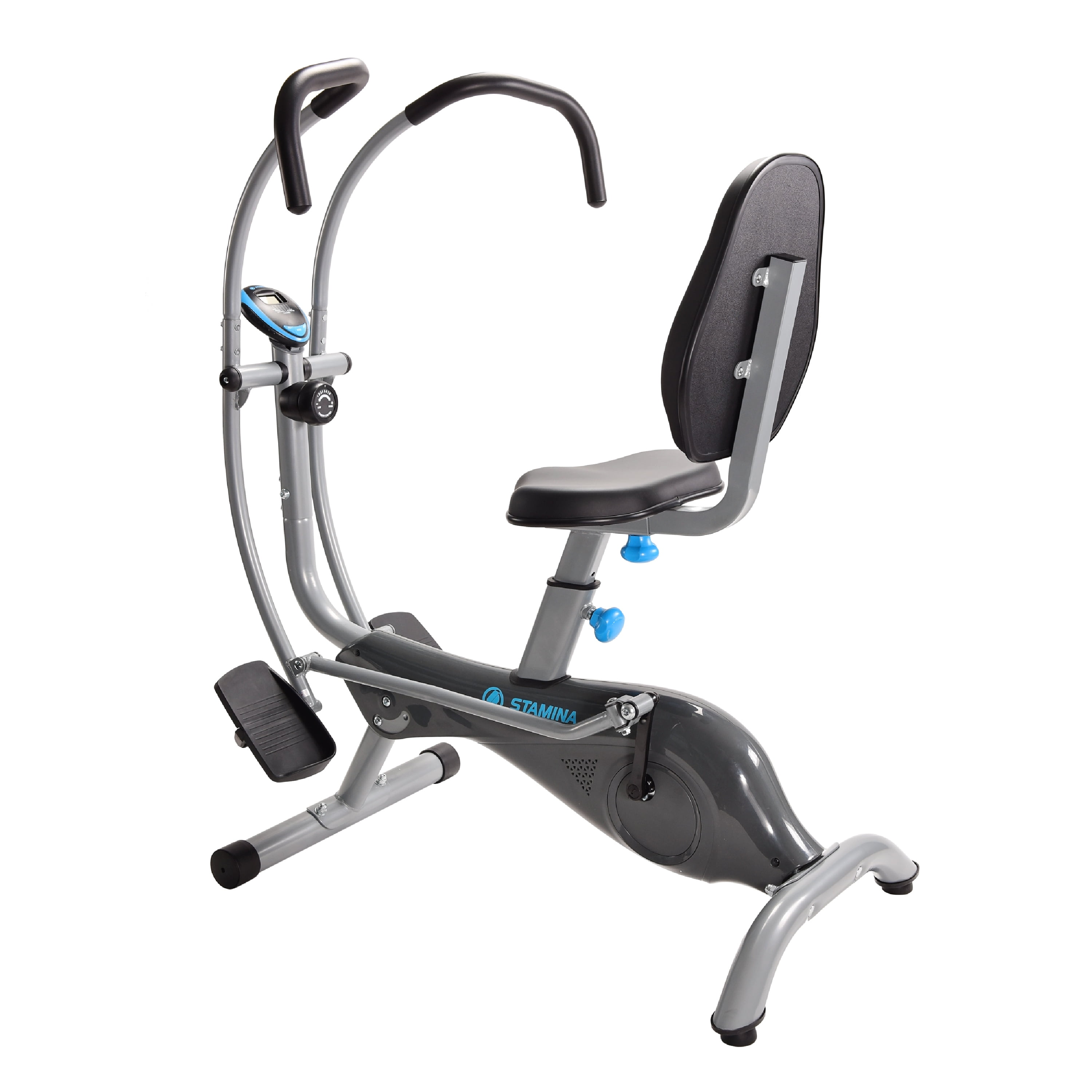 The Stamina Active Aging Easy Step provides a simple outlet for low-impact cardio that’s ideal for users of all mobility levels. The Stamina Easy Step was engineered with your joints in mind – it’s designed to provide an efficient yet gentle form of exercise. It’s also easy to get on and off of thanks to a user-friendly design. Take the Next Step with Easy Step Learn proper form and get the most out of your Easy Step by following along with a free, online instructional video included with purchase*. You can easily adjust the magnetic resistance on the Easy Step by turning the dial. To track metrics during your workout, refer to the LCD monitor to see your speed, distance, calories burned, and total distance. *Internet access required to view the instructional video. Lasting Comfort You Desire The padded handlebars offer a wide range of motion as you step, and allow for multiple grip positions depending on your preference. Textured pedals keep you stable and aligned during exercise. Lastly, the adjustable, cushioned seat and backrest provide extended comfort. After you’re done exercising, use built-in wheels to move the Easy Step to storage. For a low-impact way to burn calories, tone muscle, and improve cardiovascular health, look no further than the Stamina Active Aging Easy Step. 250lb. weight limit