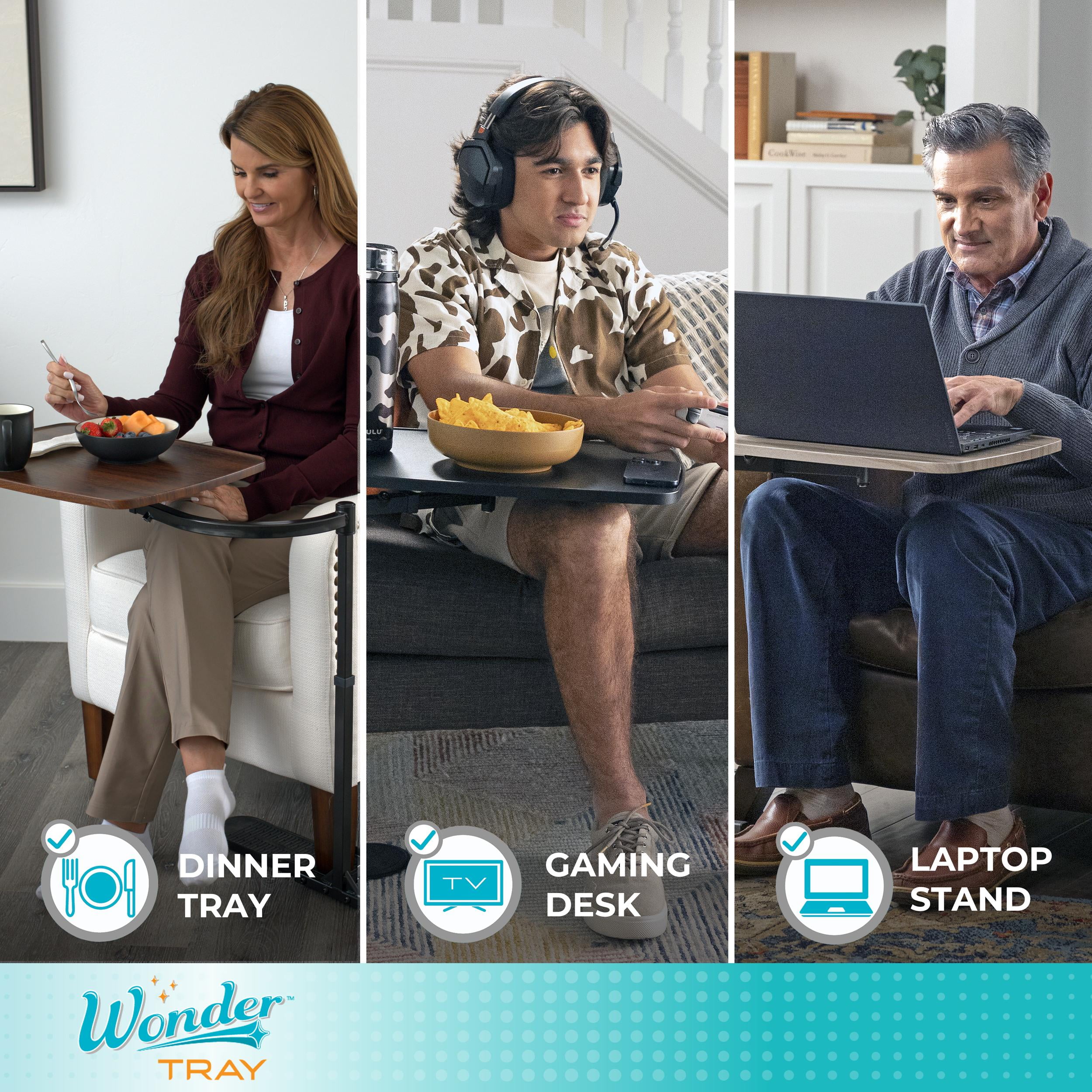 Discover the ultimate in comfort and versatility with the Wonder Tray by Stander, a premier multi-use lap desk designed to meet the needs of seniors, remote workers, gamers, and caregivers. Whether you’re seeking a dedicated home computer desk, a reliable writing surface, or a sturdy laptop stand, the Wonder Tray delivers unparalleled functionality and convenience for seniors, elderly adults, or online students. Offering a generous 20 by 15 inch desktop surface, the portable tv tray is perfect for various activities such as working from home, enjoying meals, or engaging in hobbies. The adjustable curved arm wraps around your armrest, positioning the tray directly in front of you for optimal comfort. The side table supports up to 20 pounds, making it an essential addition to any living room. With a 360-degree swivel table, the Wonder Tray transforms into a TV dinner tray for eating, gaming desk, craft table, or end table with ease. Designed to be compatible with most couches, chairs, lift chairs, and recliners, the base pads adjust from 20 to 32 inches in depth to be customized to most furniture. Tailor the tray to your specific needs with adjustable height from 20 to 30 inches tall. Assembly is tool-free and non-slip, protective rubber base pads help prevent floor scuffs. With a sleek and modern design, the Wonder Tray is available in four color combinations and two different sizes. Enhance your living space with the Wonder Tray by Stander and transform everyday activities into a more comfortable, efficient, and stylish experience. Embrace the perfect blend of functionality and comfort and make your life infinitely easier today!