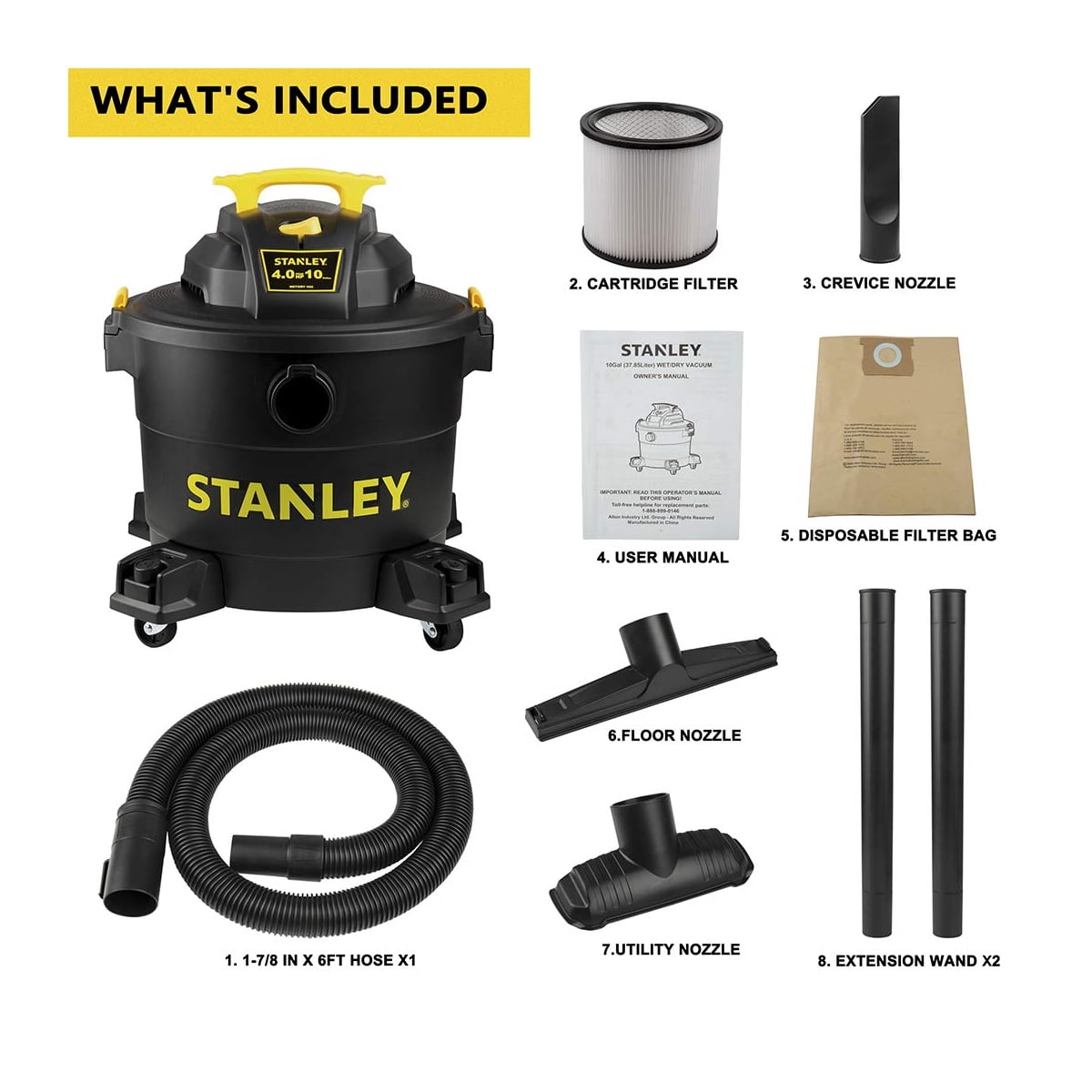 Stanley SL18191P Heavy Duty Portable 10 Gallon Wet Dry Shop Vacuum Cleaner
