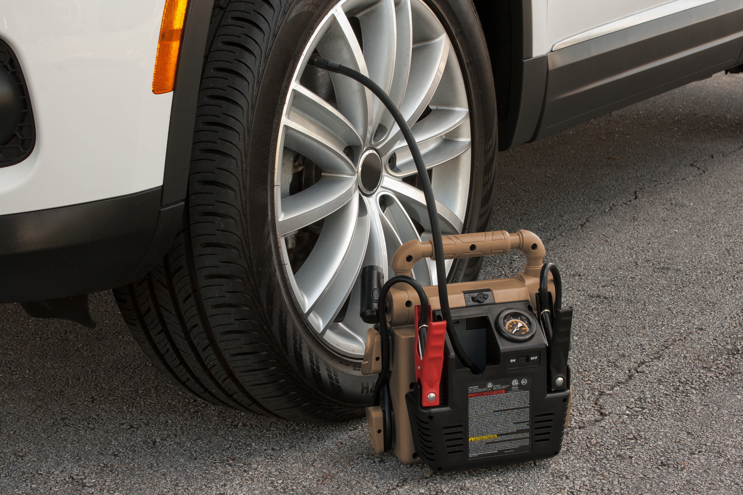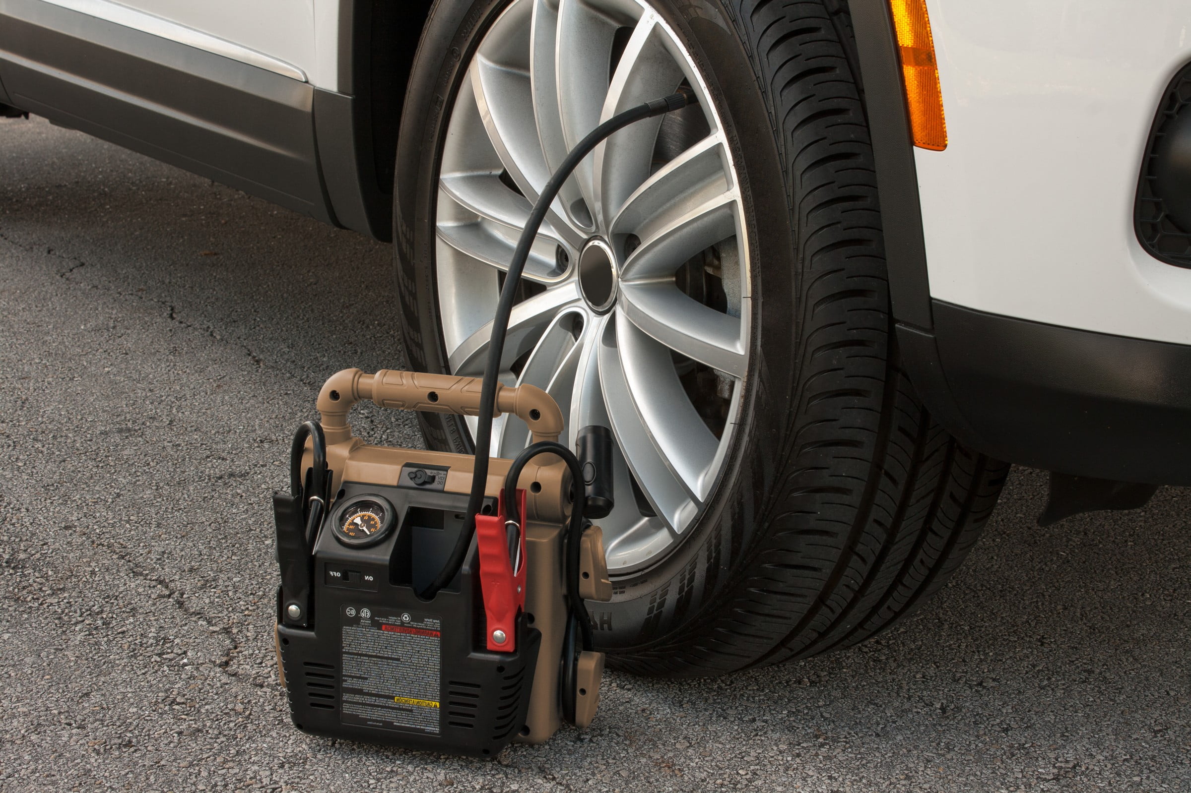 Stanley Fatmax 700 350 Amp Jump Starter With 120 PSI Compressor J7CS Offers a portable, convenient way to jump-start your battery without needing a second vehicle With enough power to start your car, truck, boat, RV or tractor 120 PSI air compressor, LED work light, and multiple 3.1 Amp USB charging outlets Stanley Fatmax jump starter is an ideal automotive power supply for traveling short and long distances Offers both 12-volt and USB outlets to charge personal electronics High-powered LED light that rotates 270 degrees Heavy-duty brass tipped SureFit™ compressor nozzle securely connects to tire valve stems Reverse polarity alarm to alert when there is an improper connection Power and charge indicators All Metal Powder Coated Clamps The STANLEY FATMAX J7CS 700 Peak Amp jump starter/power station is the ultimate all-in-one solution for your mobile power needs. It’s got enough power to instantly fire up your truck, car, motorcycle, SUV, tractor or boat anytime, anywhere. Featuring a 120 psi air compressor with a backlit gauge, you can easily refill tires or inflate toys like basketballs on demand. With triple USB ports providing a combined 3.1 Amps, you can charge multiple portable electronics at once. Built from impact-resistant, injection-molded polymer and packed with useful features like a pivoting LED worklight and built-in reverse polarity alarm, this STANLEY FATMAX J7CS power station makes it even easier to deal with unexpected emergencies even after dark. Rechargeable using a common household extension cord, so you’ll always have portable power on the go!