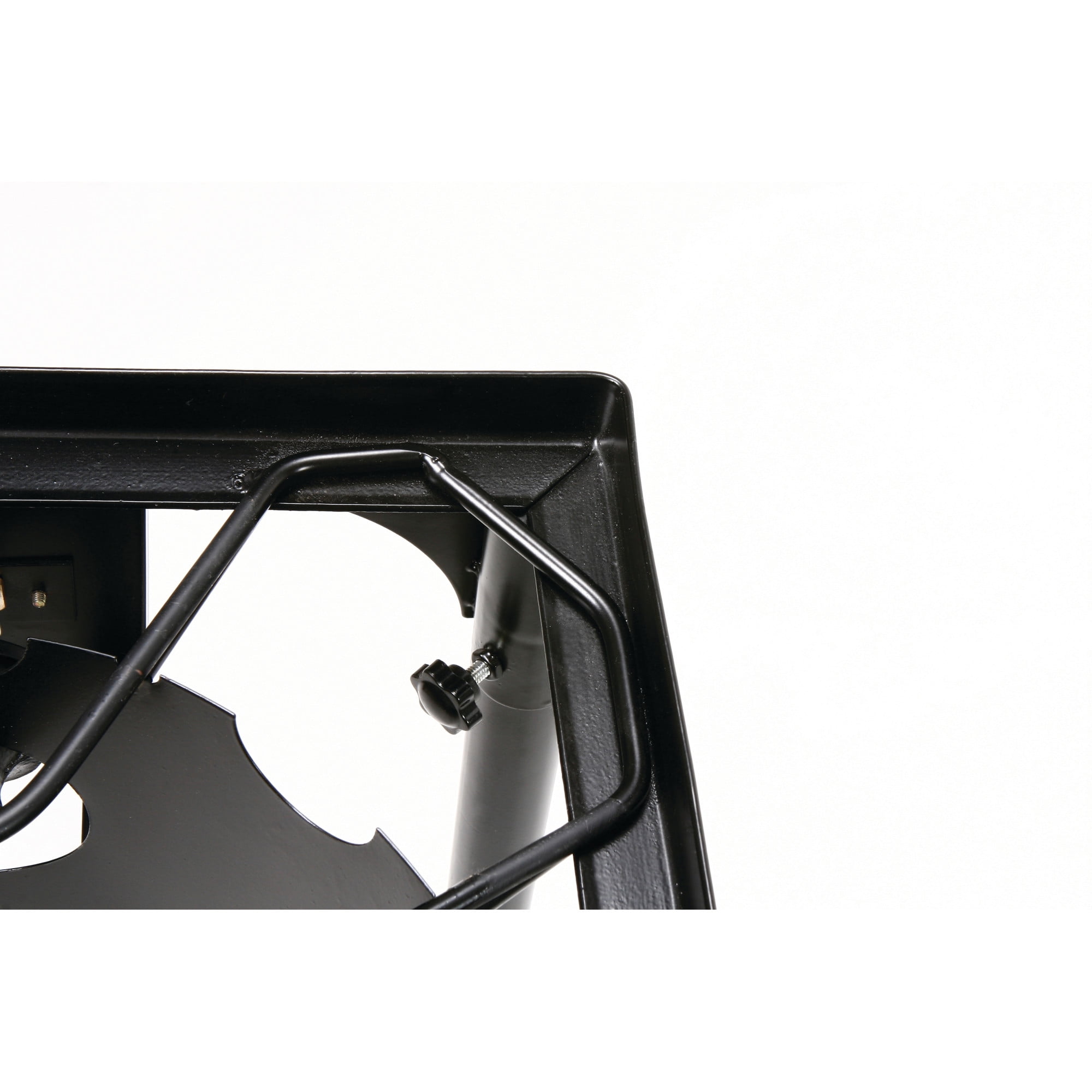 This camp stove is made with solid one piece steel frame construction with non-welded corners. On top it features three 5,000-35,000 B.T.U. premium cast burners with a 3/8″ solid steel cooking grate welded on top for added strength. There are easy to use fuel/air mixture levers for optimum cooking performance. Includes solid brass fuel valves for durability and smooth operation. Heavy duty hose and regulator included. Detachable legs fit snugly into steel support tubes at each corner. Operates for up to 15 hours with a 20 lb. tank (not included).