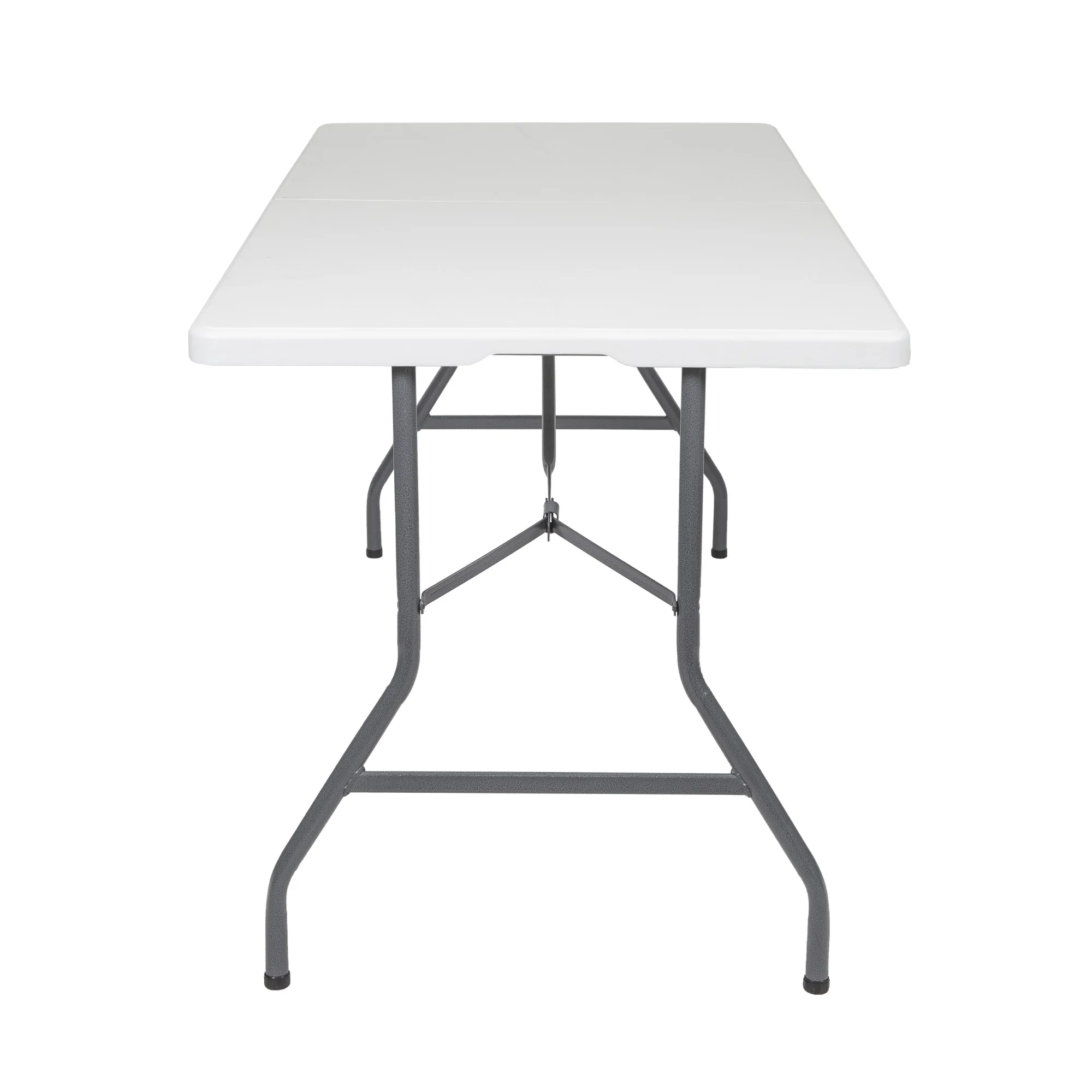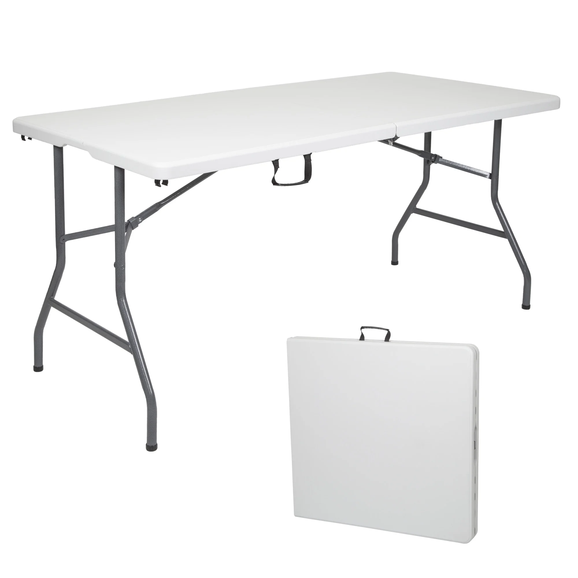 Stansport Camping Table, White: Heavy duty HDPE construction Sturdy folding legs with gravity lock ring Safety lock at center of table Easy set-up; Great for camping or tailgating Legs fold into base and table then folds in half for portability and storage Attached carry handle 59.8″ L x 29.1″ W x 29.1″ H Color: White