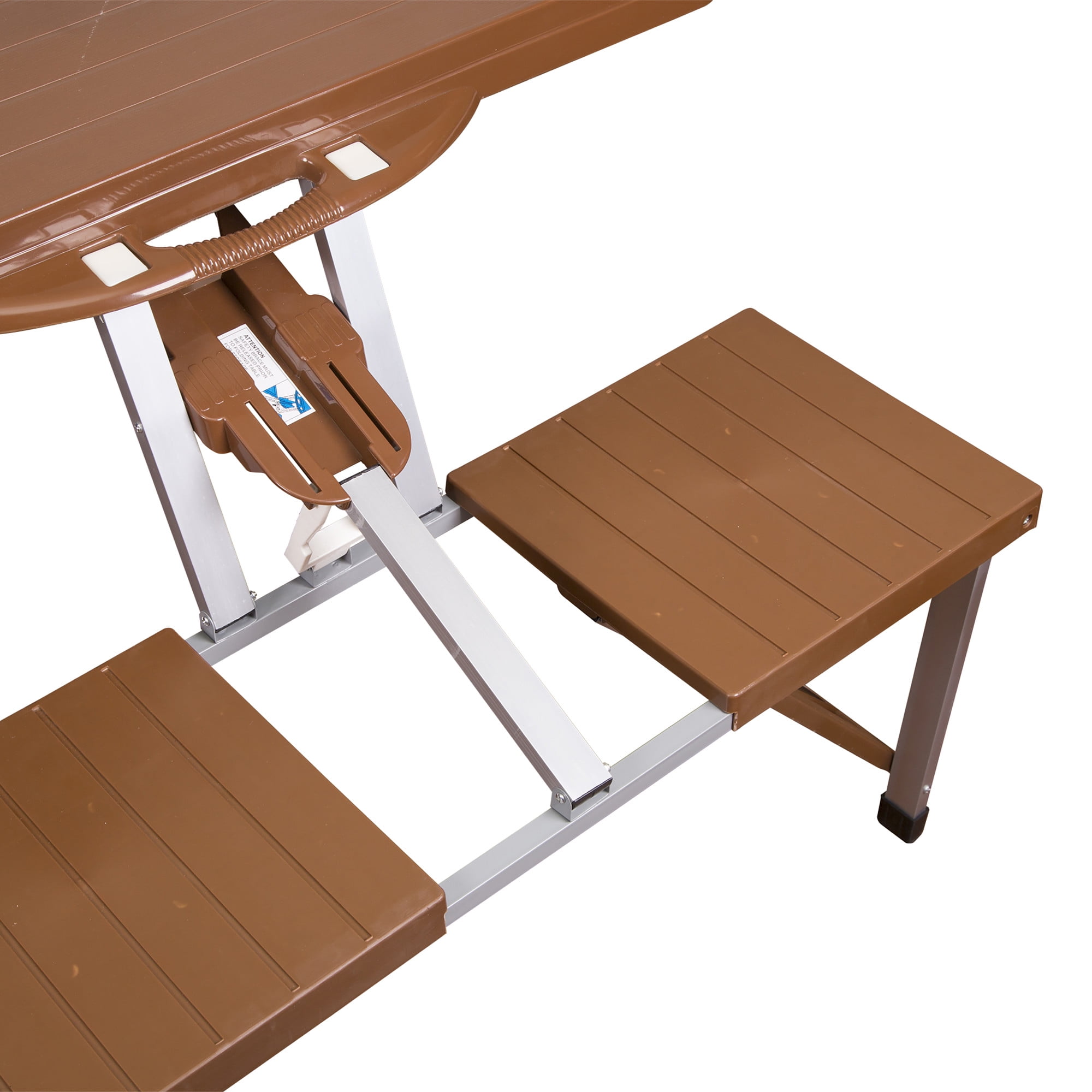 Sturdy anodized, locking, aluminum frame construction Heavy-duty, high impact plastic tabletop 56” diameter umbrella, adjustable up to 75” high Umbrella heights adjusts with a convenient push button lock Umbrella provides shade and protects against UV rays