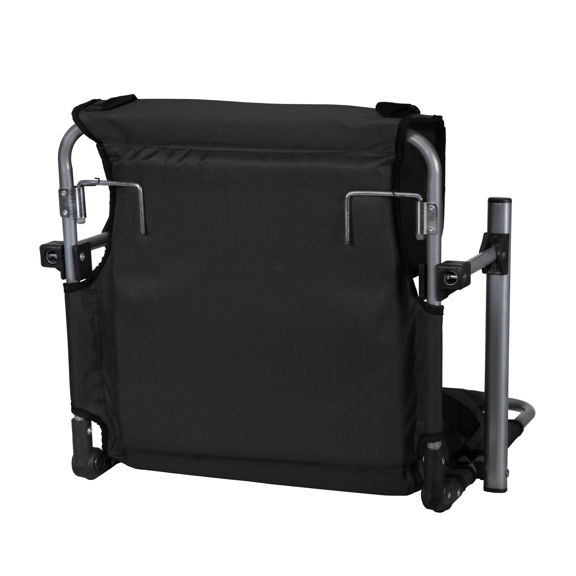 Our Folding Stadium Seat with Arms has a padded seat and backrest that can transform a hard bleacher into a soft place to sit. Features an adjustable shoulder strap for portability, steel tubular-frame for strength and durability, and a lower pocket and large storage pocket on the backrest that is ideal for holding larger materials. Collapsible design with steel hooks on the bottom that can securely attach the seat to all types of bleachers.