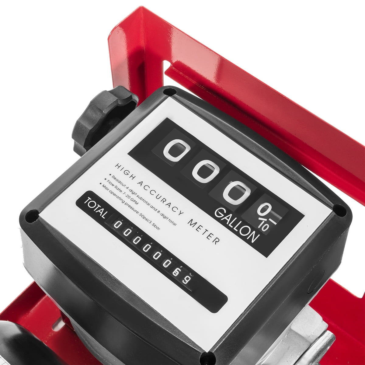 Fast flow rate of 16 gallons per minute (60 liters per minute) for speedy fuel transfers. Maximum working pressure of 50psi/3 Bar ensures consistent flow. Voltage: 110V 60Hz Power: 550W Made from heavy-duty iron to ensure durability and a long service lifespan. Cast iron pump casing for added strength and resistance to wear. Built-in meter with large digits for easy reading and precise fueling data. Self-priming rotary vane pump allows for quick operation. Compact, lightweight build makes installation hassle-free.