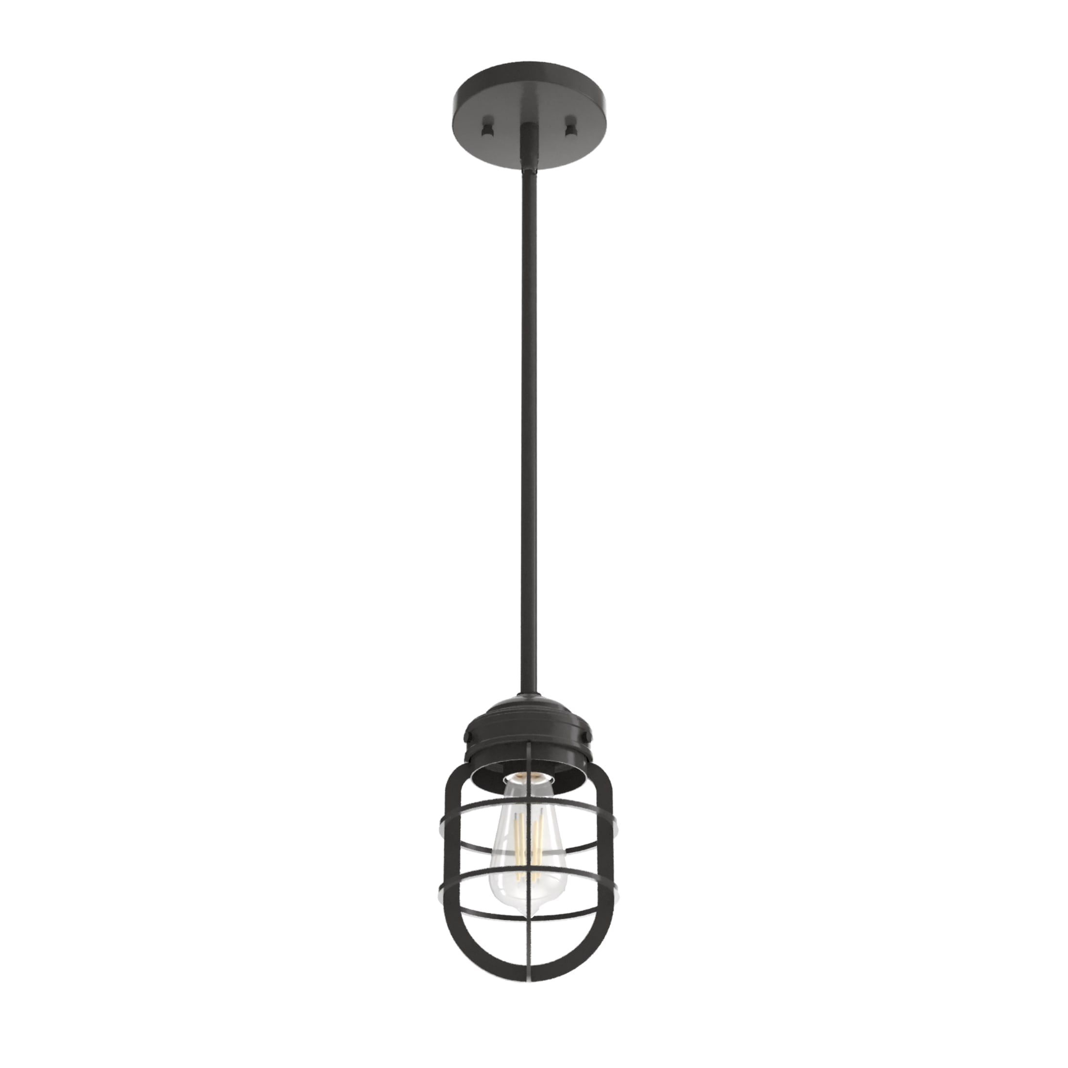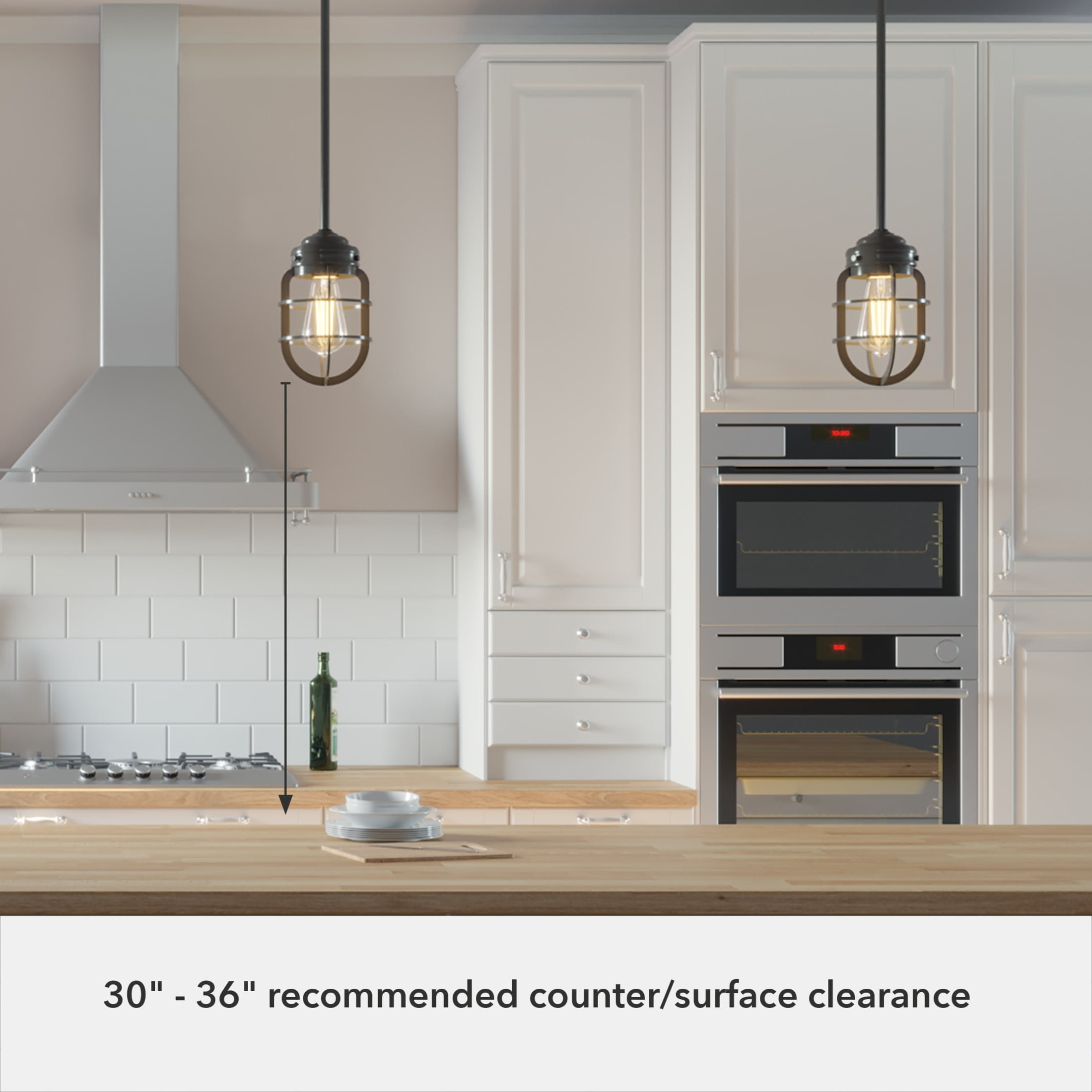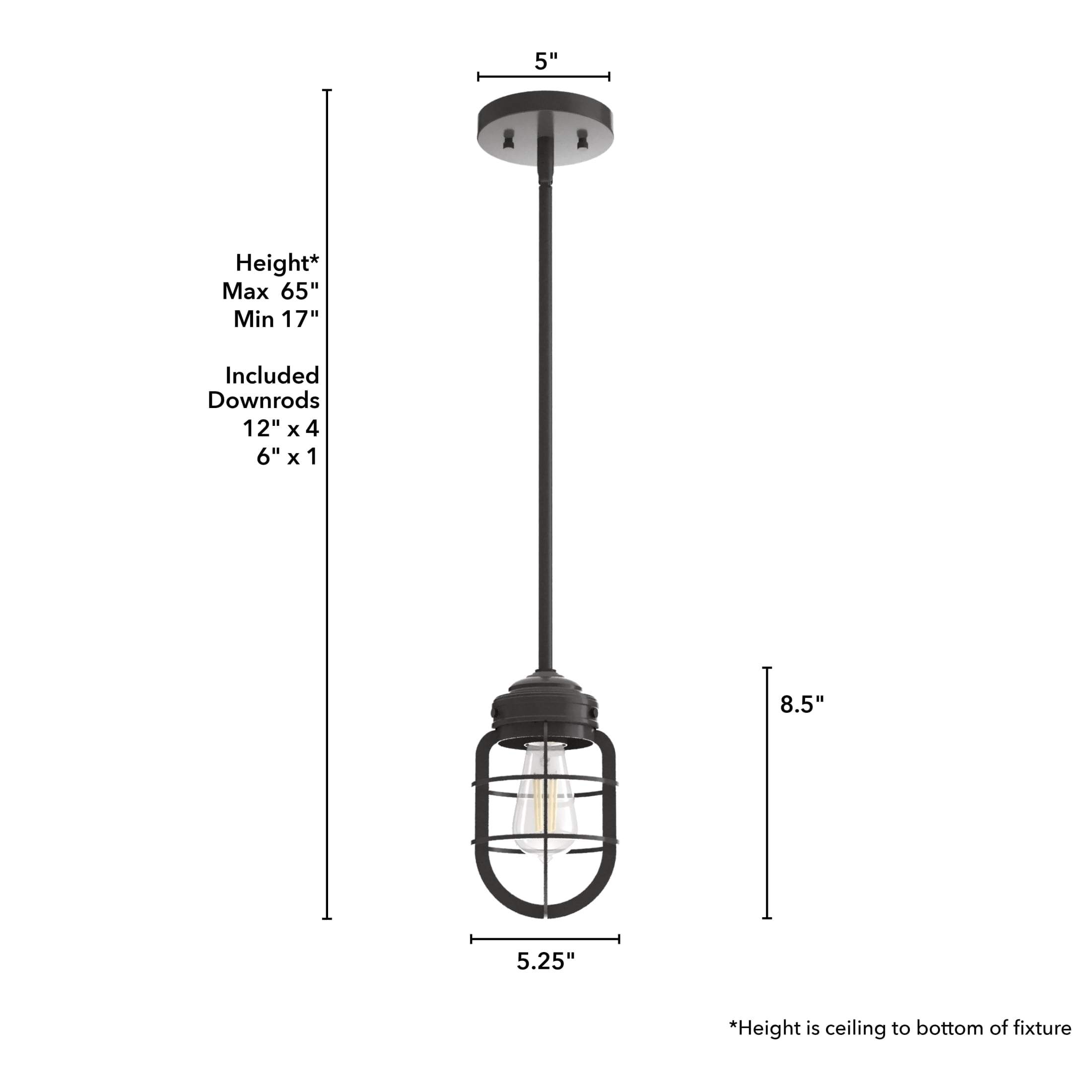 A rustic mini pendant light with a caged design like the Starklake emphasizes modern industrial and farmhouse style spaces. The Starklake Mini Pendant light complements the style of the Starklake ceiling fan collection, giving your space a cohesive look. Mix and match with fans from our ceiling fan collections to fully finish your space. Rated for indoor use only Requires 1 E26 bulbs. Bulbs not included. MADE FOR INDOORS: For use in indoor spaces like kitchens, bedrooms, living rooms, dining rooms, and entryways. BULB RECOMMENDATION: Maximum 60 W per light bulb or equivalent LED bulb. Bulbs not included. PICTURED HERE: Match our image using ST64 Edison light bulbs. CUSTOMIZABLE HANGING OPTIONS: With the minimum required downrod, the hanging length is 17 inches. When using all of the included downrod, the maximum hanging length is 65 inches. COORDINATING COLLECTION: Works with Starklake ceiling fan collection Coordinates with our Starklake ceiling fan collection WARRANTY: One-year limited warranty backed by the trusted experts at Hunter.