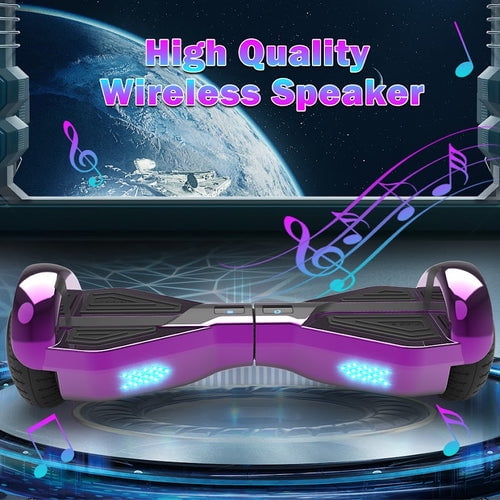 Starship Hoverboard with Bluetooth Speaker, Chrome Color Self Balancing Scooters with Science Fiction Design and 6.5 inch LED Wheels