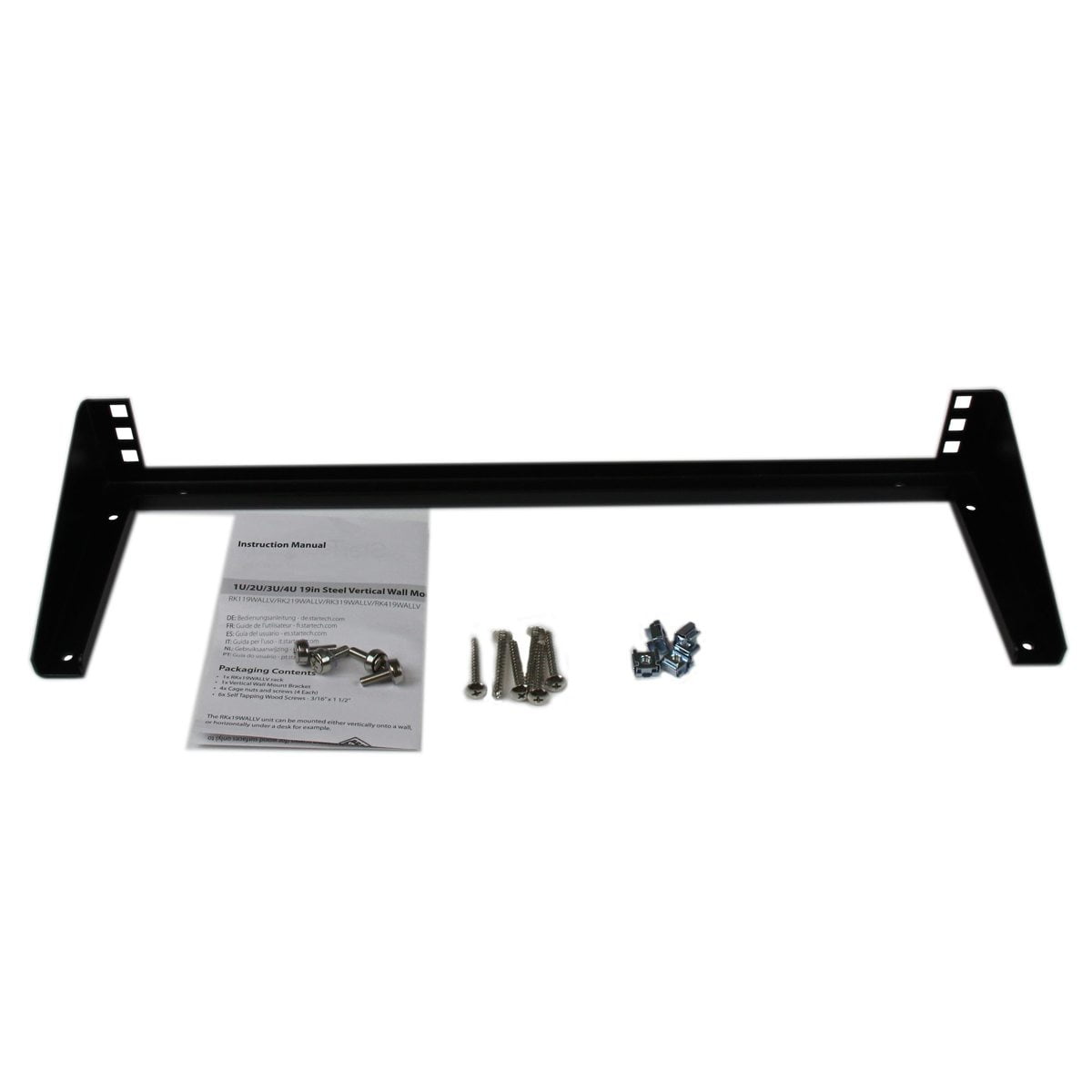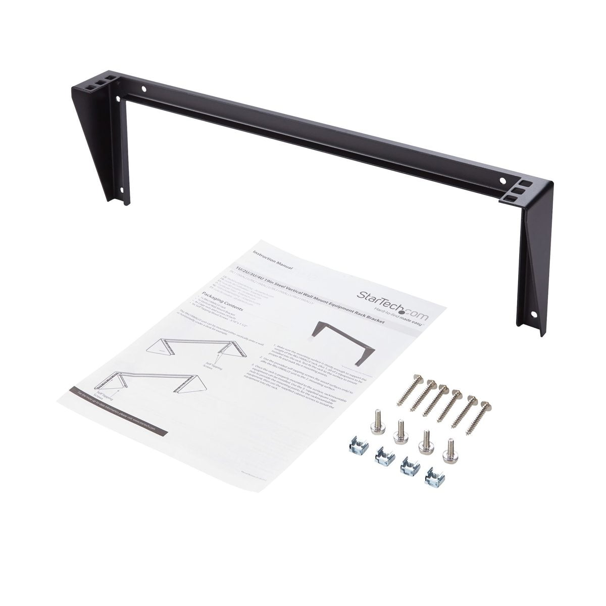 StarTech.com Vertical wall mount equipment rack bracket measuring 5.9″ x 19.8″ x 2.4″ offers space-savings for environments lacking the footprint space for a full size server equipment rack. StarTech.com Vertical wall mount equipment rack bracket is compatible with network device, power strip, patch panel. 5.9″ x 19.8″ x 2.4″ Rack bracket constructed with solid steel is ideal for mounting on virtually any wall/ceiling surface. • Capacity: 125.3 lbs. • Compatibility: Network device, power strip, patch panel. • Dimensions: 5.9″(H) x 19.8″(W) x 2.4″(D). • Frame type: Open frame. • Wall mountable: Yes. • Rack size: 19″. • Rack units: 1U. • Sold as 1 Each.